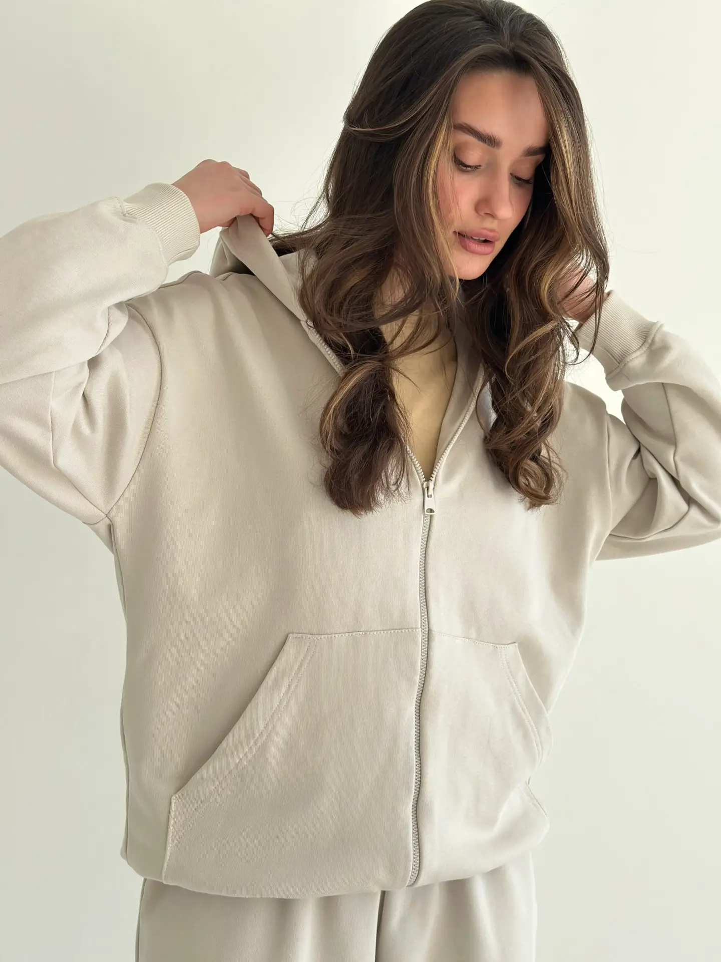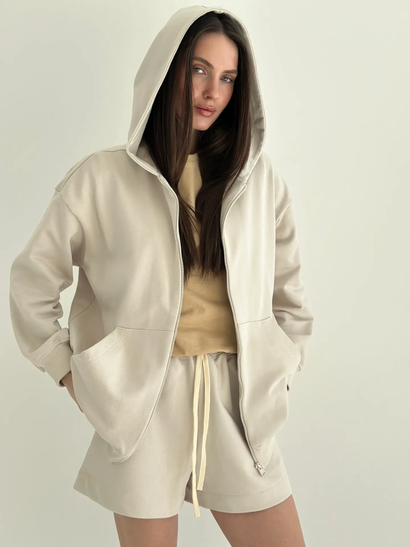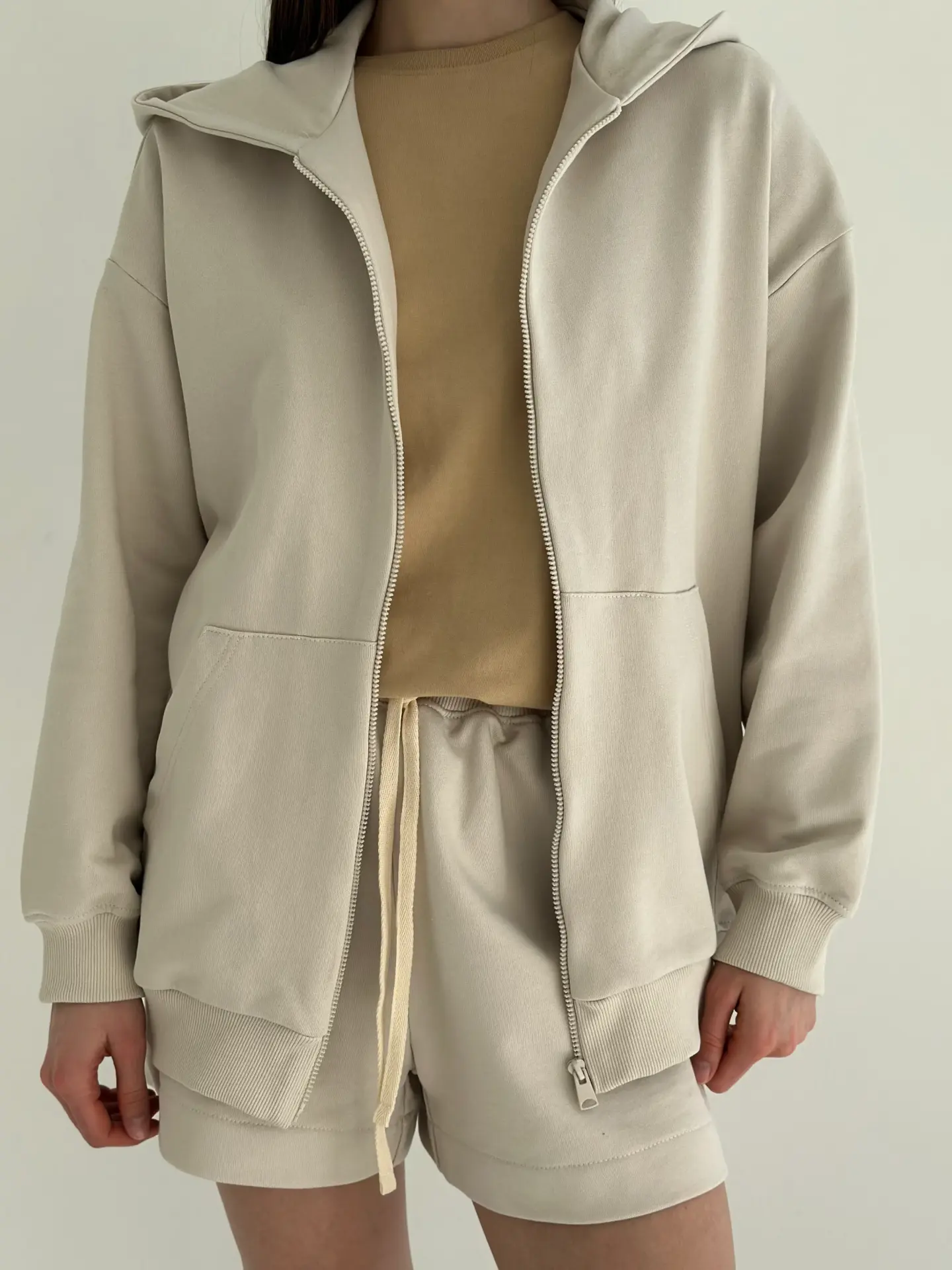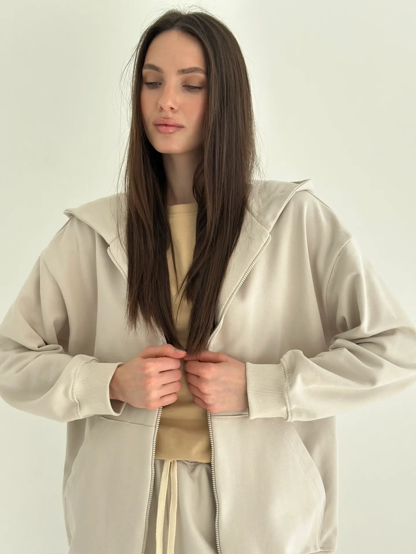 Бавовна Кофта з капюшоном на блискавці трикотаж 3-х. нитка бежева