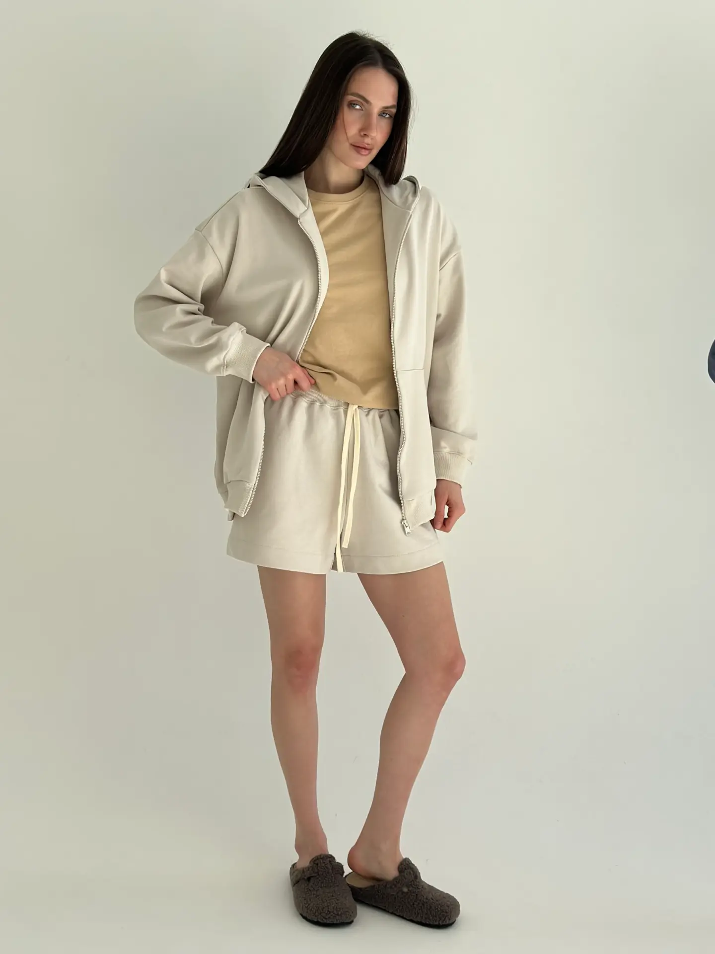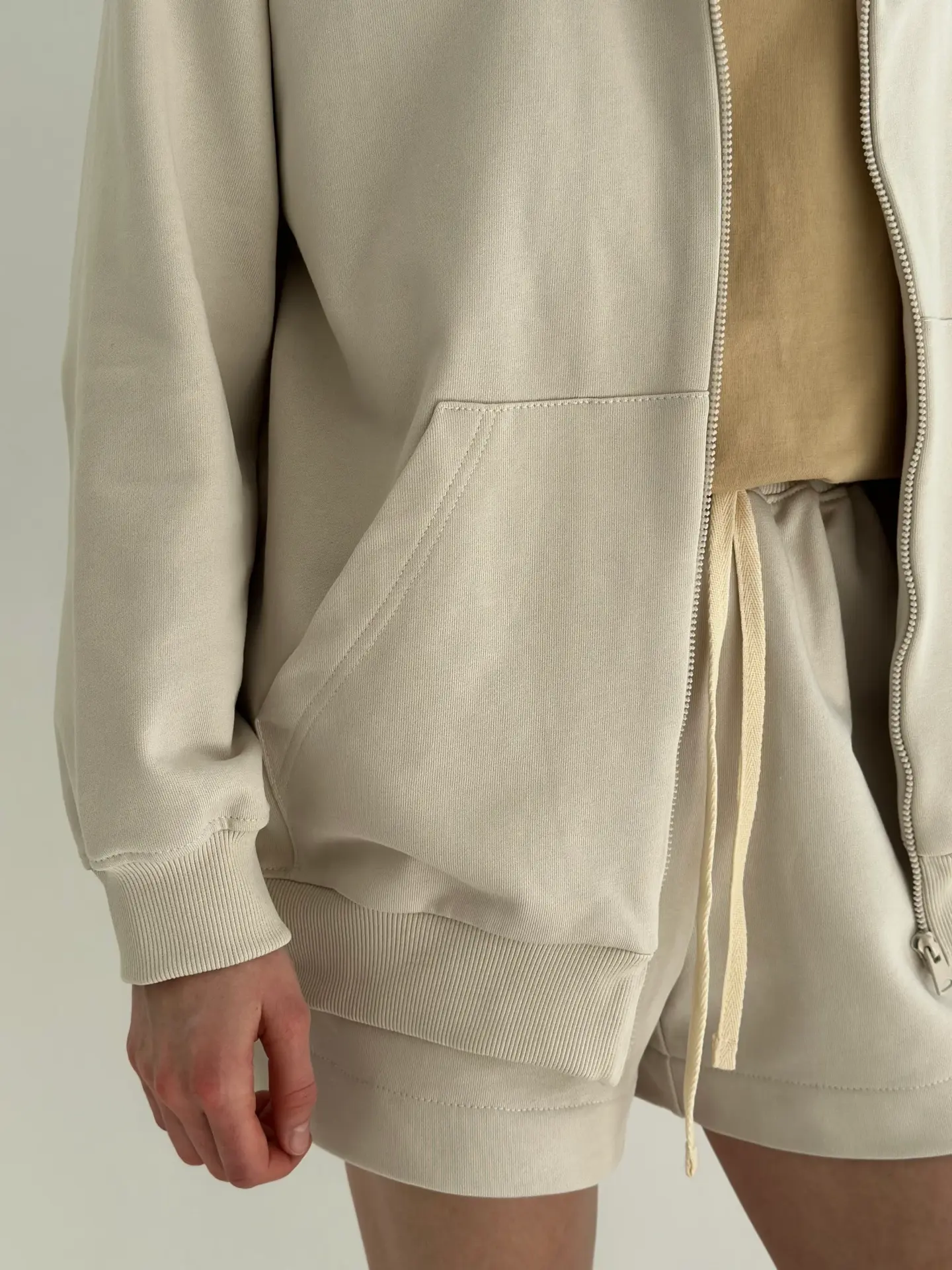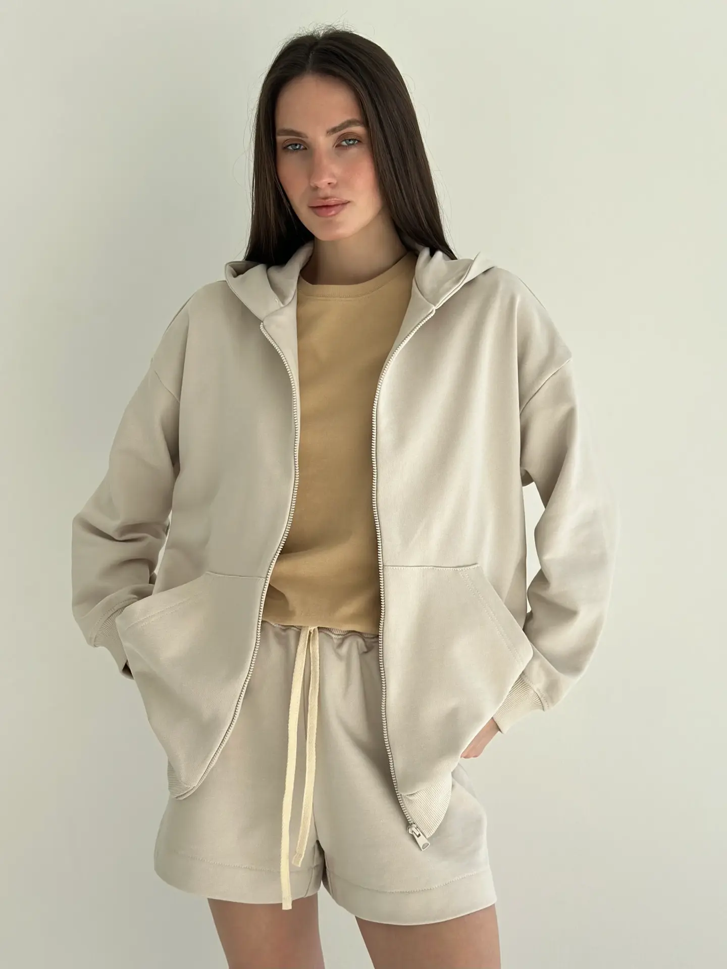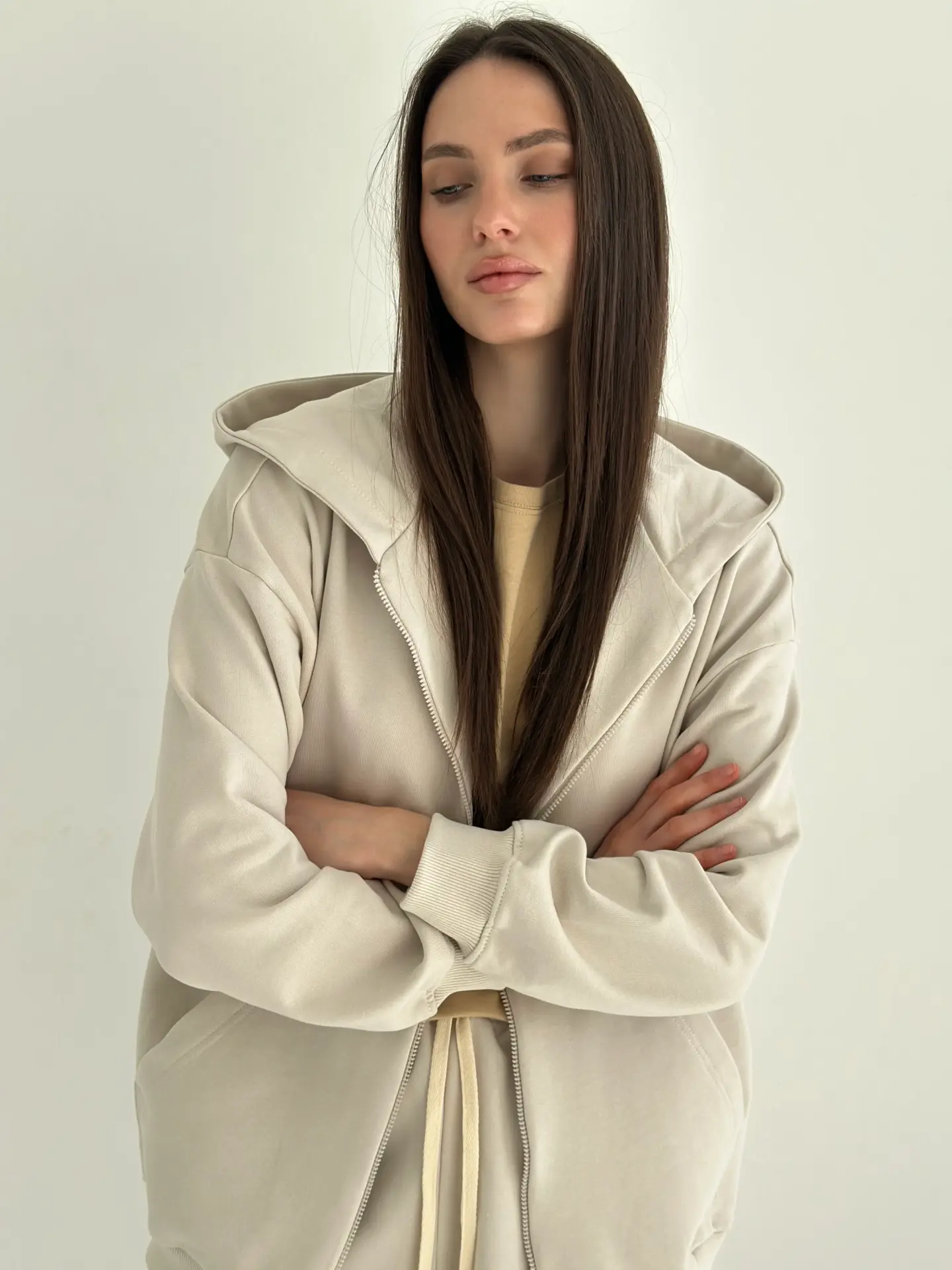 Бавовна Кофта з капюшоном на блискавці трикотаж 3-х. нитка бежева