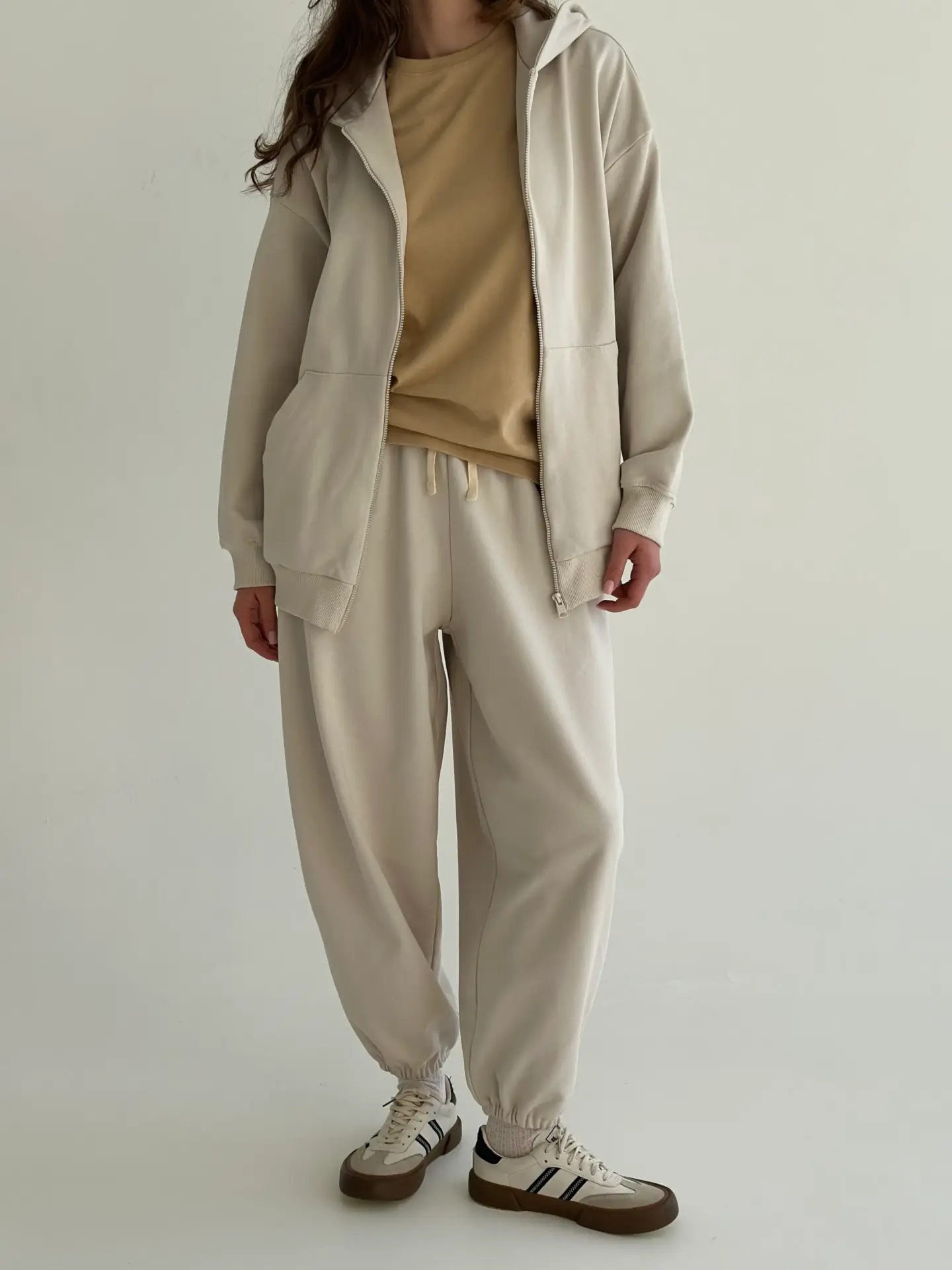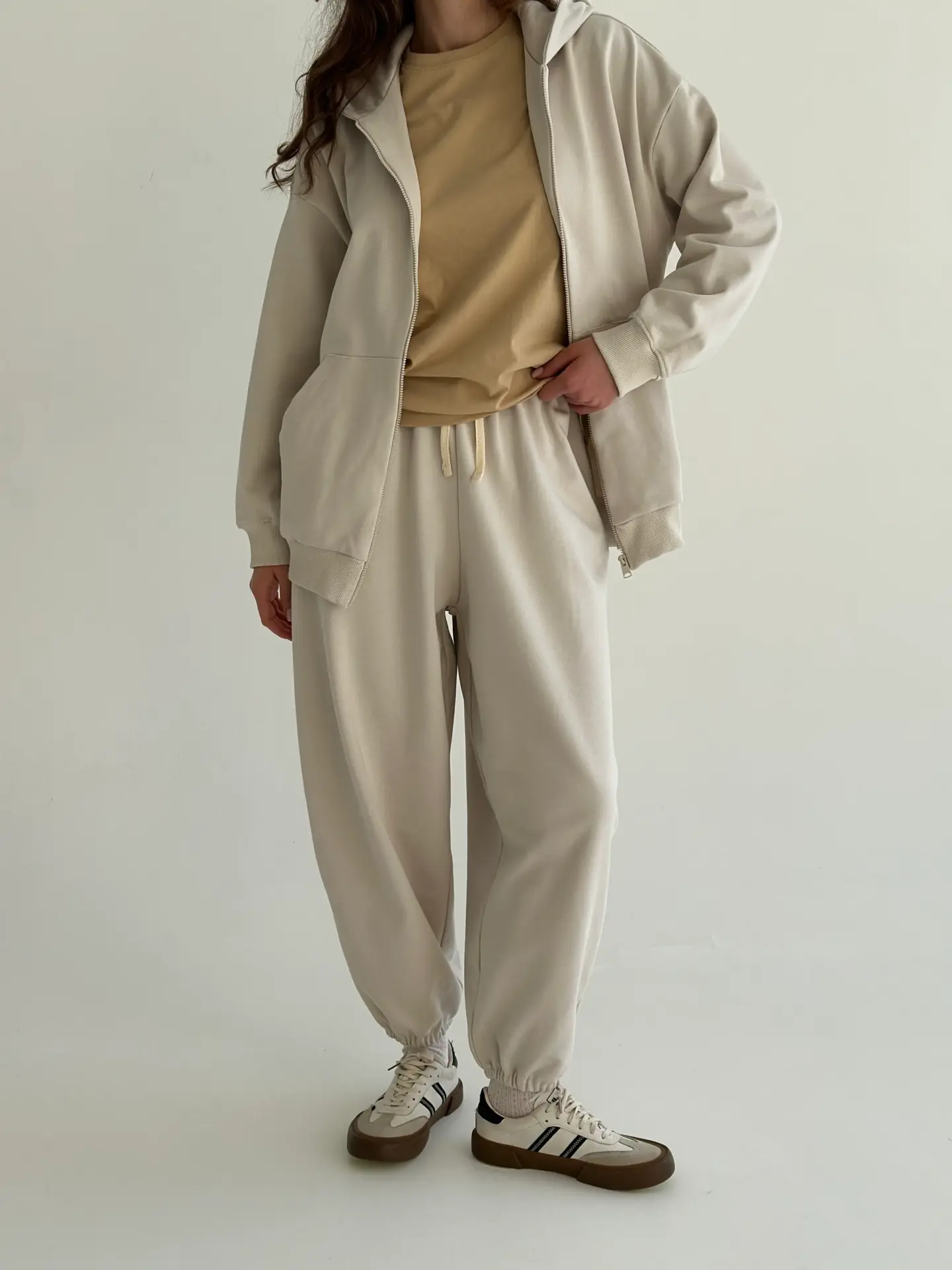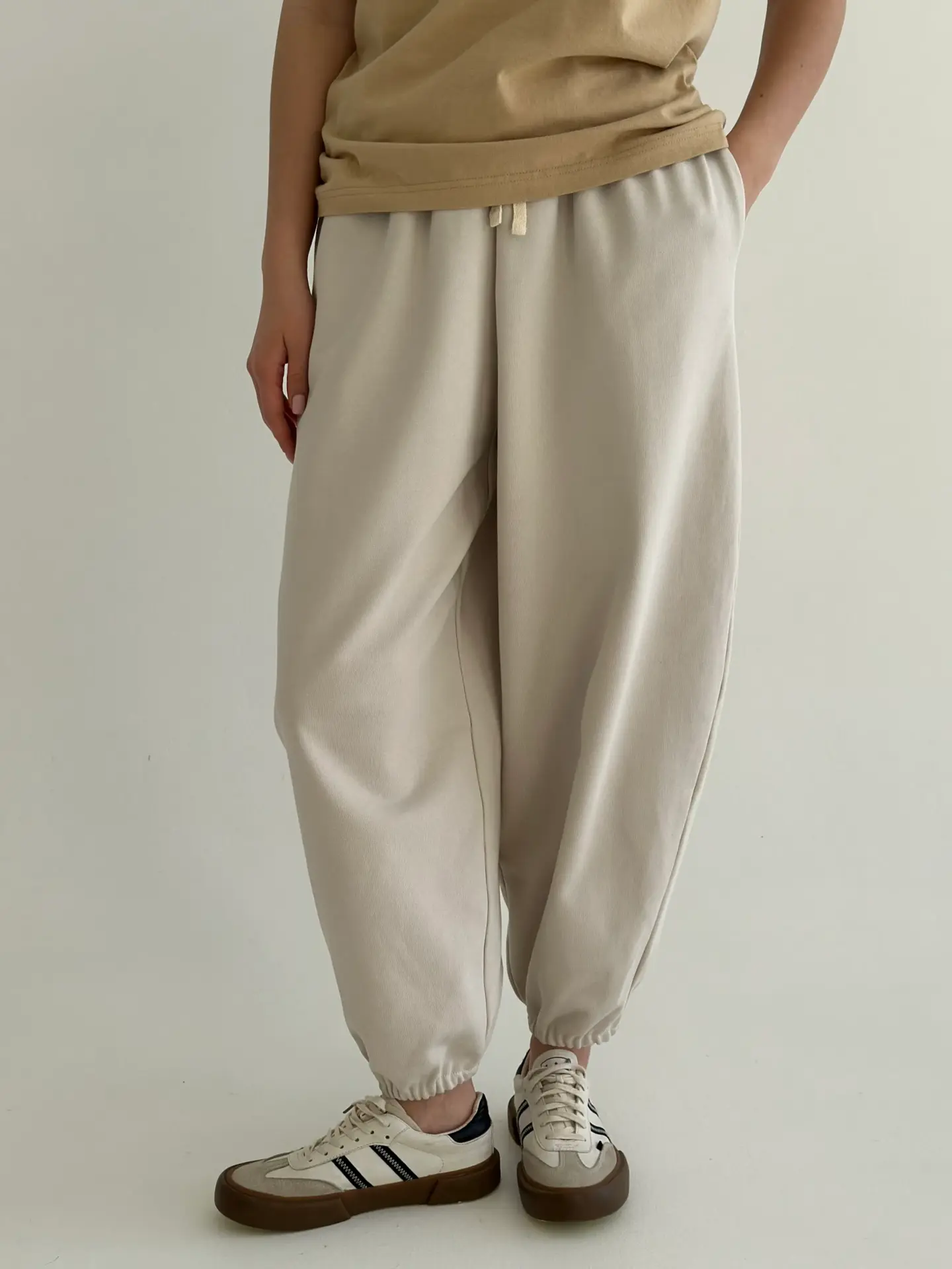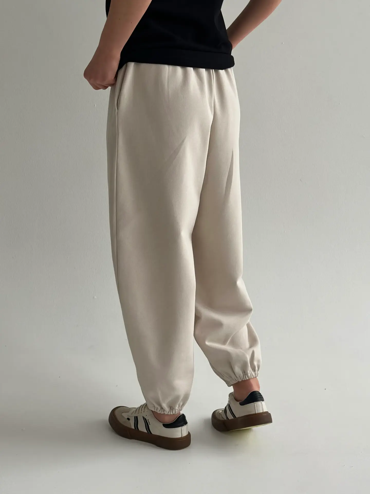 Штани з трикотажної бавовни на основі м’якої 3-нитки. Комфортні, теплі та приємні до тіла — ідеально підходять для повсякденного носіння та прогулянок. Універсальний вибір для прохолодної пори року.