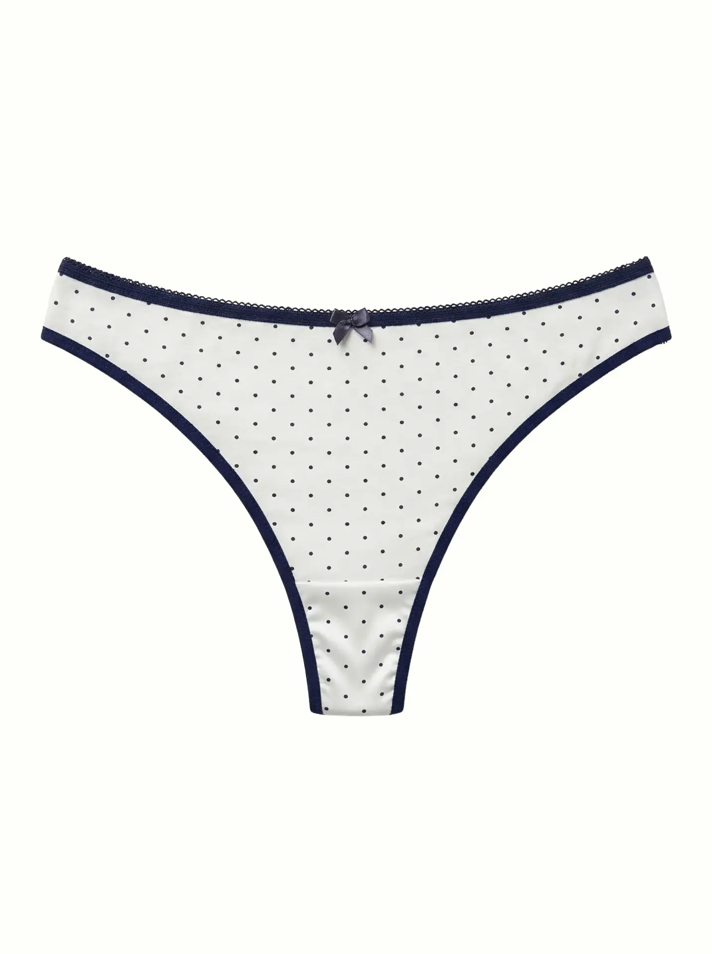 Білизна трусики Стрінги горох синій на білому трикотаж
