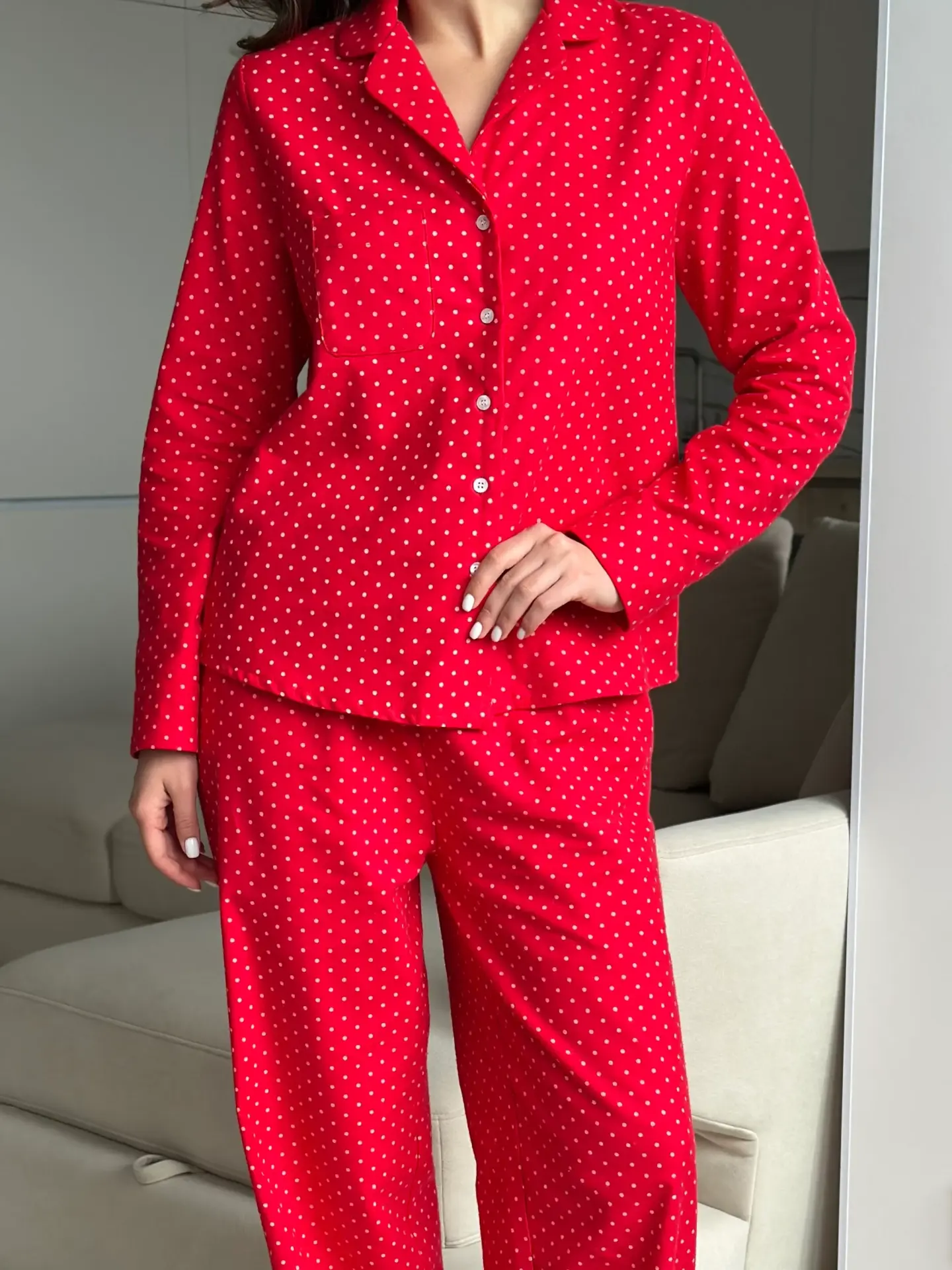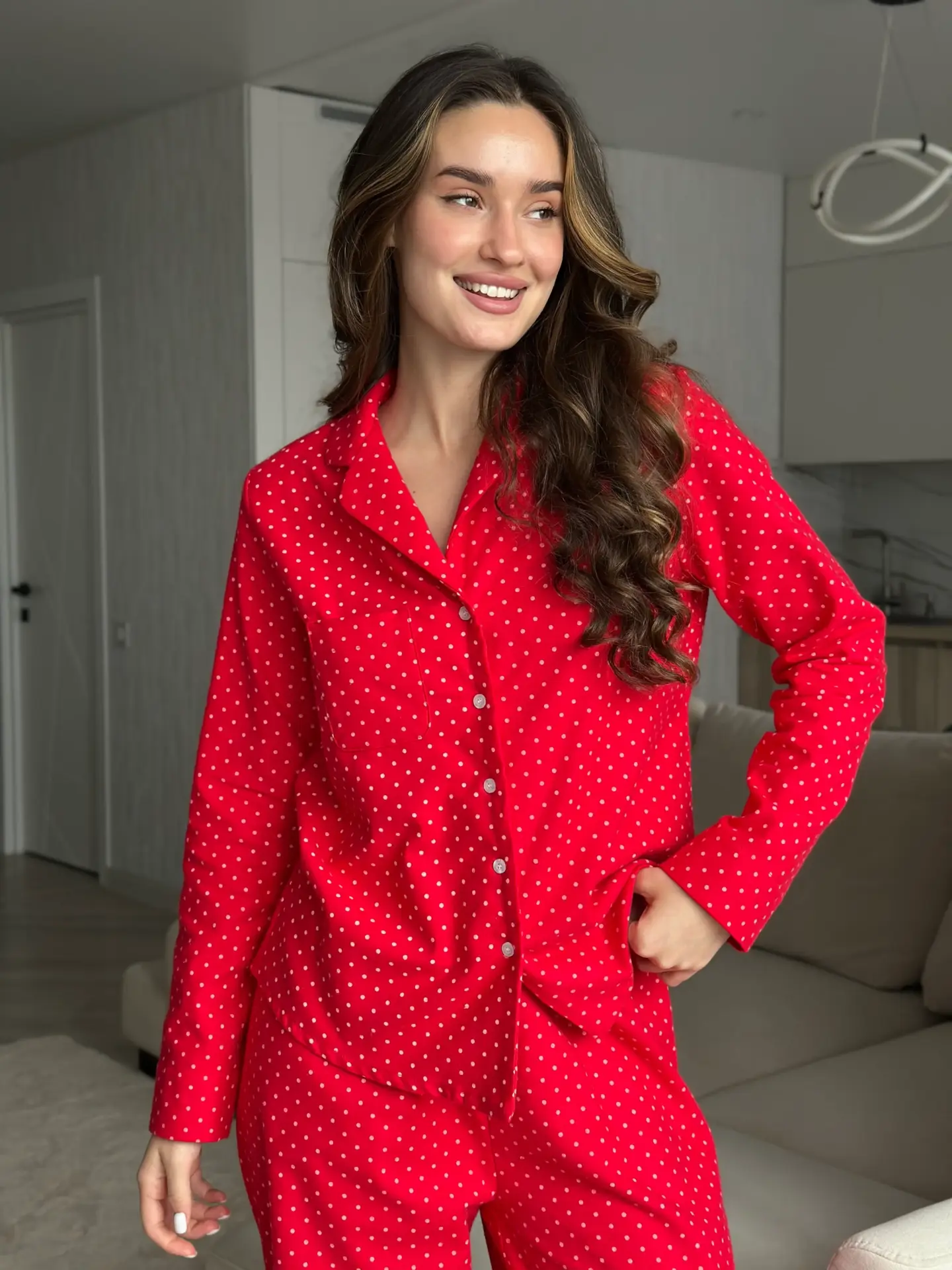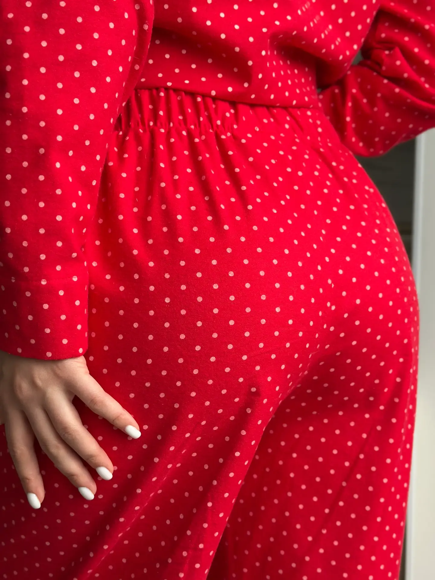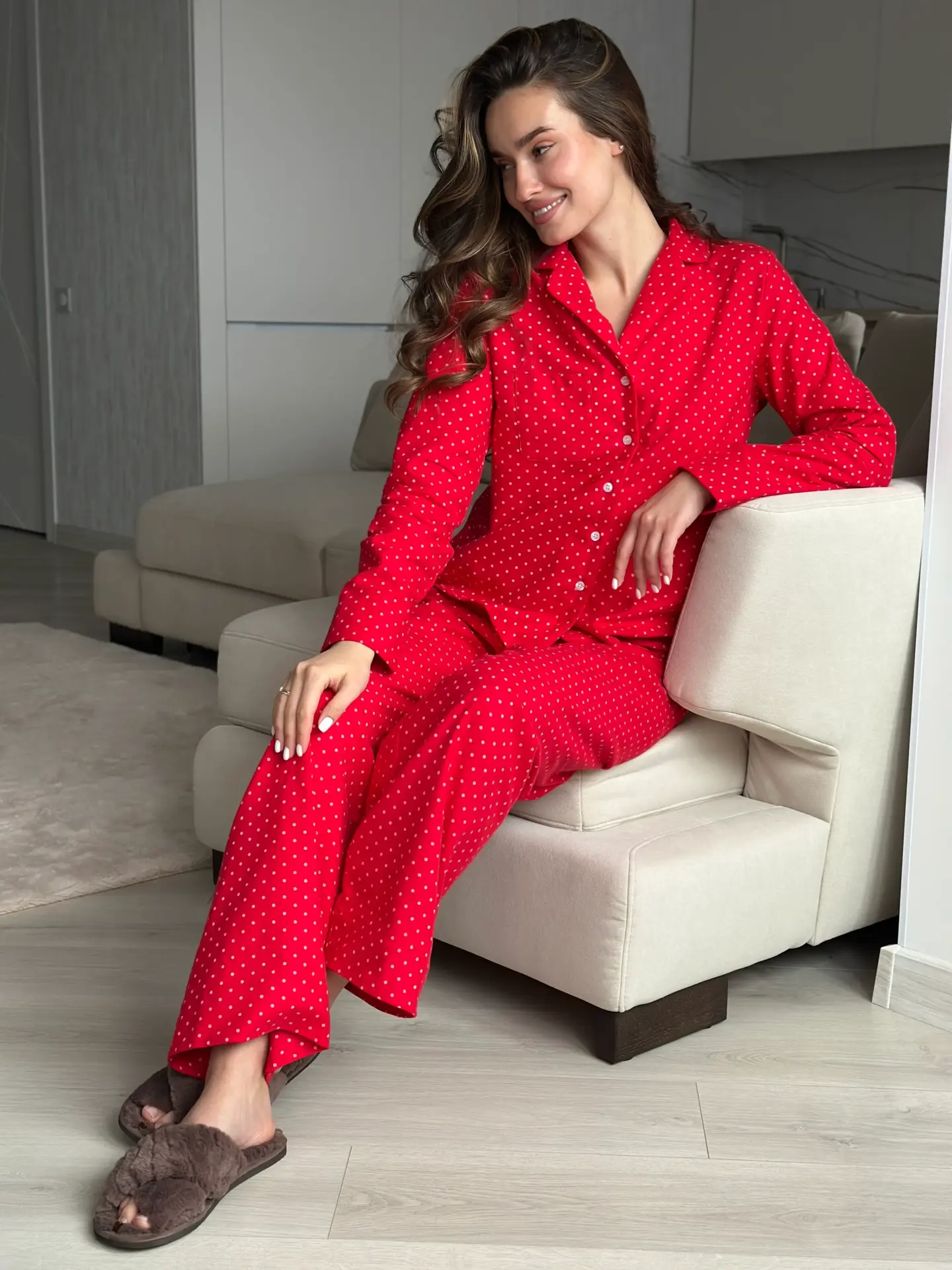 Фланель піжамний комплект "білий великий горох" на червоному - Twins