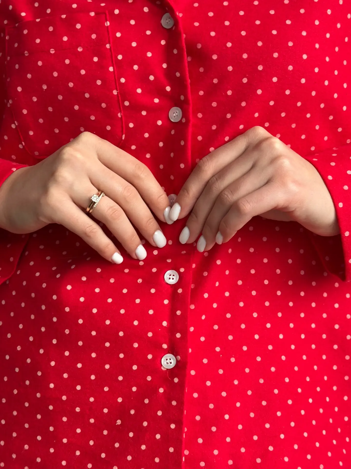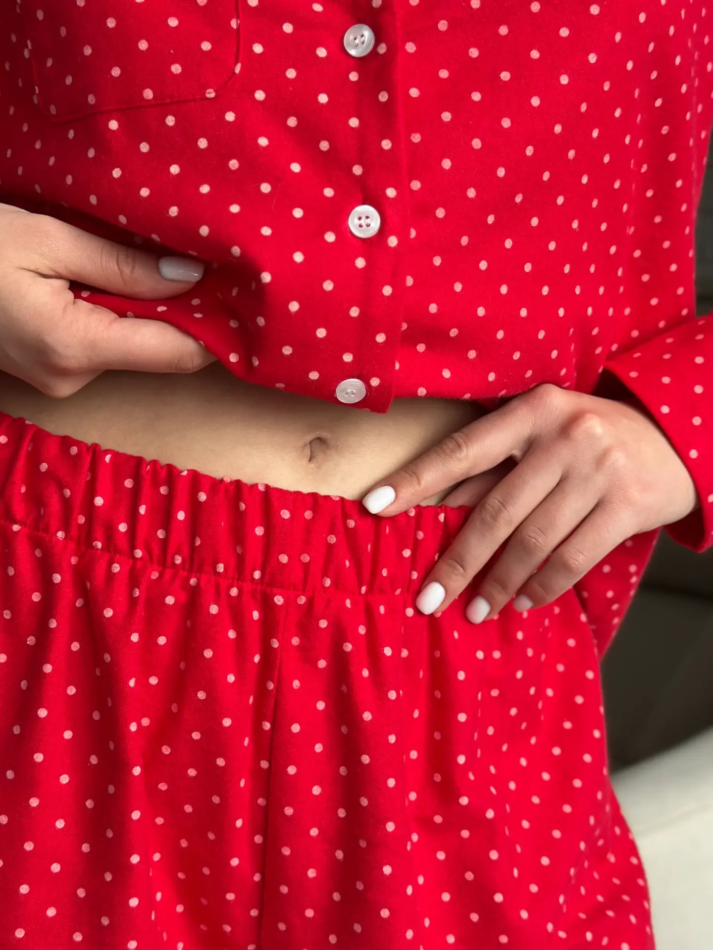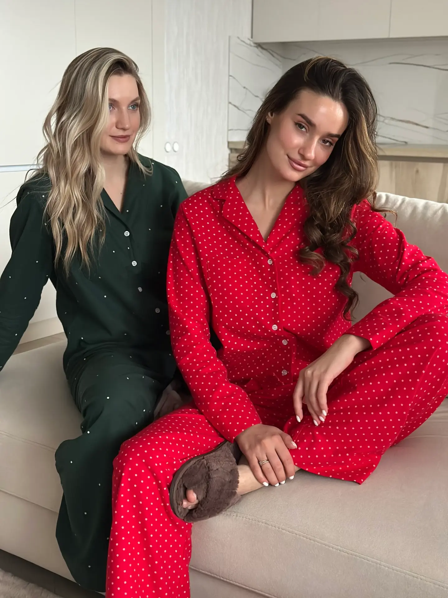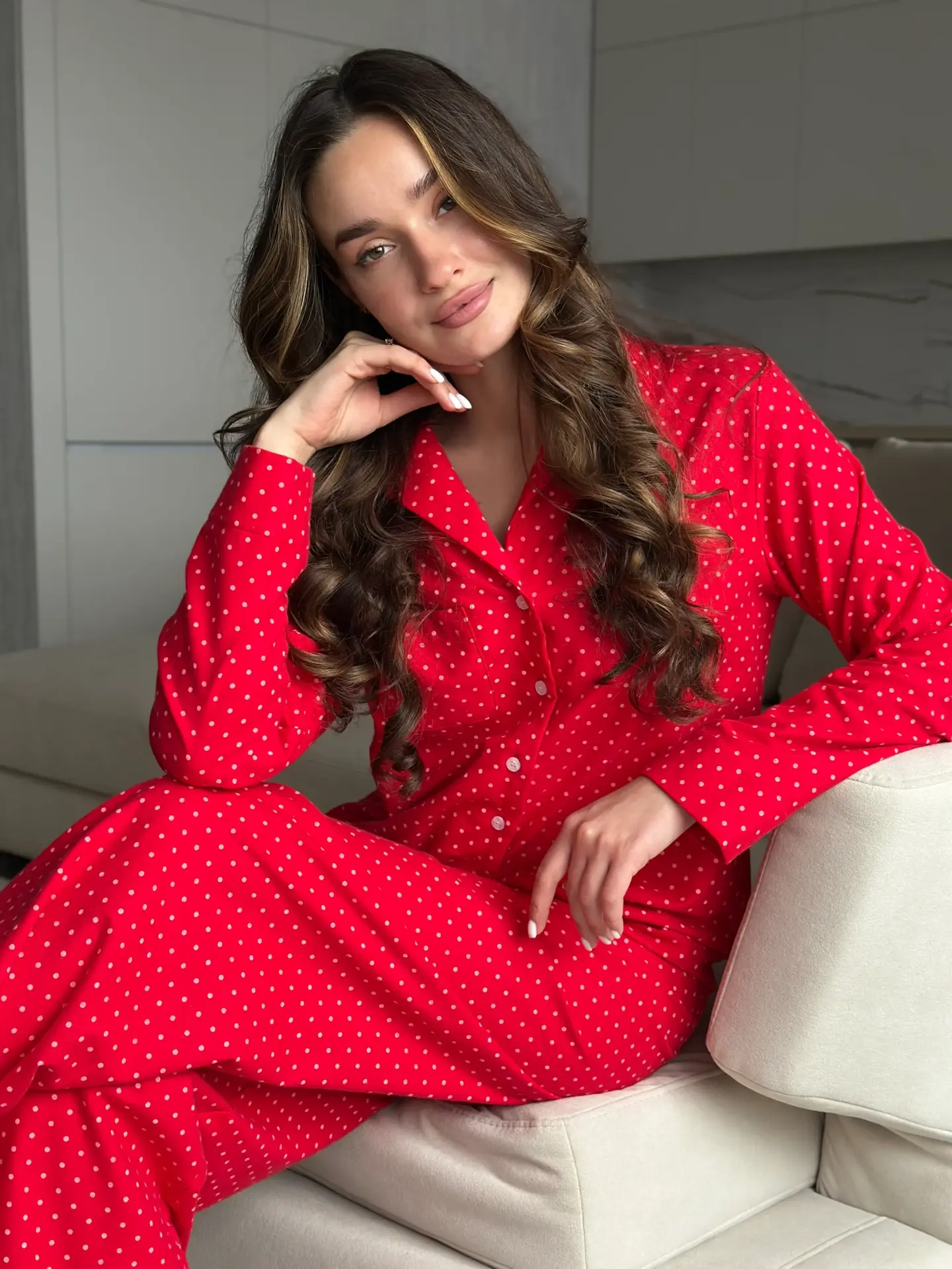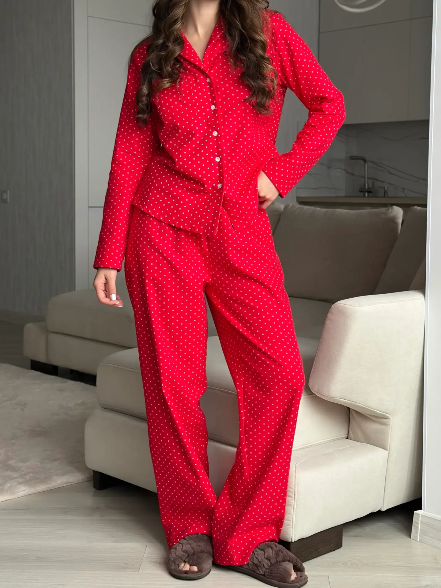 Фланель піжамний комплект "білий великий горох" на червоному - Twins