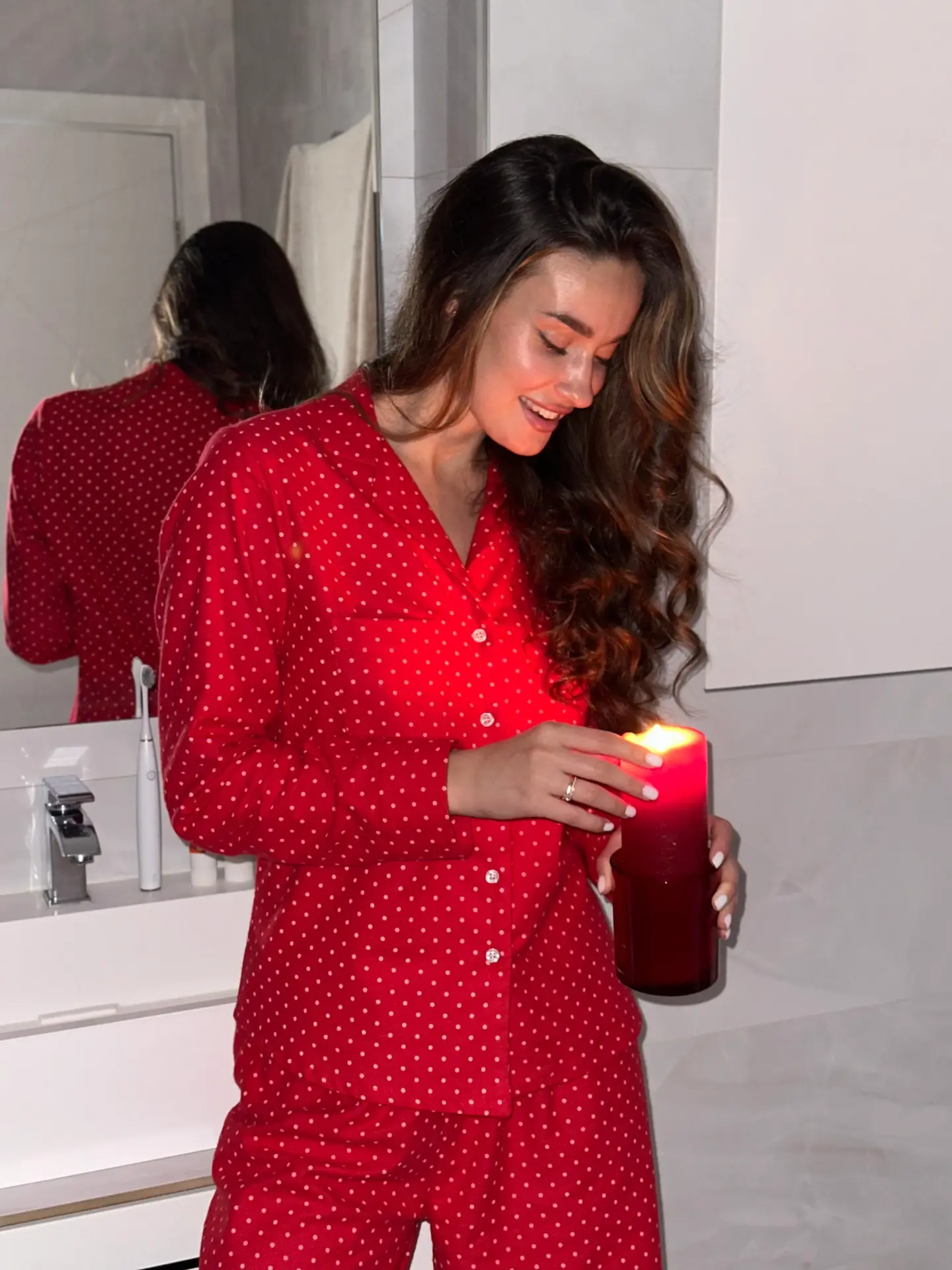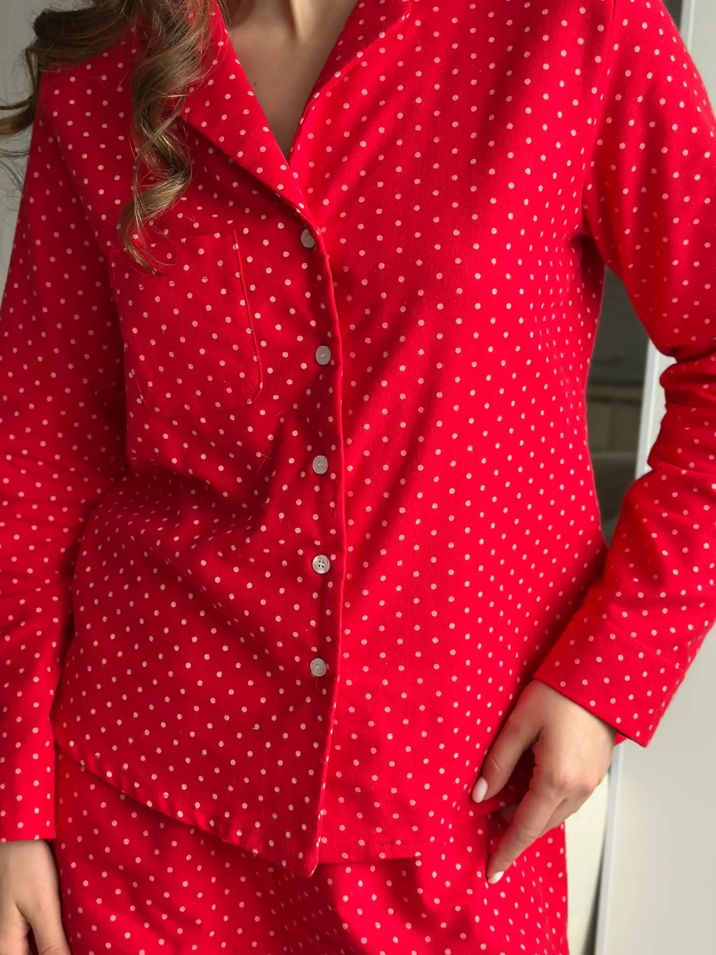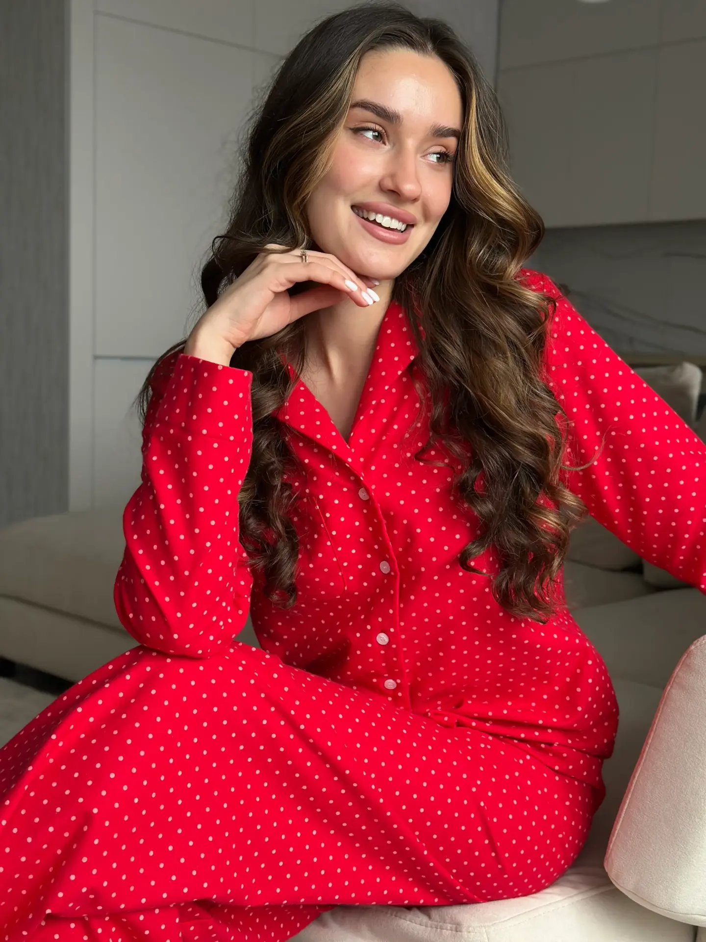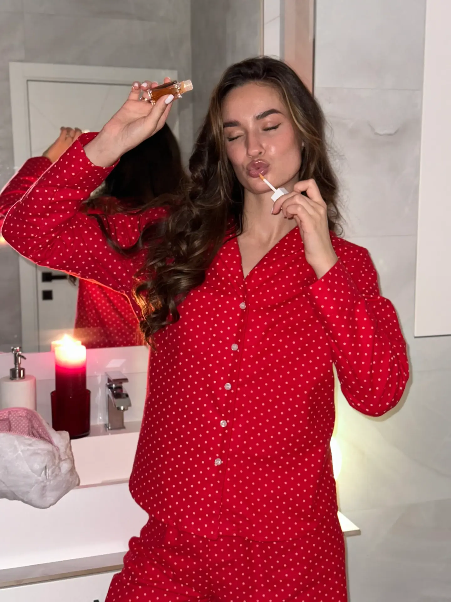 Фланель піжамний комплект "білий великий горох" на червоному - Twins