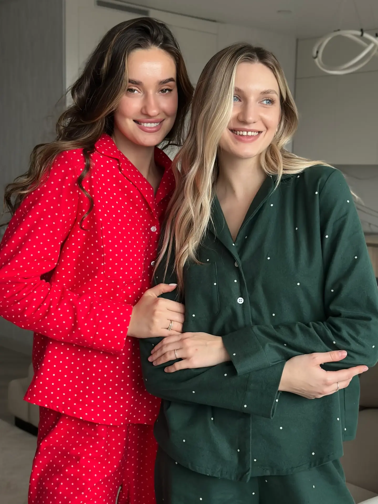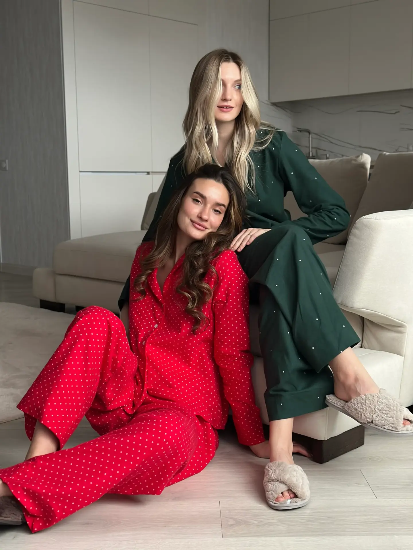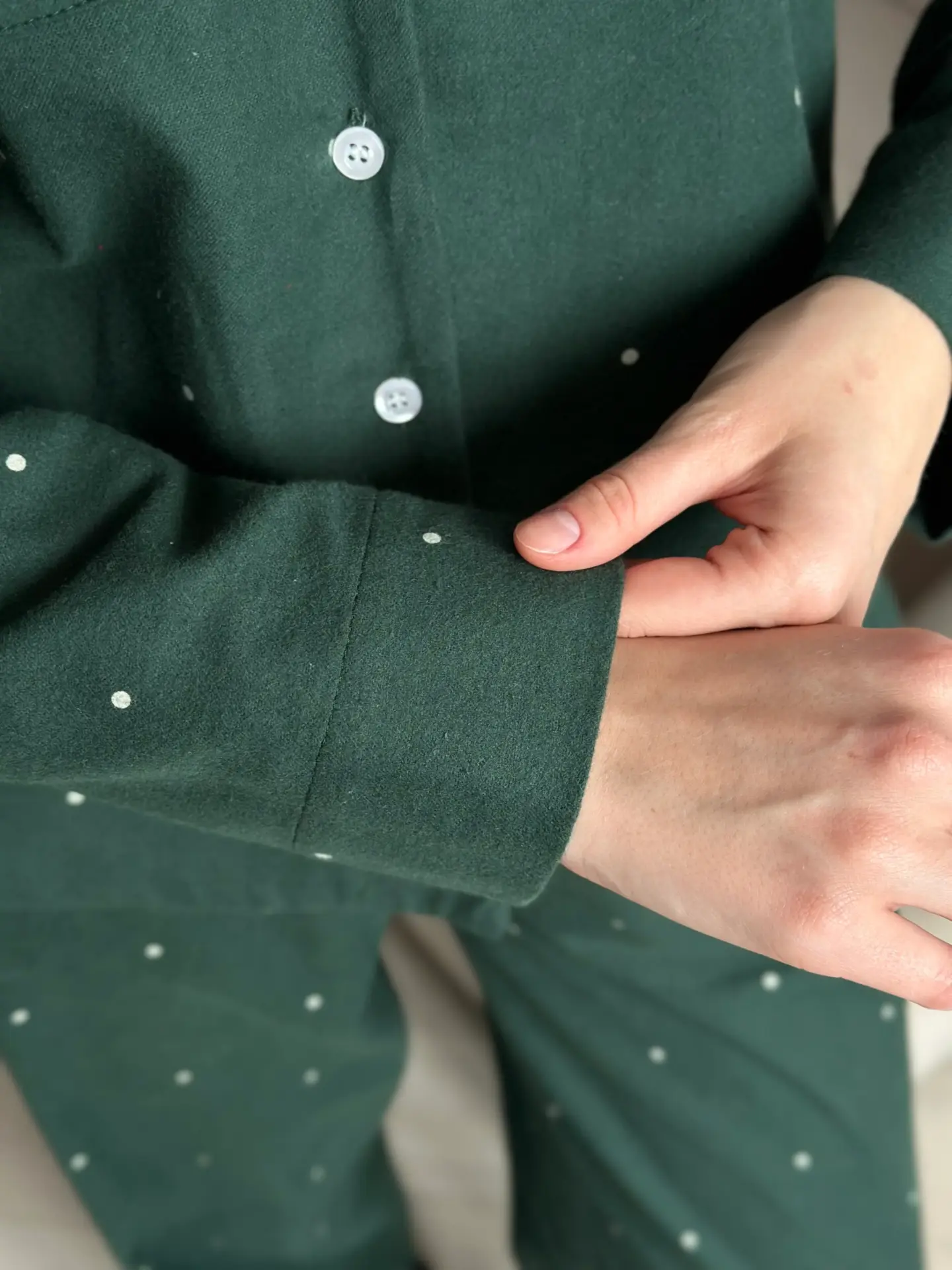 Фланель піжамний комплект "білий великий горох" на зеленому - Twins