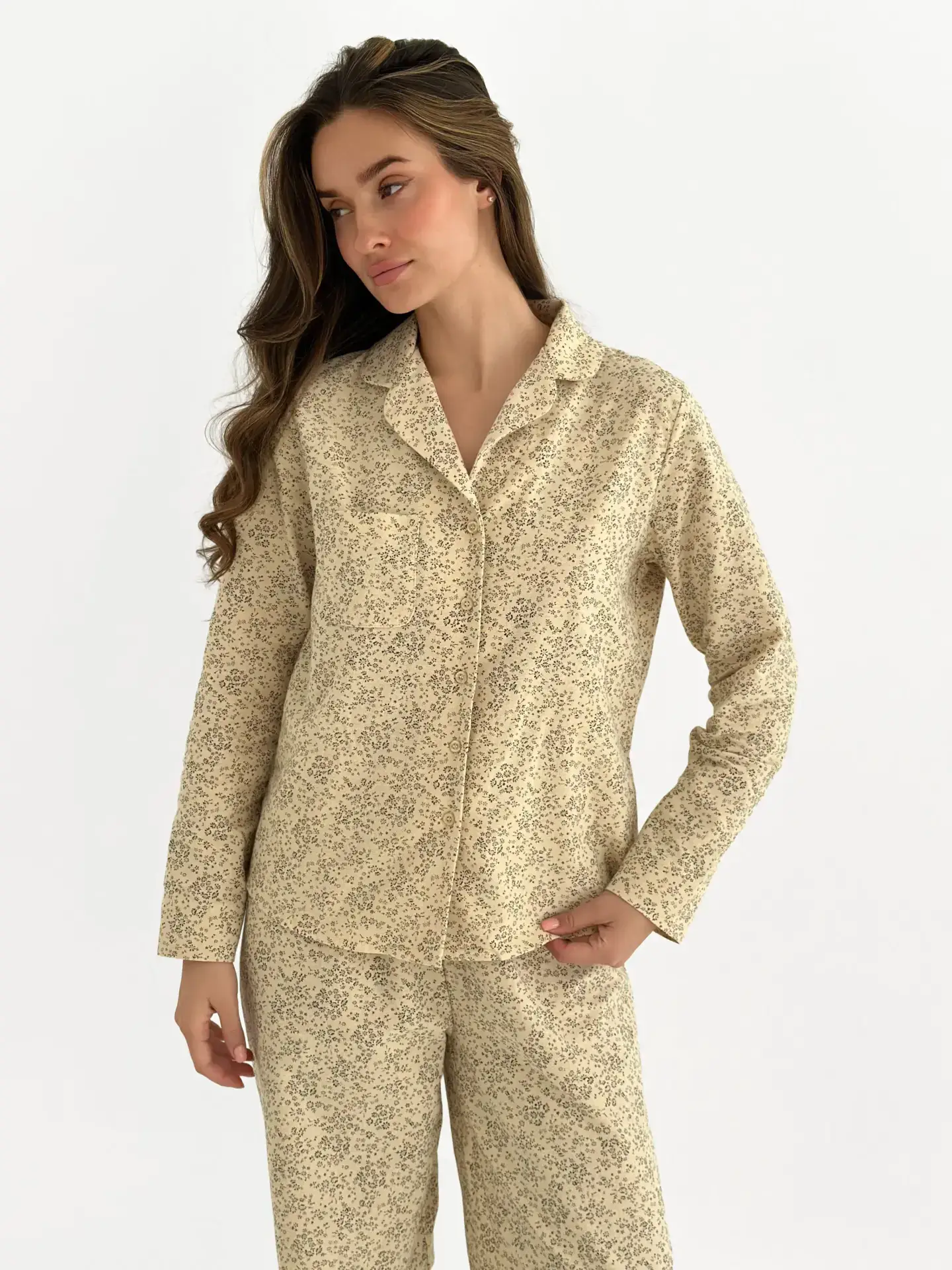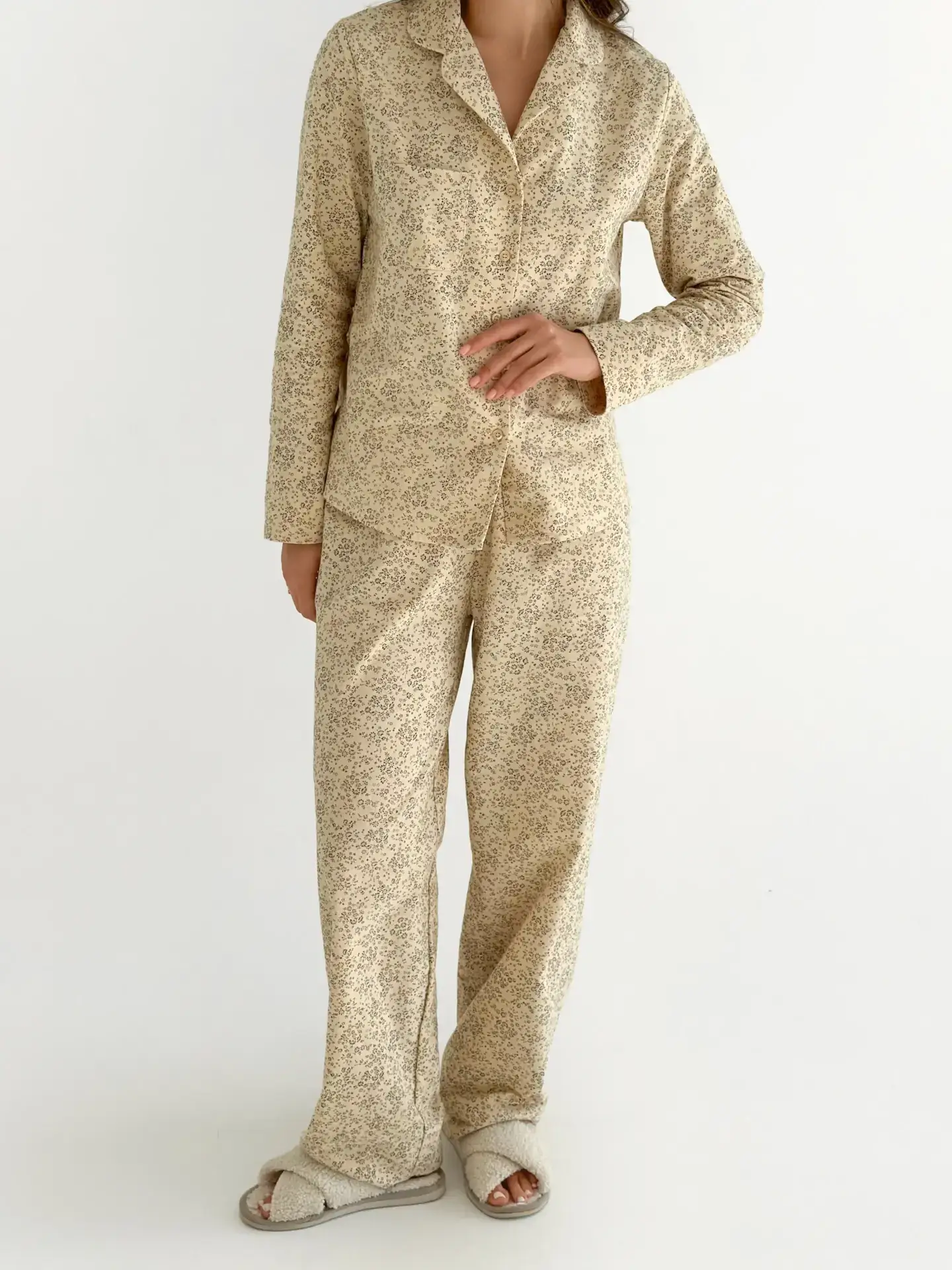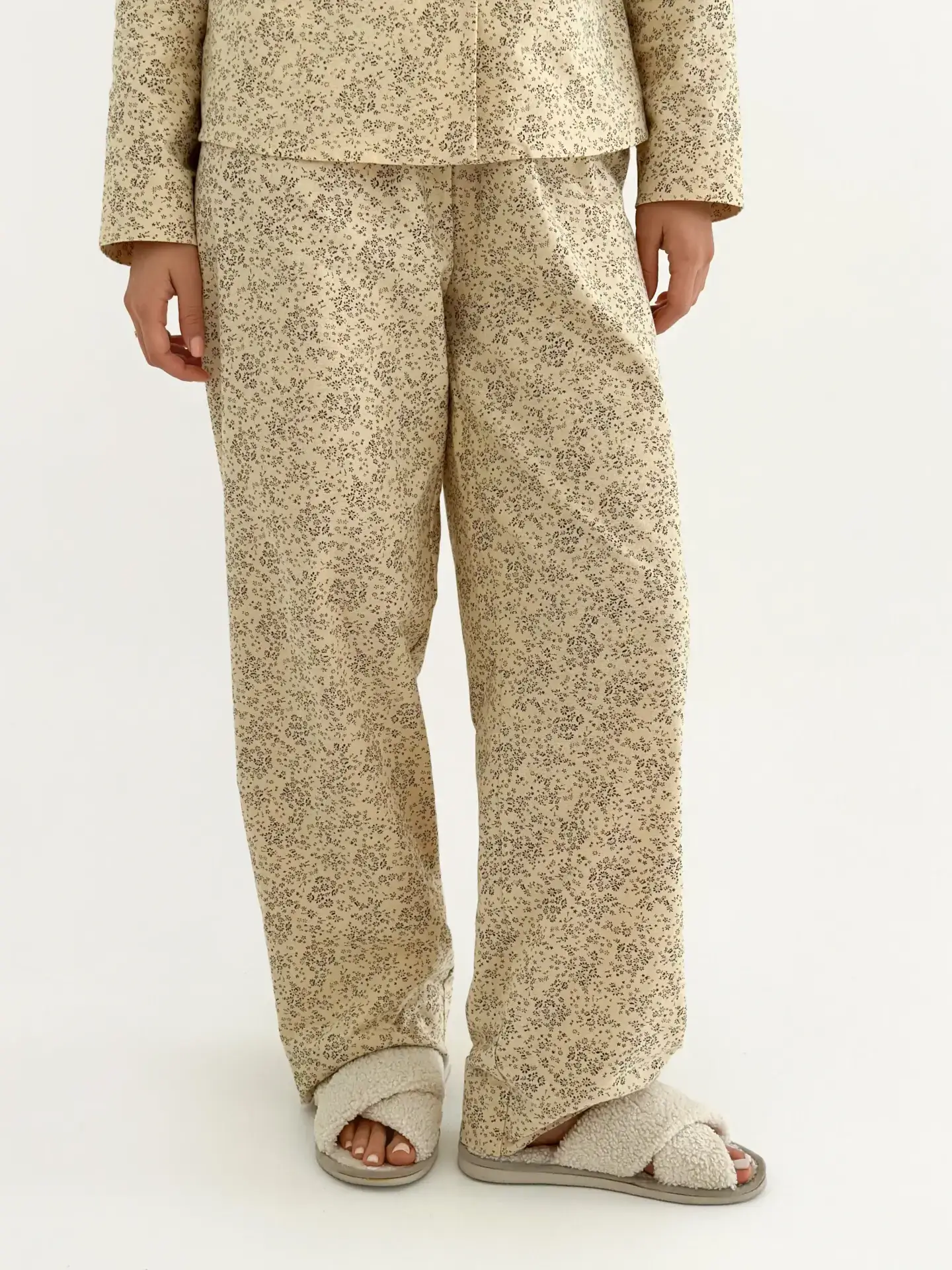 Фланель піжамний комплект “Листя” на айворі