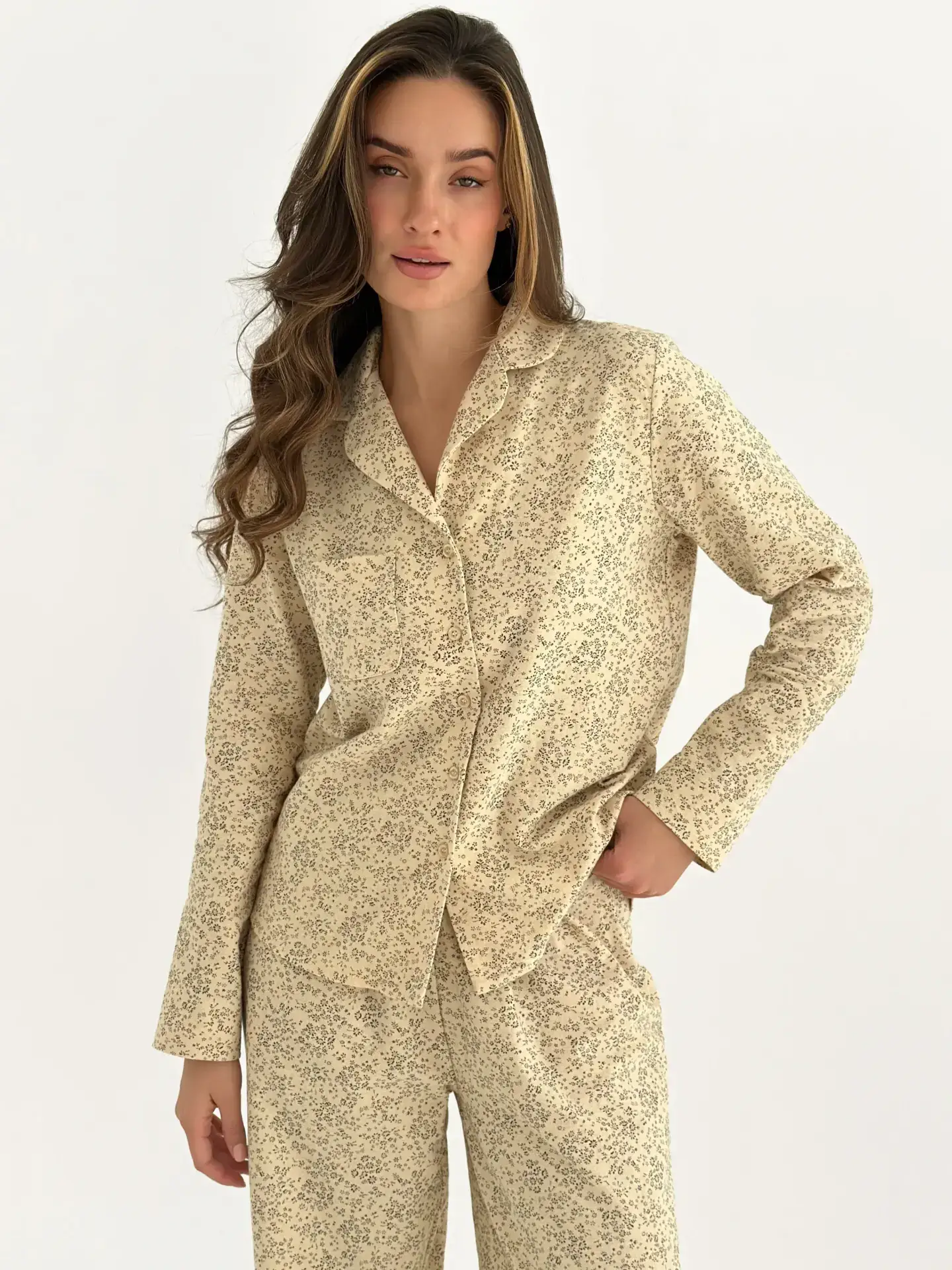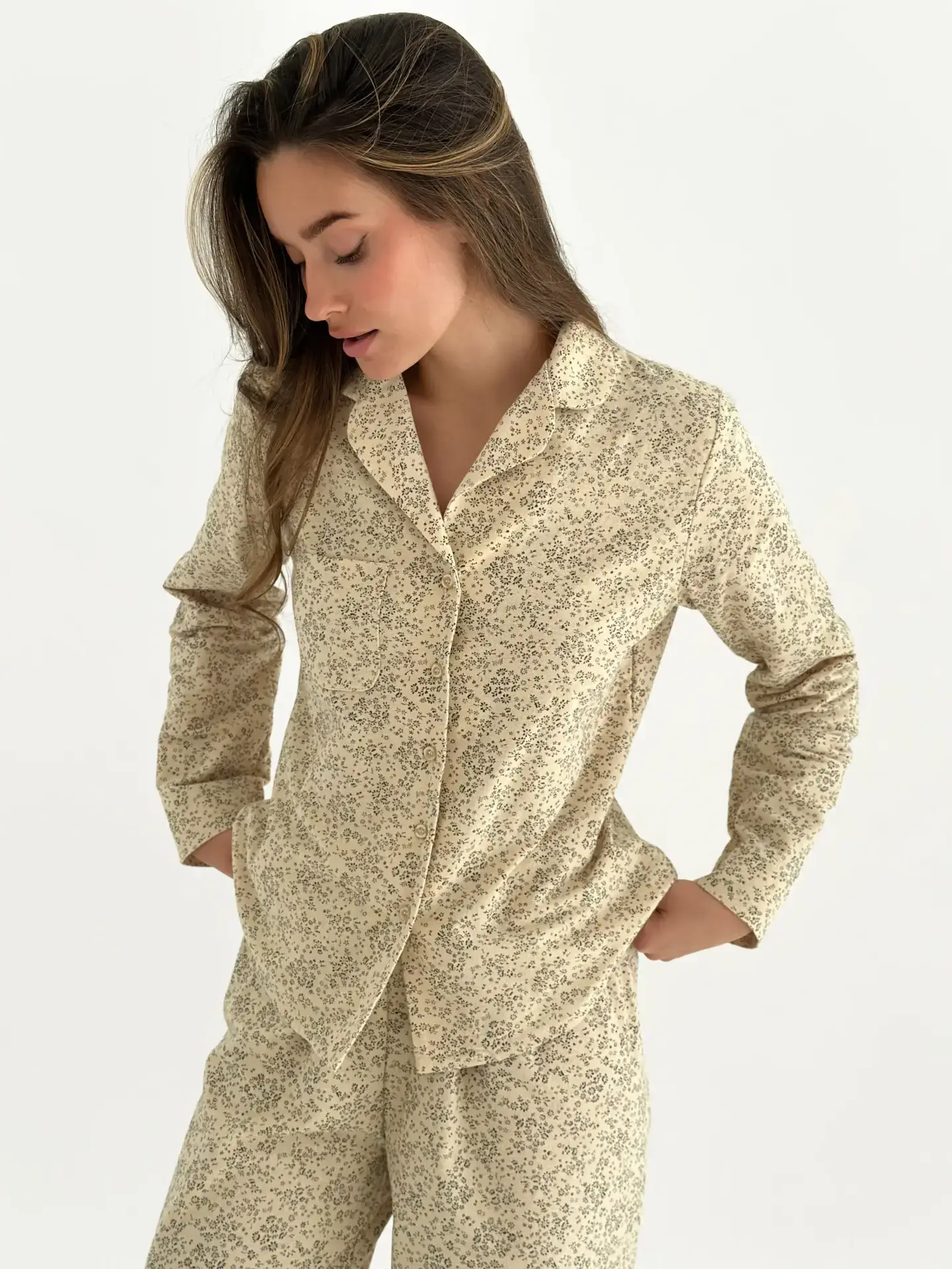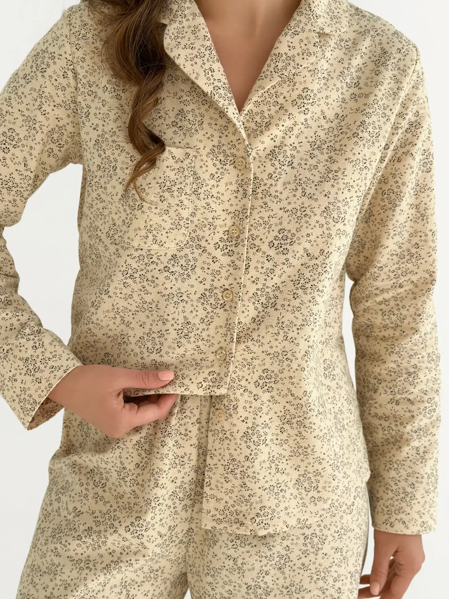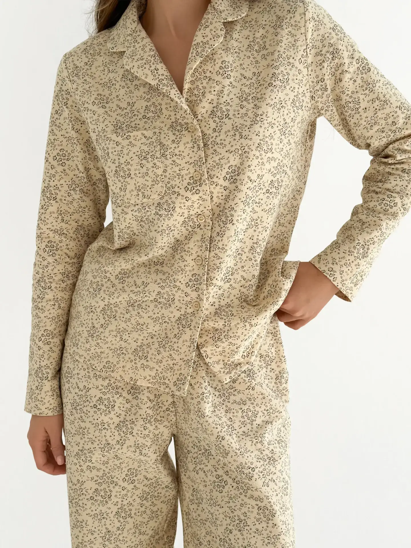 Фланель піжамний комплект “Листя” на айворі