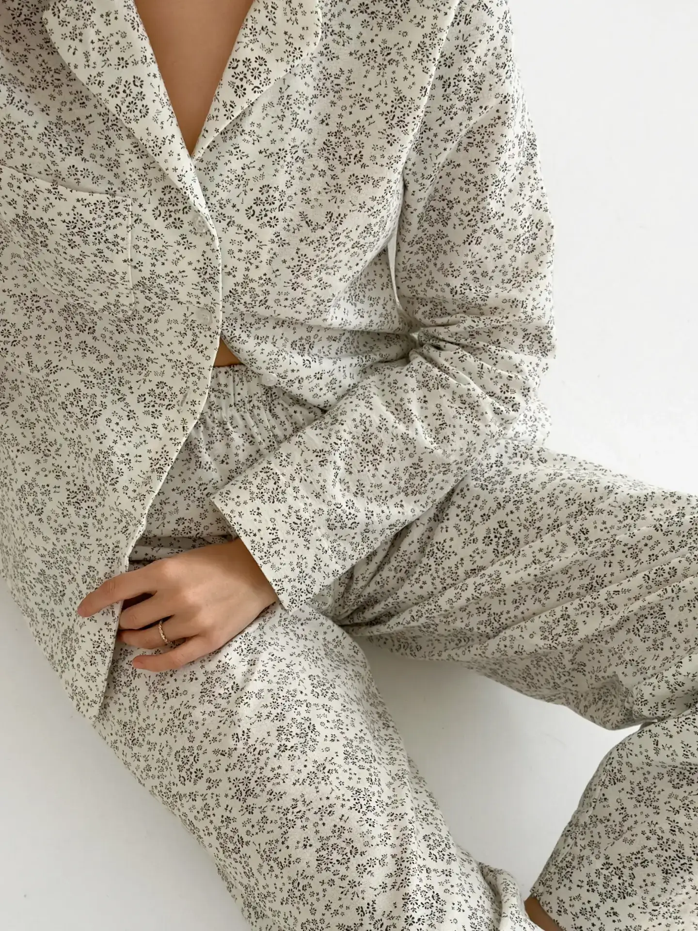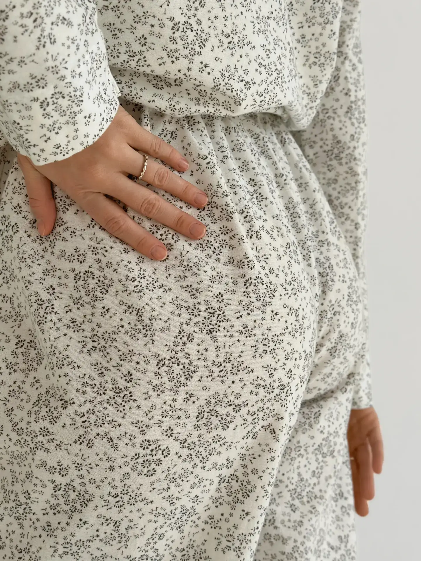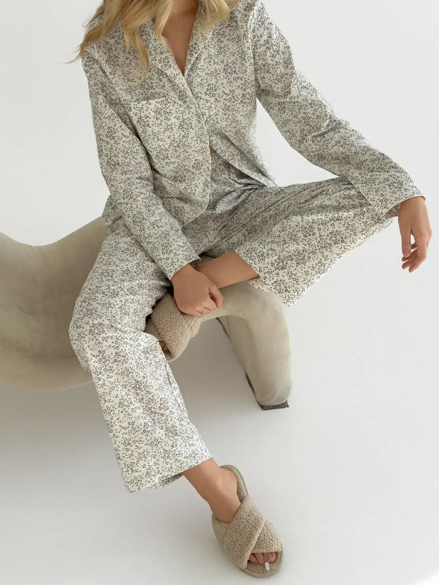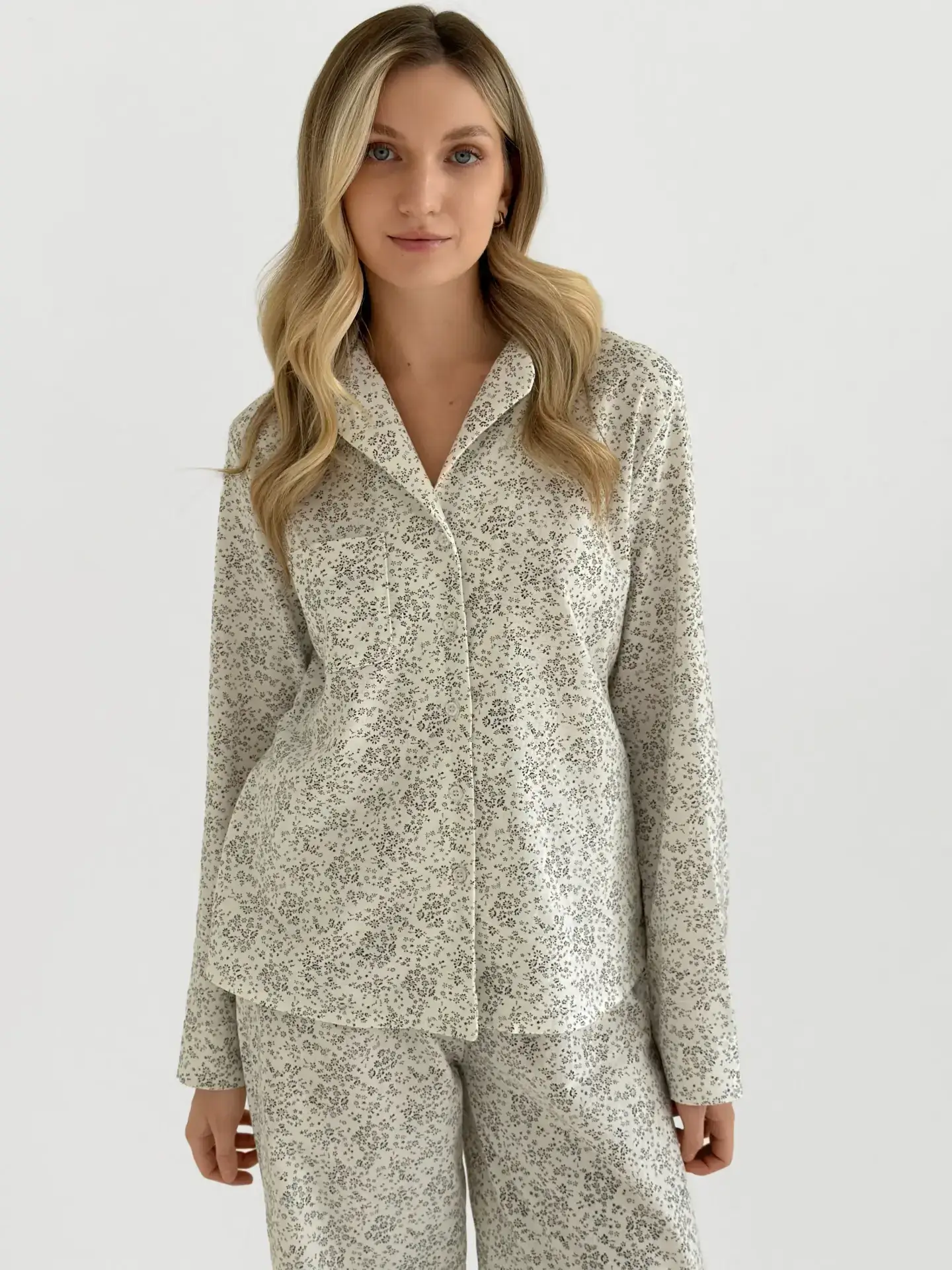 Костюм-піжама для тих, хто полюбляє вдома одягнутись стильно та зручно. Кофта вільного крою, що підходить будь-якому типу фігури.