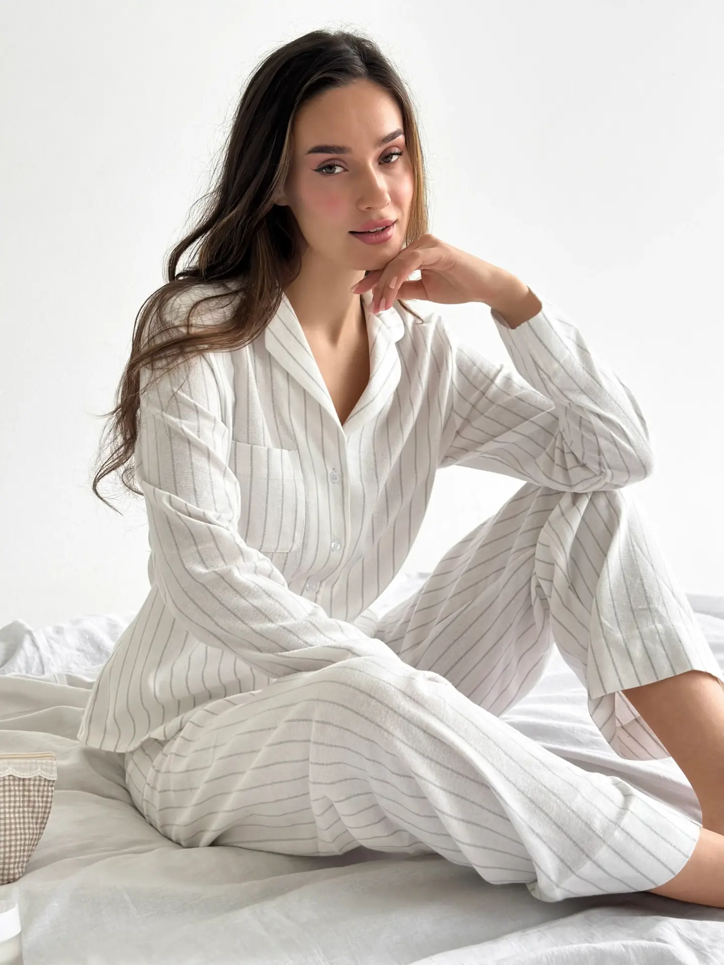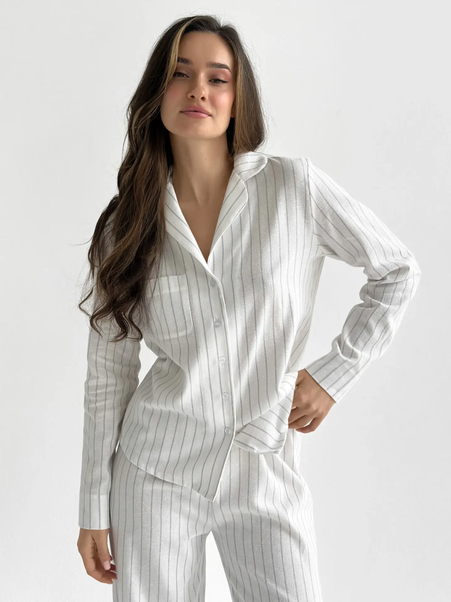 Костюм-піжама для тих, хто полюбляє вдома одягнутись стильно та зручно. Кофта вільного крою, що підходить будь-якому типу фігури.