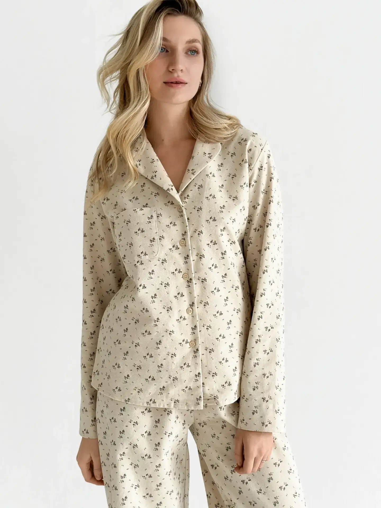 Костюм-піжама для тих, хто полюбляє вдома одягнутись стильно та зручно. Кофта вільного крою, що підходить будь-якому типу фігури.