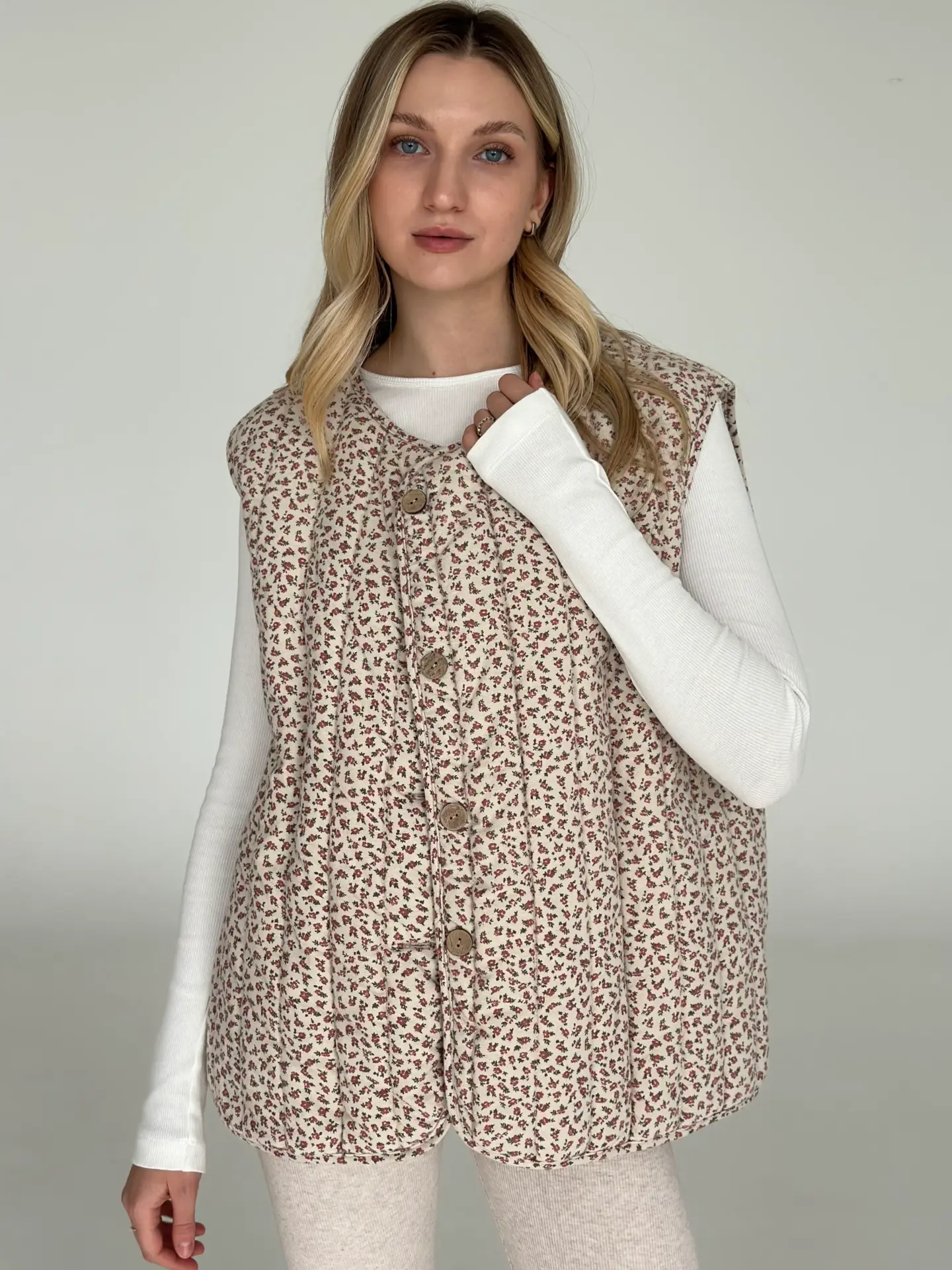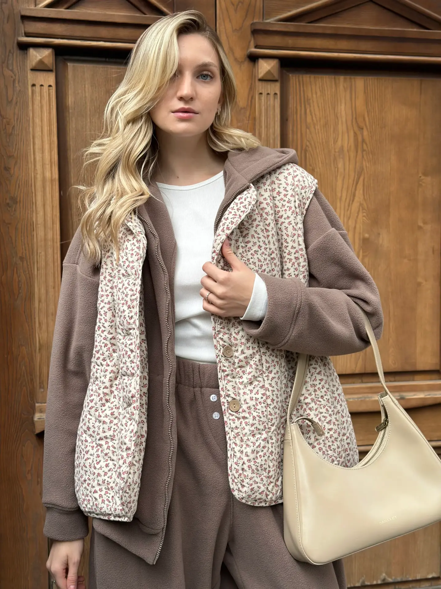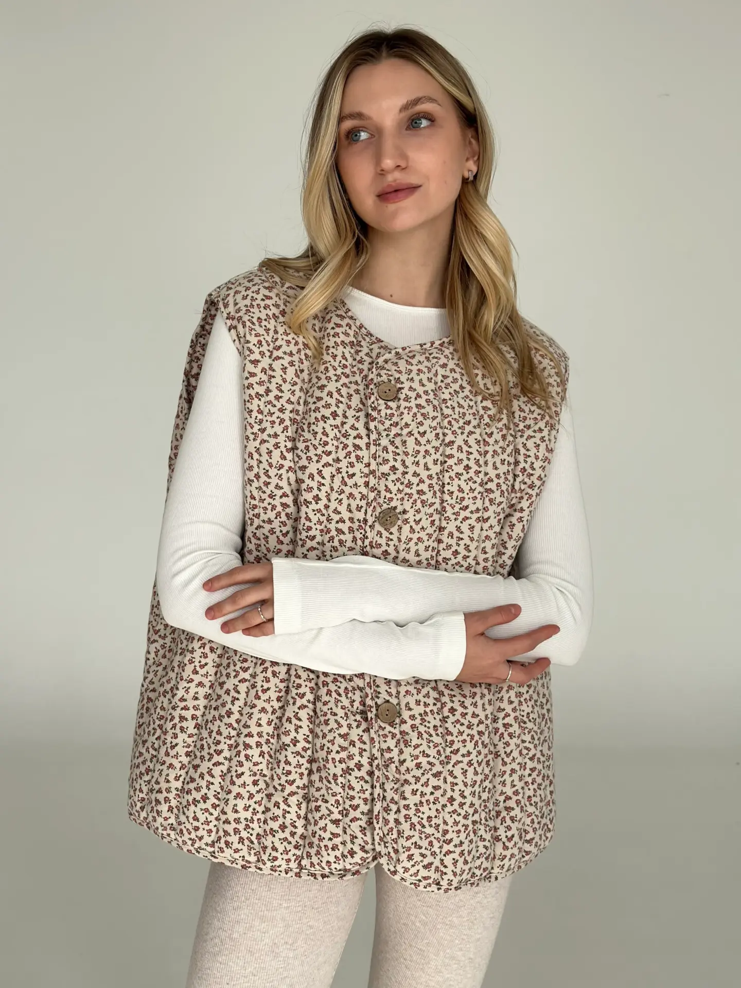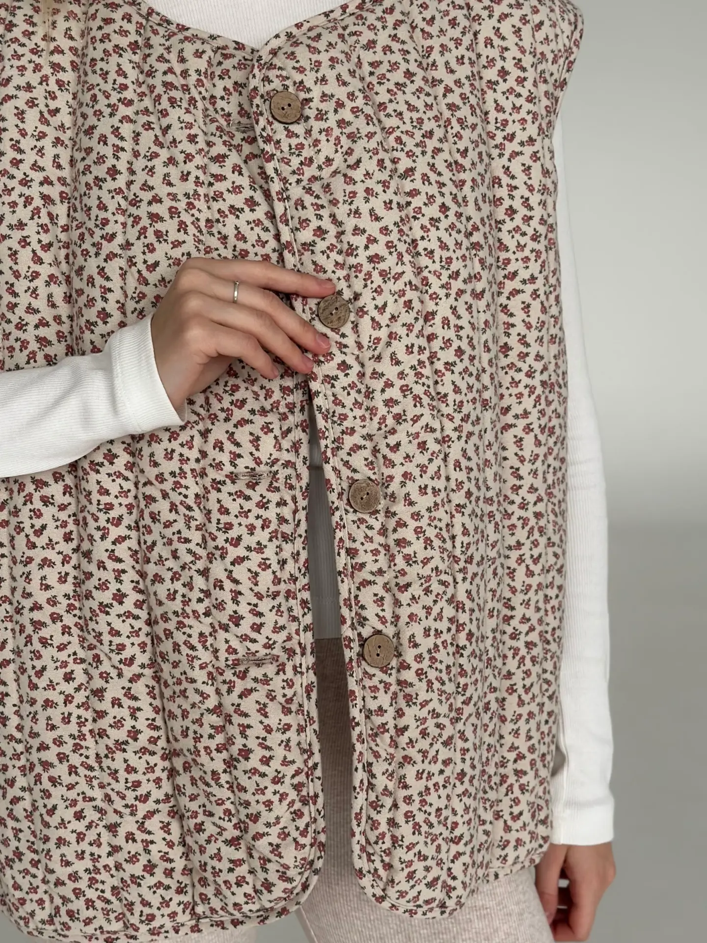 Фланель стьобанна Жилетка бежева "бордова квітка"(onesize) - Twins