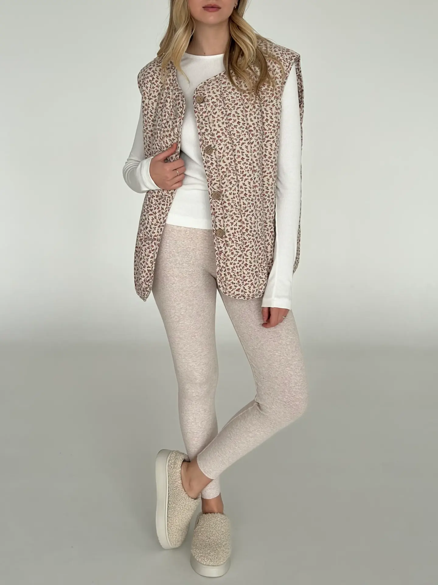 Фланель стьобанна Жилетка бежева “бордова квітка”(onesize)