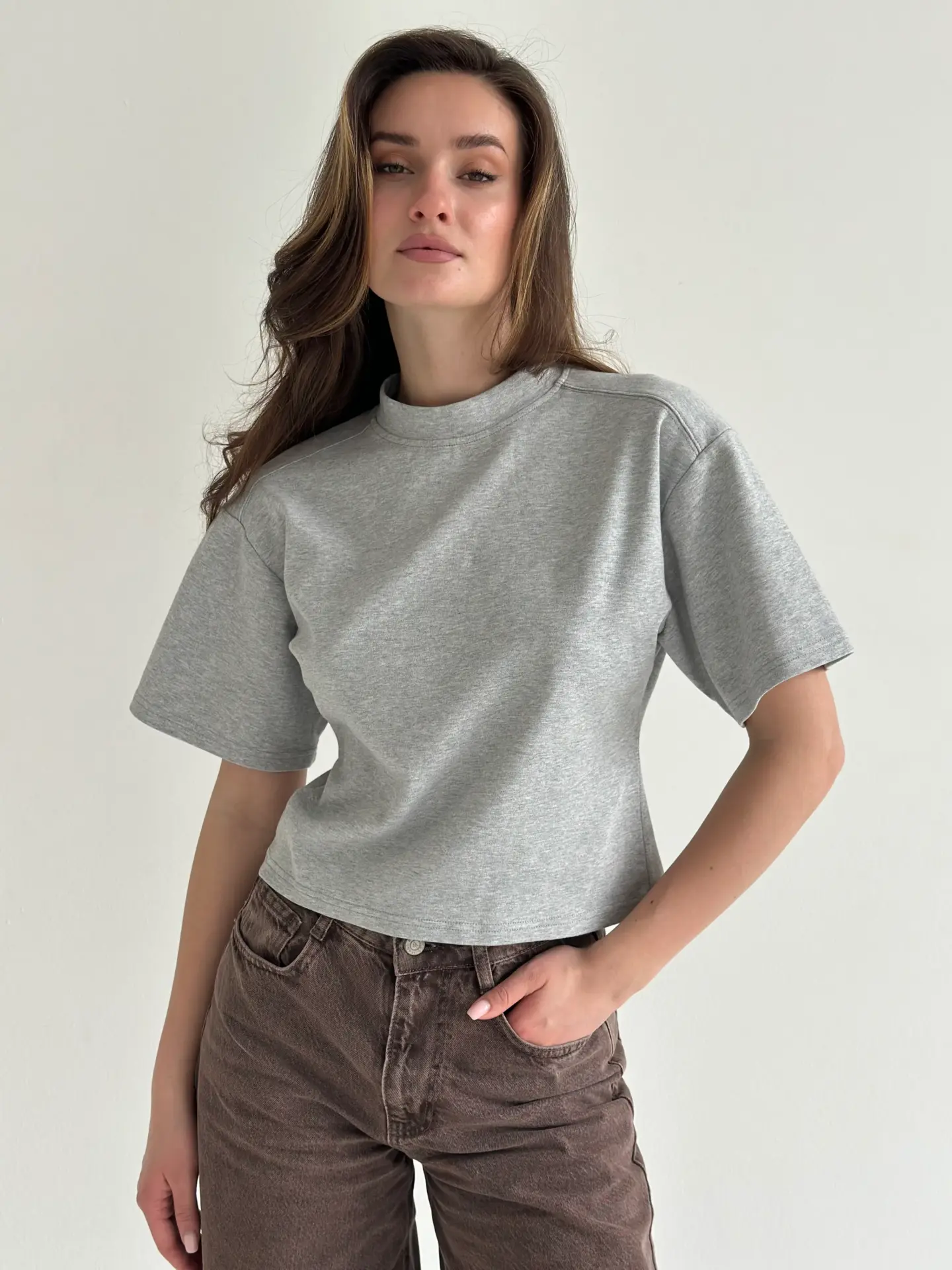 Футболка приталена з котону поєднує комфорт і жіночний силует. Натуральна бавовняна тканина приємна до тіла, добре пропускає повітря та забезпечує зручність протягом усього дня. Завдяки приталеному крою модель гарно підкреслює фігуру та легко поєднується з різними елементами гардеробу.
