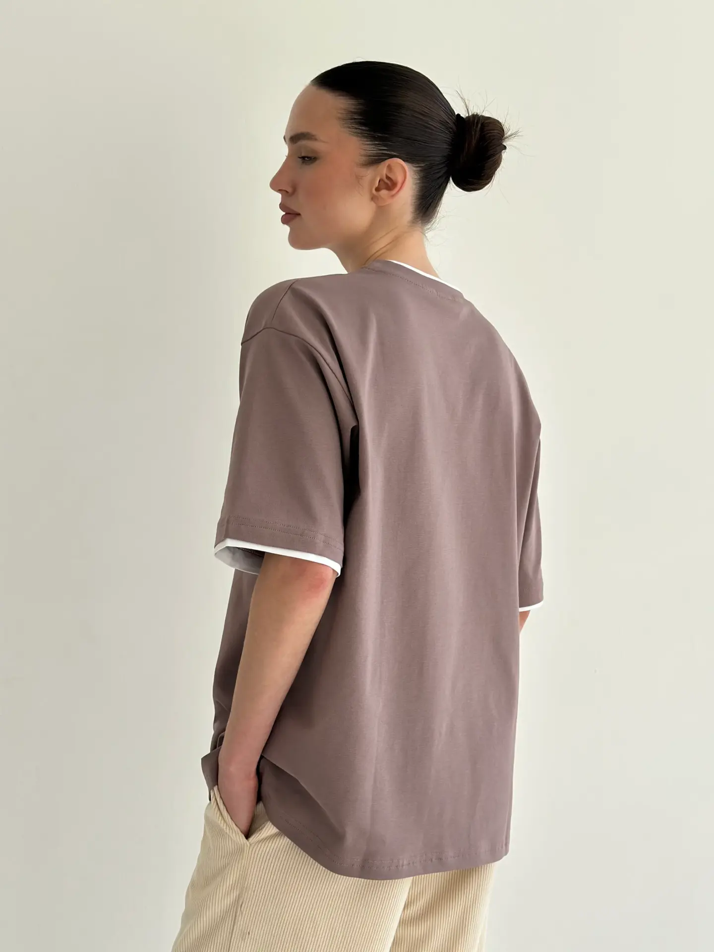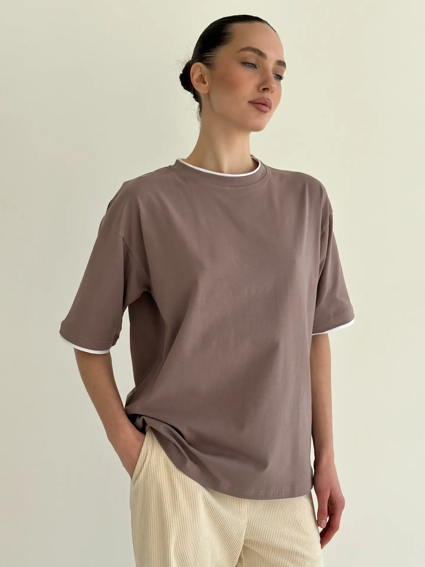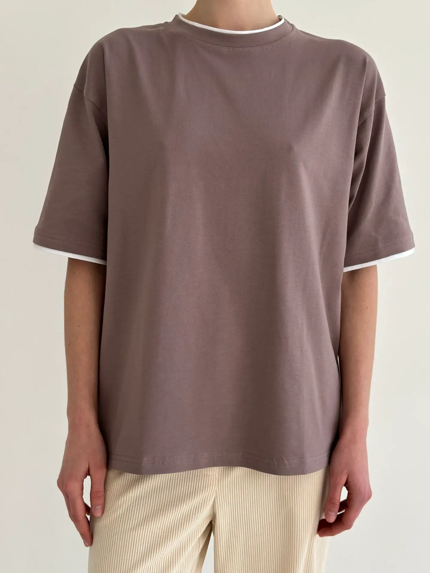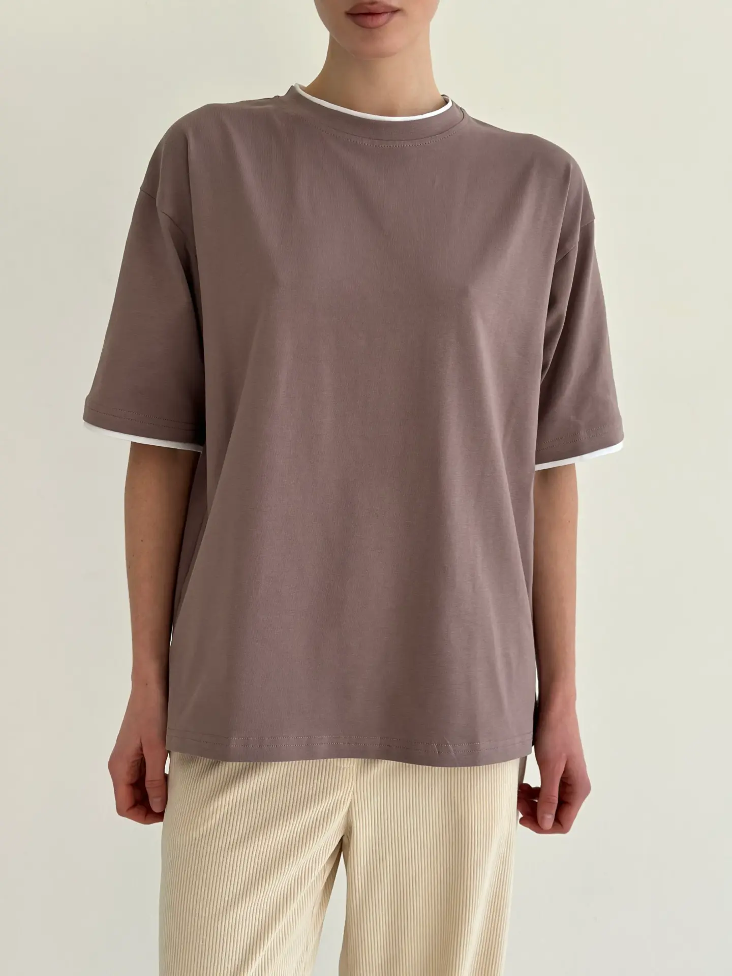 Футболка з білим кантом капучино, onesize