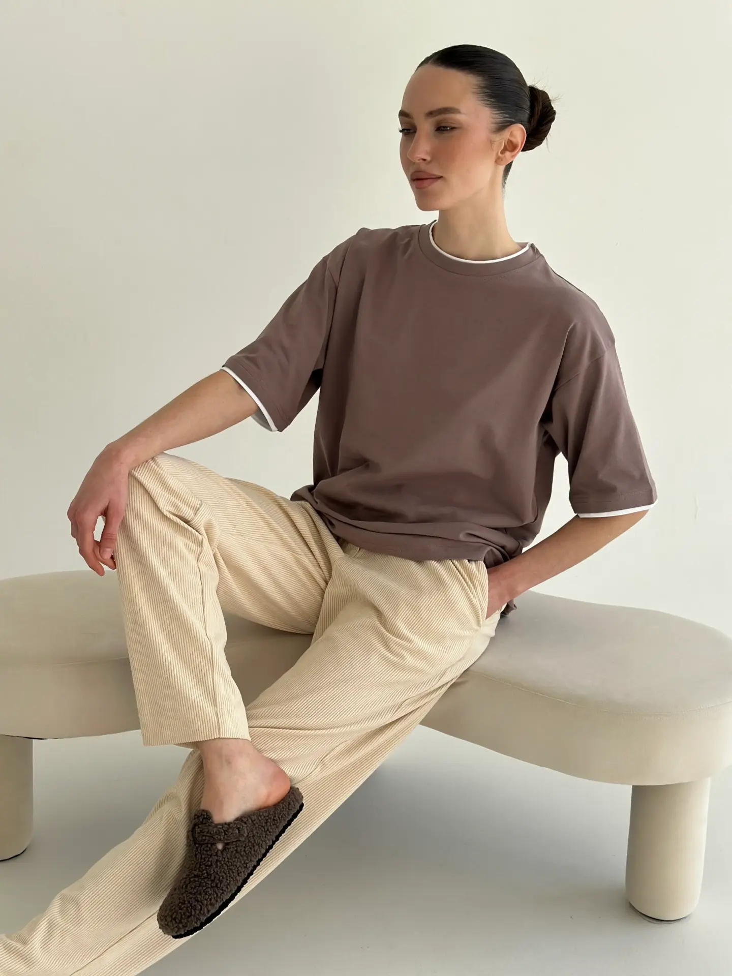 NewВельвет штани прямі молочні