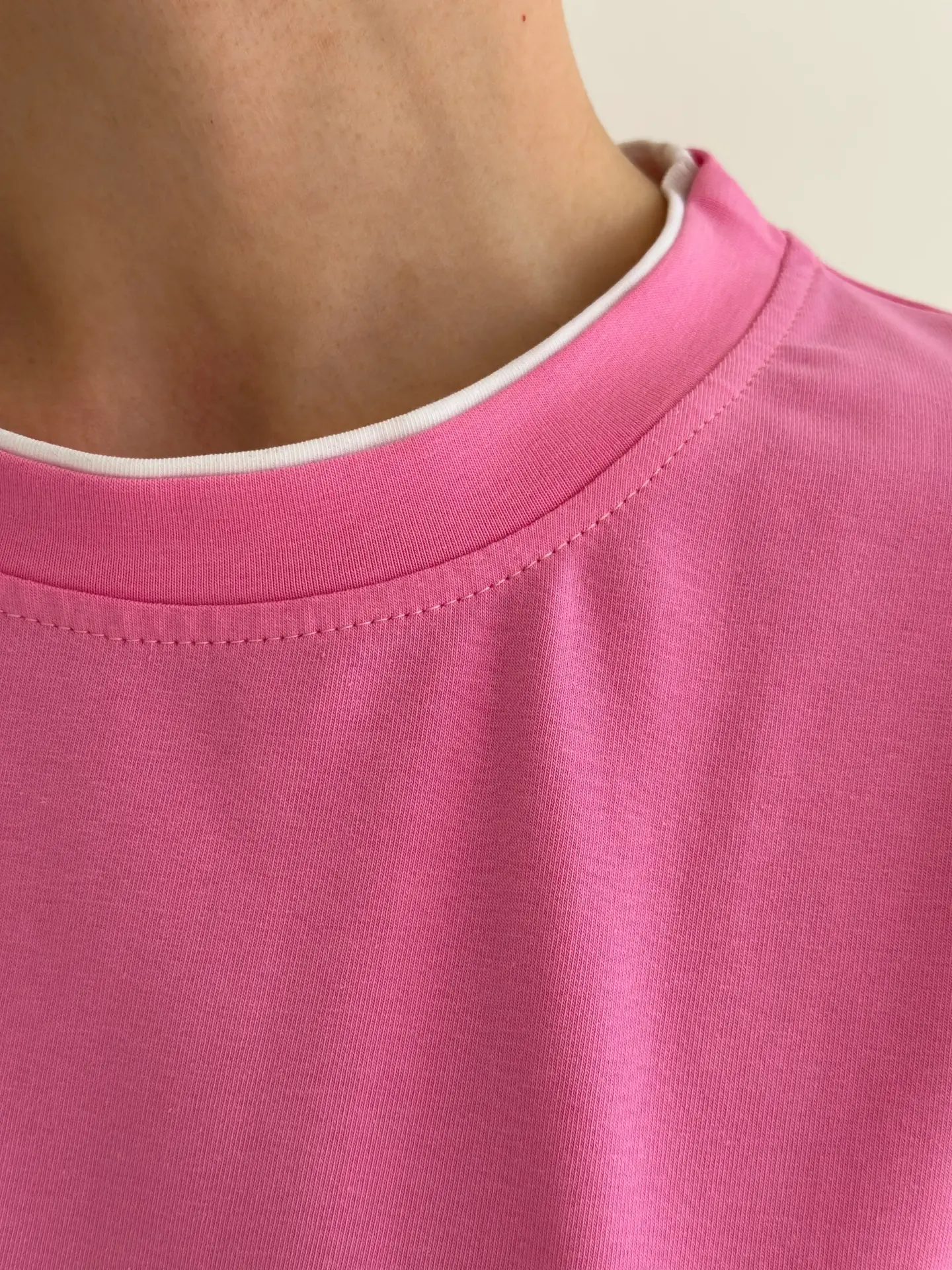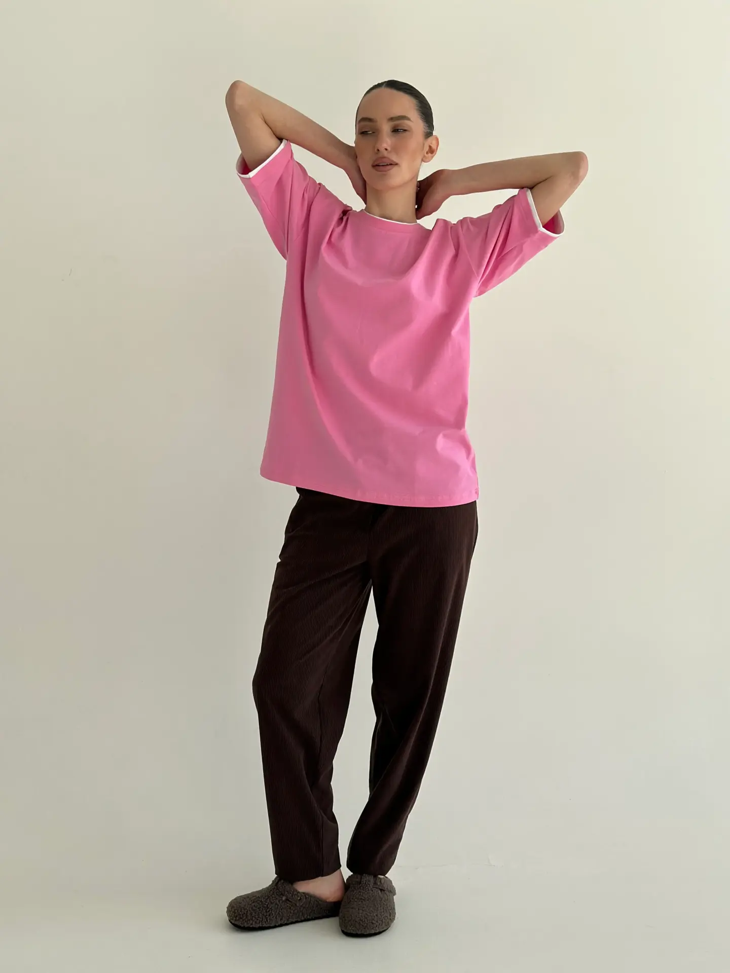 Футболка з білим кантом виглядає свіжо й акуратно. Контрастна окантовка додає образу легкого акценту та робить її цікавішою. М’яка і зручна у носінні, добре підходить для щоденних образів.