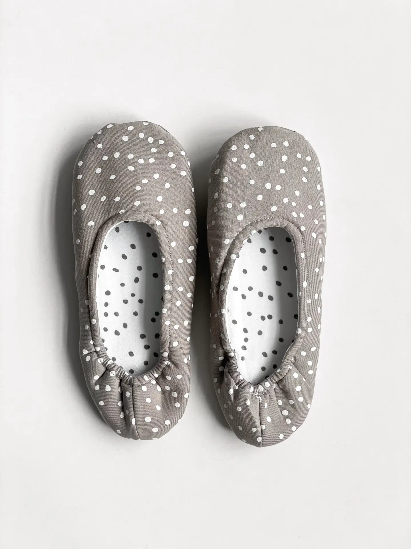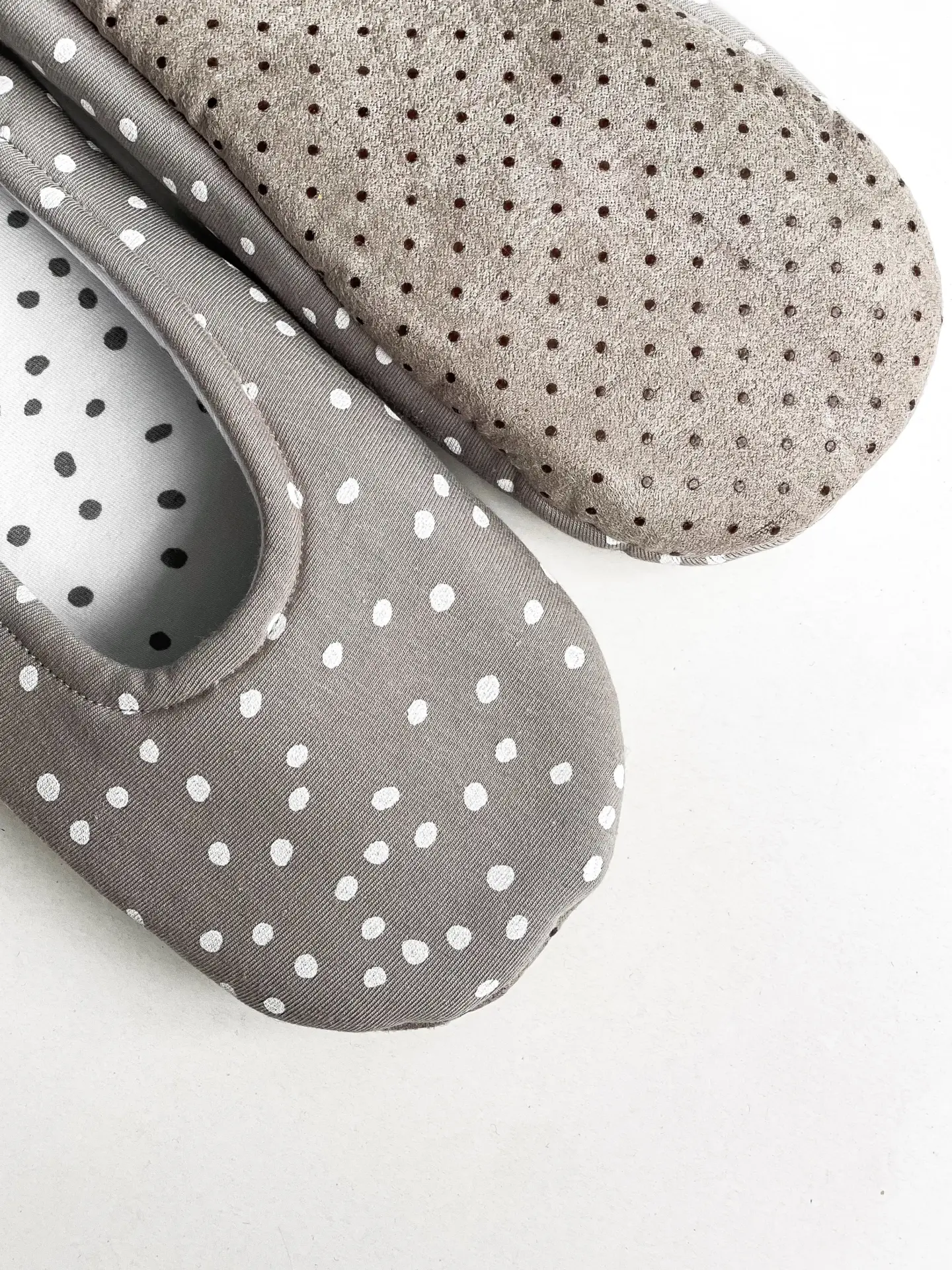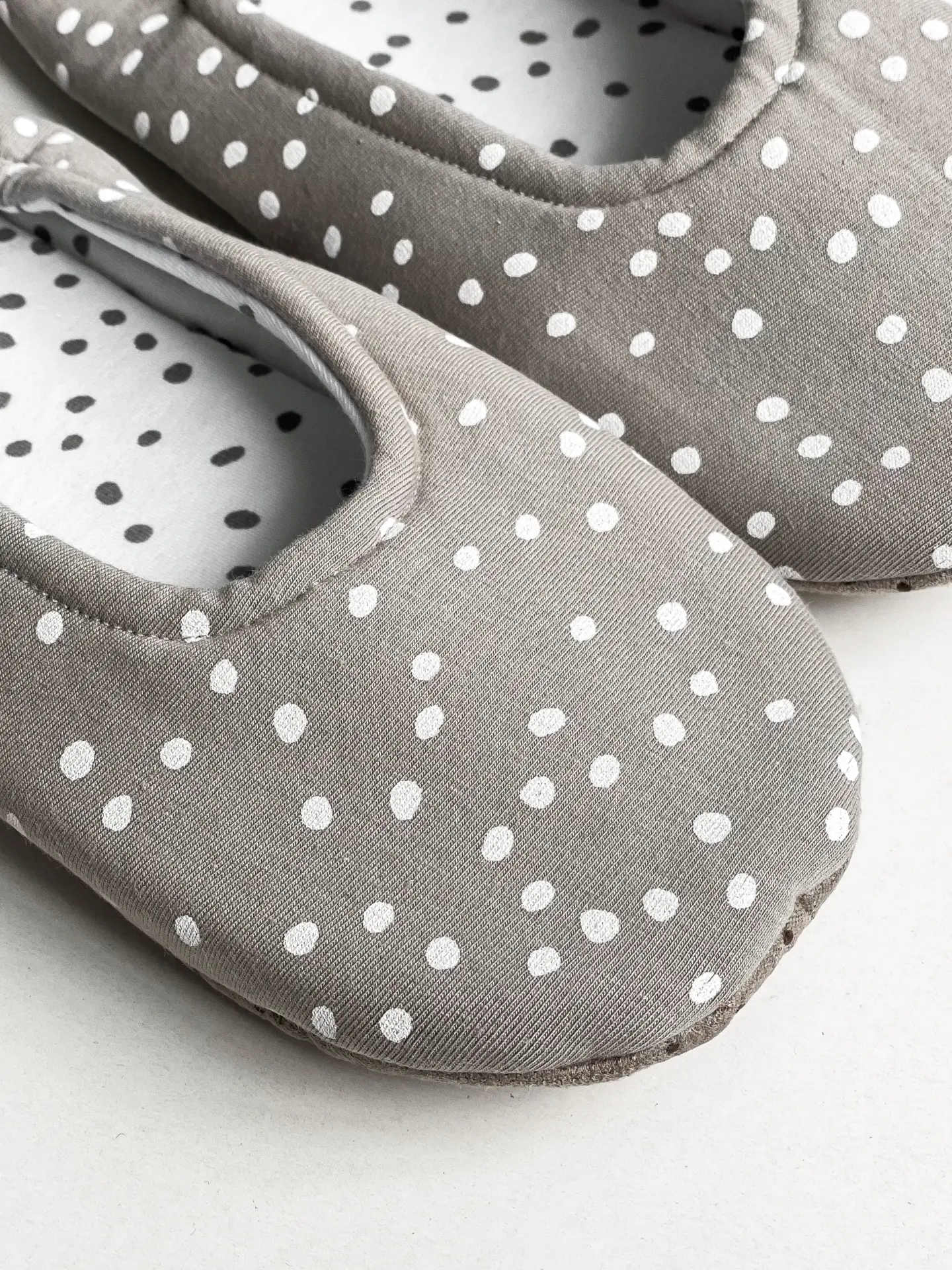 Капці домашні чешки жіночі трикотажні в білий горох сірі