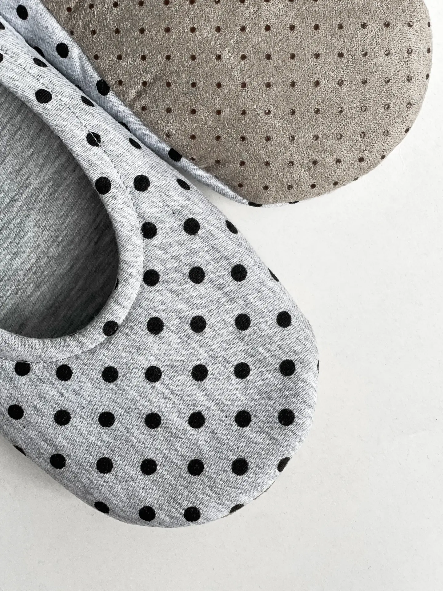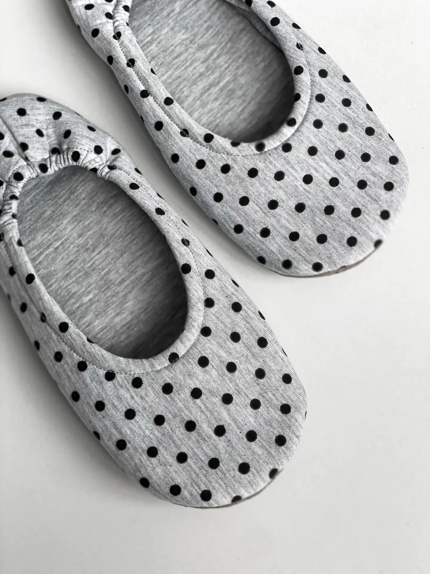Капці домашні чешки жіночі трикотажні в чорний горох сірі