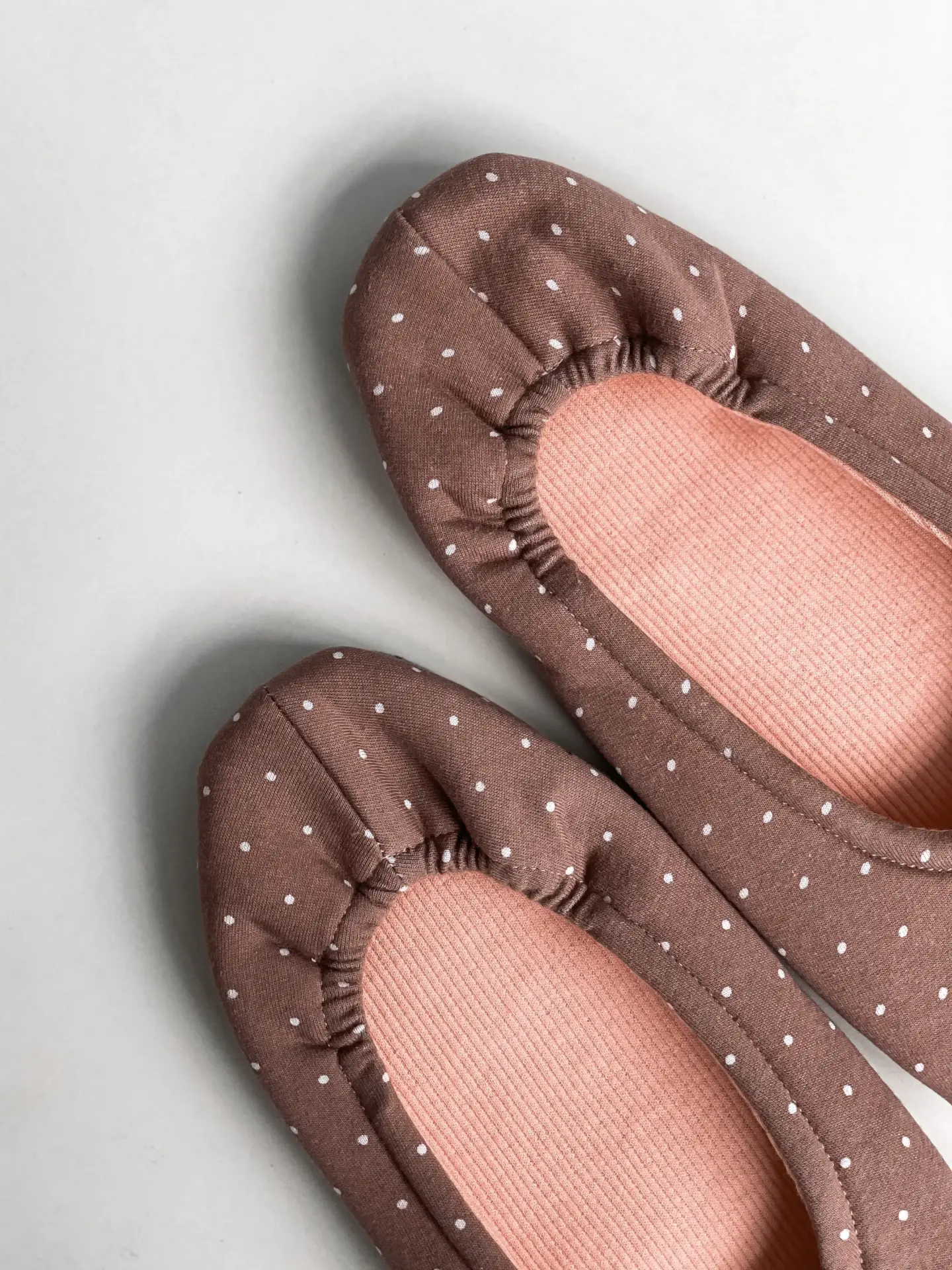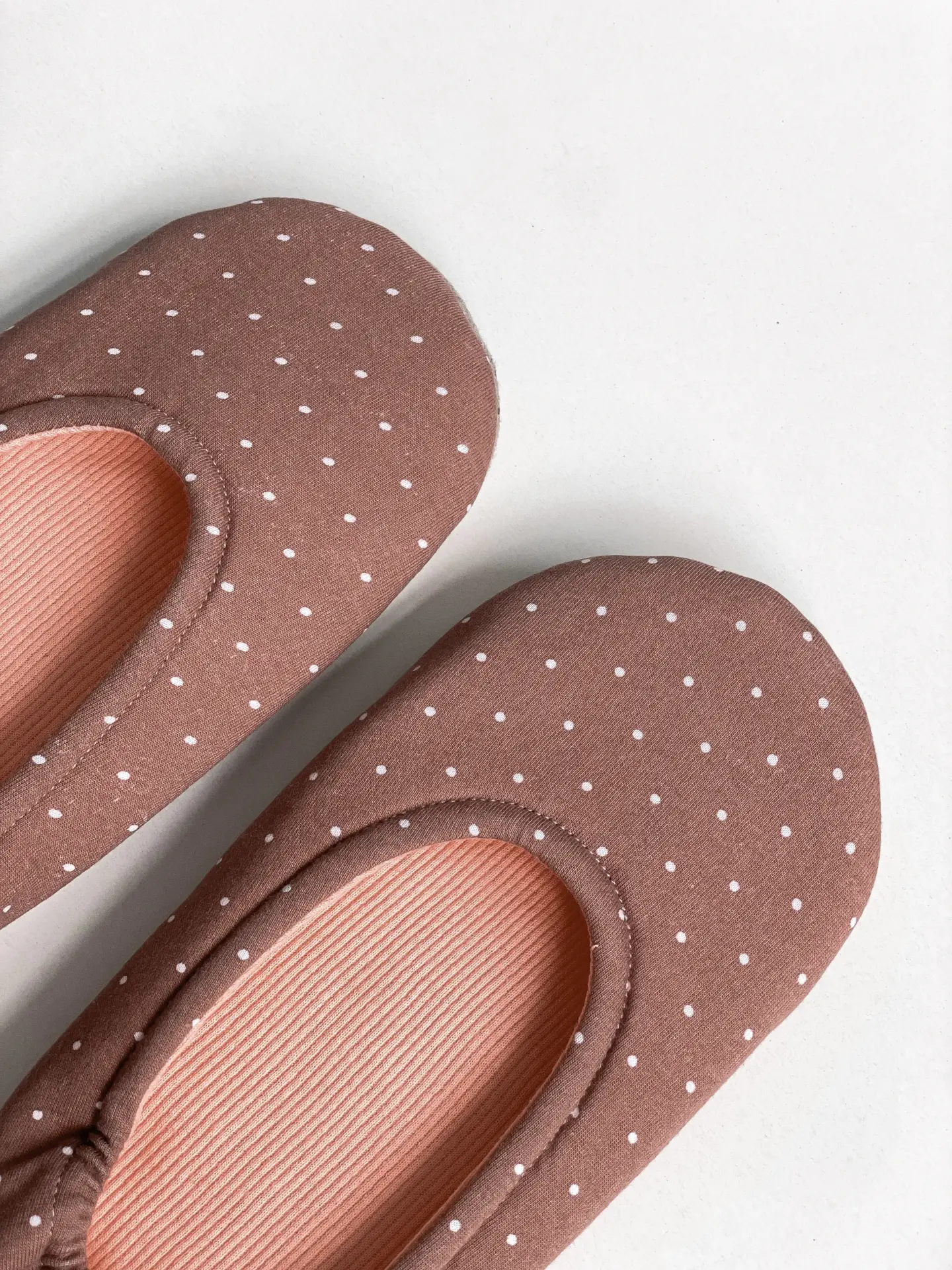 Капці домашні чешки жіночі трикотажні в горох коричневі