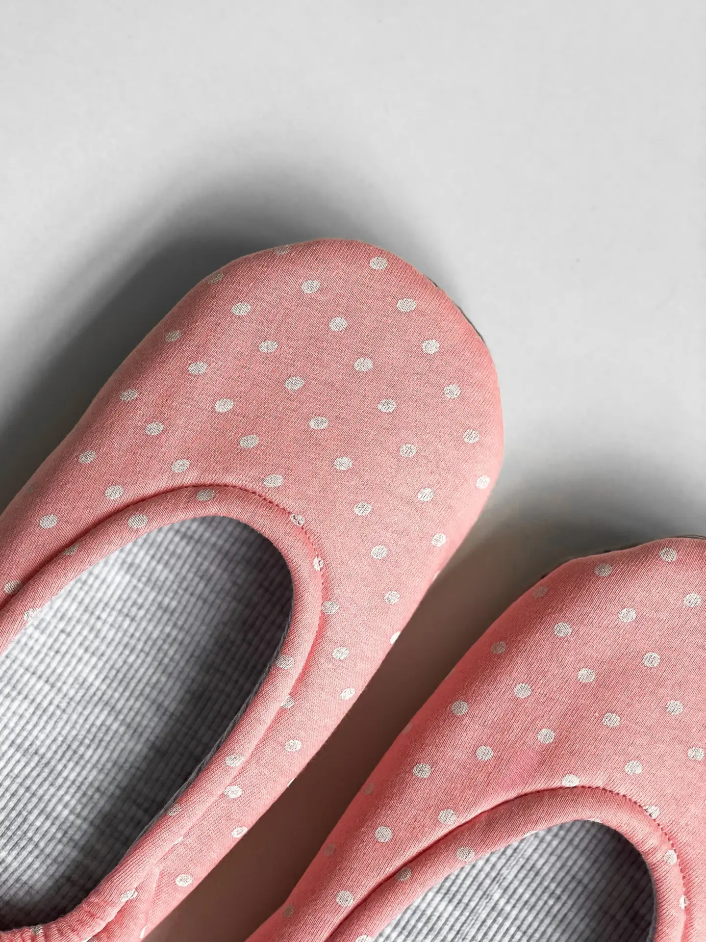 Капці домашні чешки жіночі трикотажні в горох пудрові - Twins