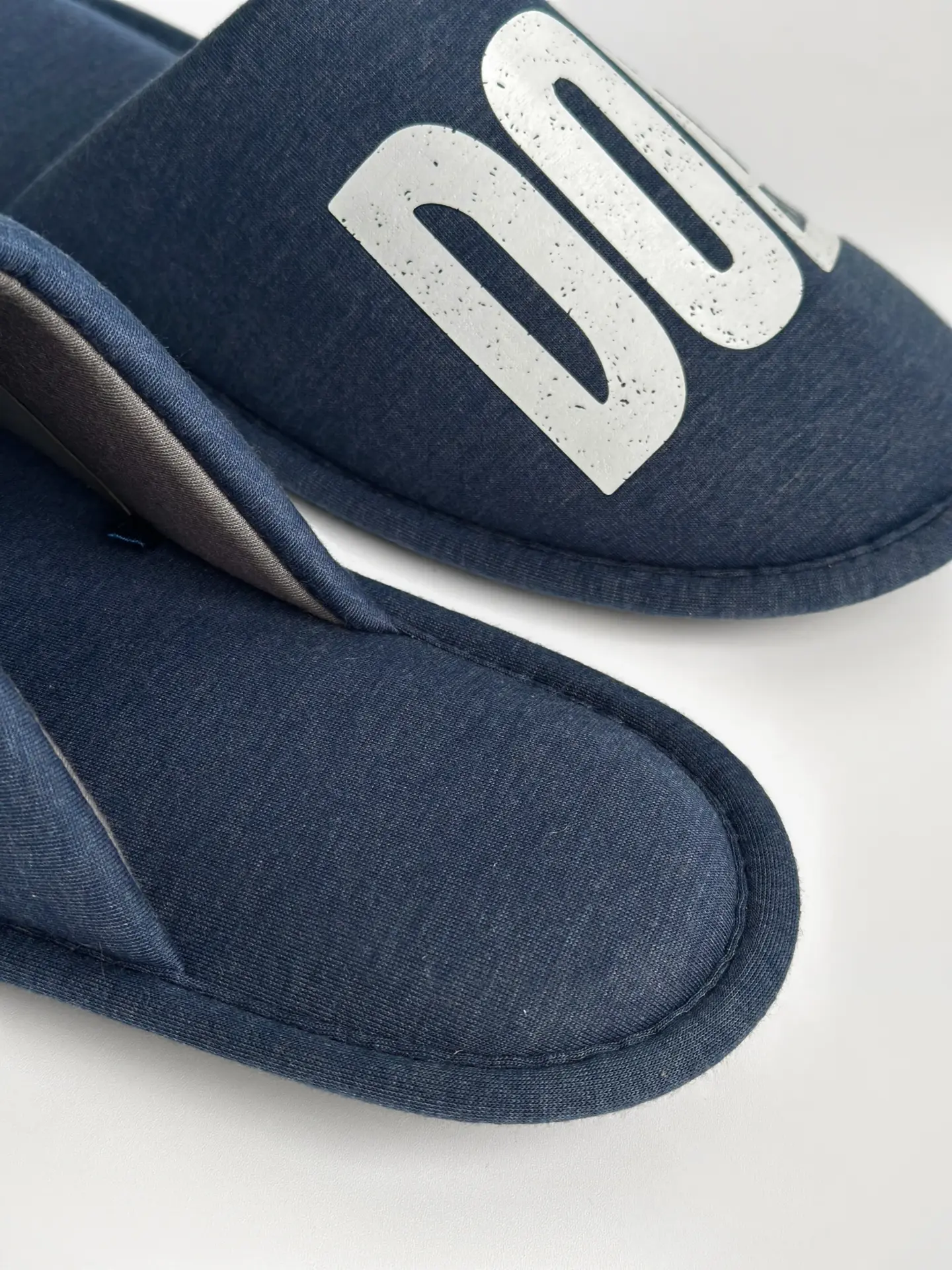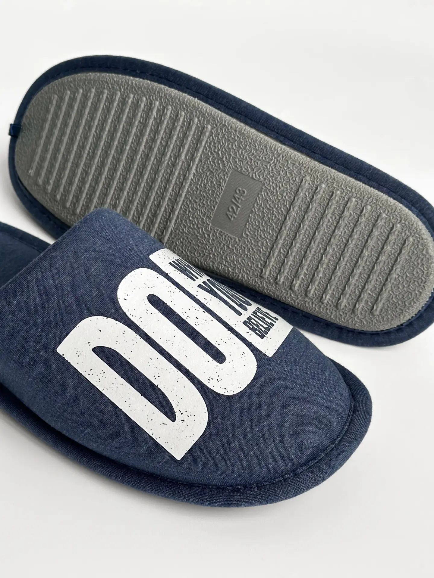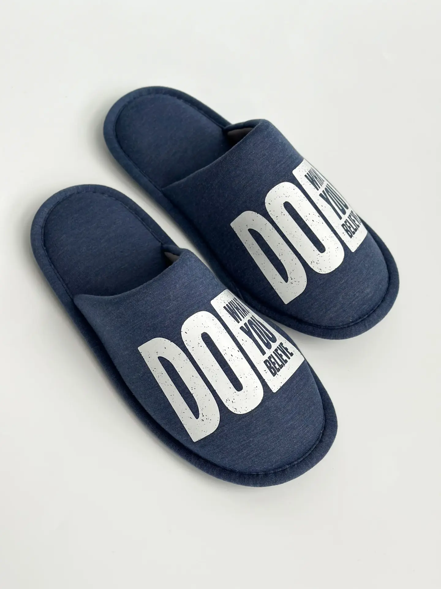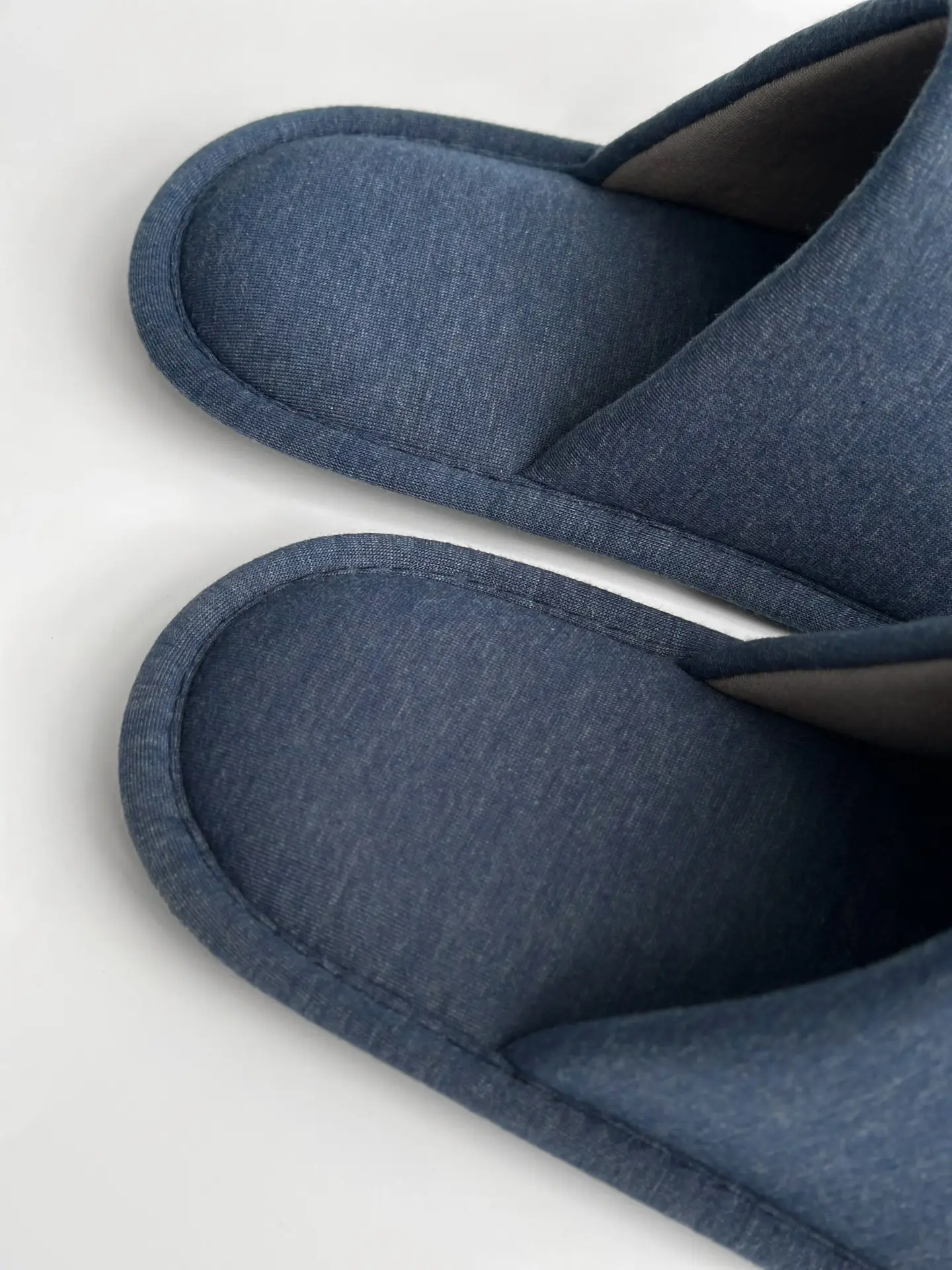 Капці домашні чоловічі HS-VL закриті меланж сині з наліпкою PVC