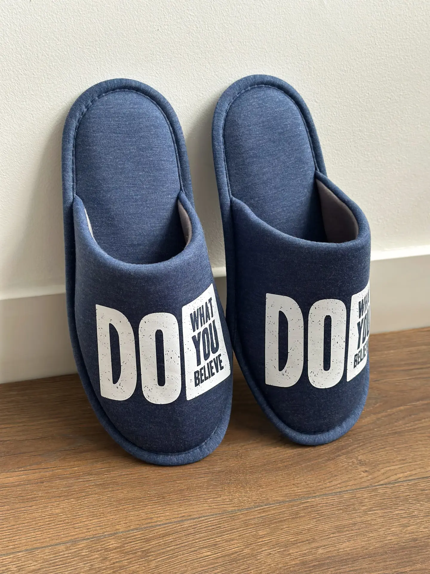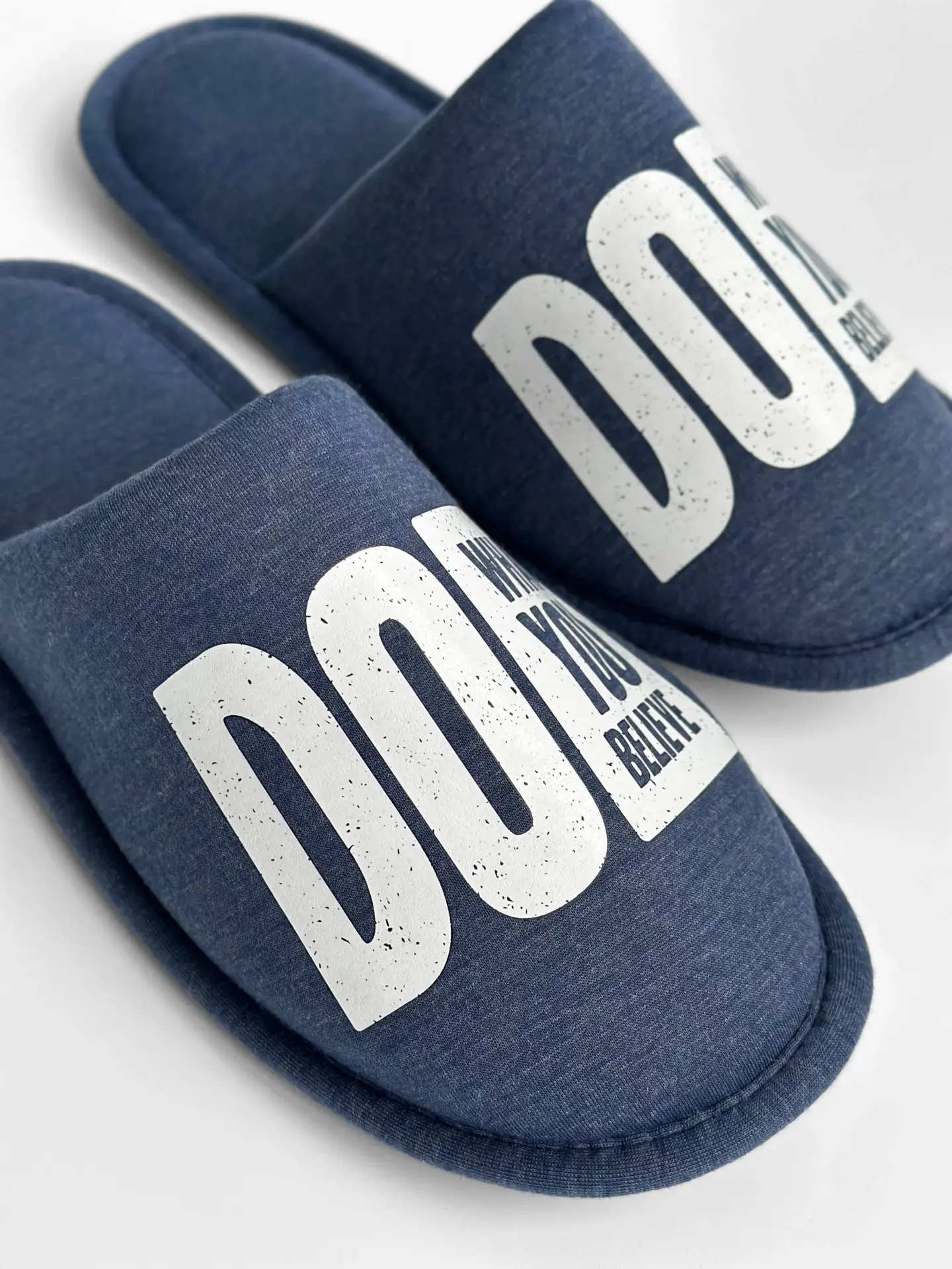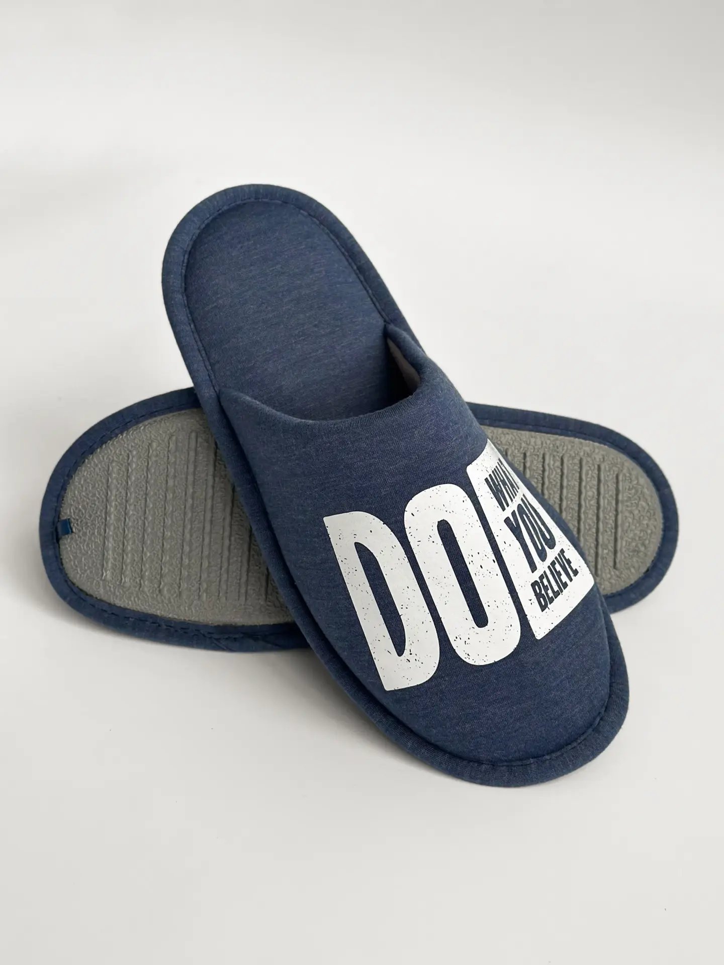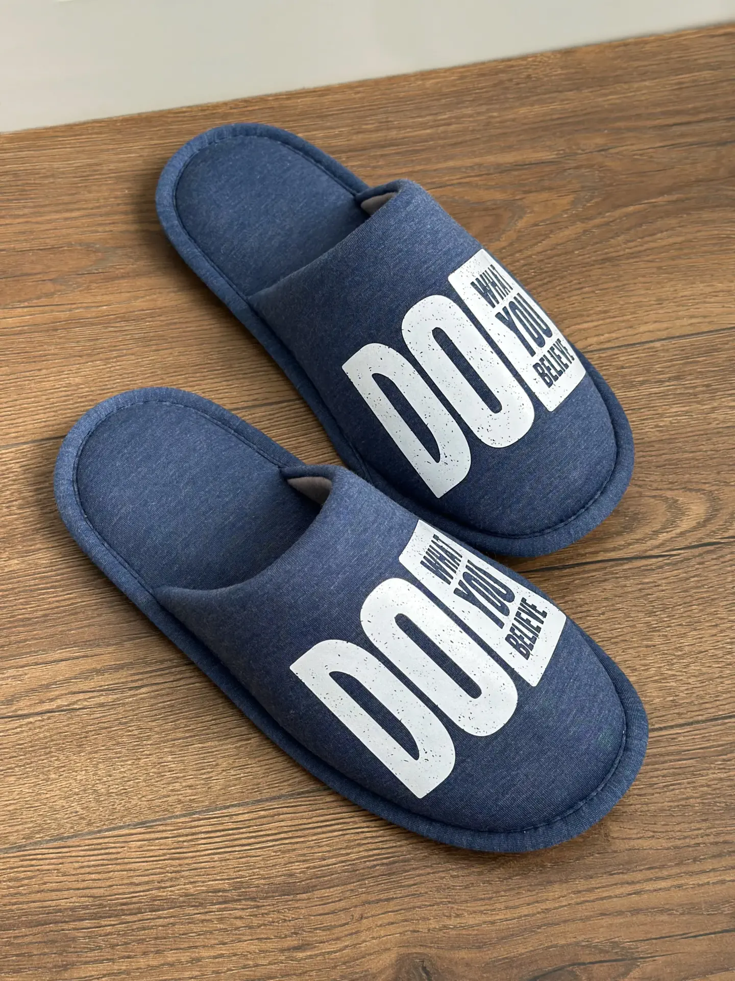 Капці домашні чоловічі HS-VL закриті меланж сині з наліпкою PVC