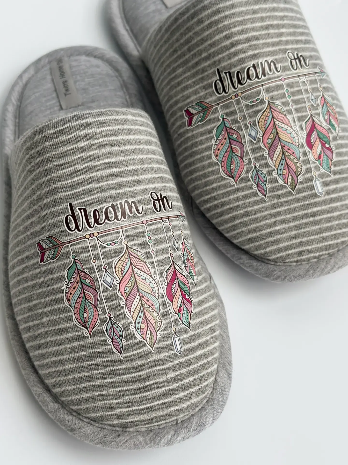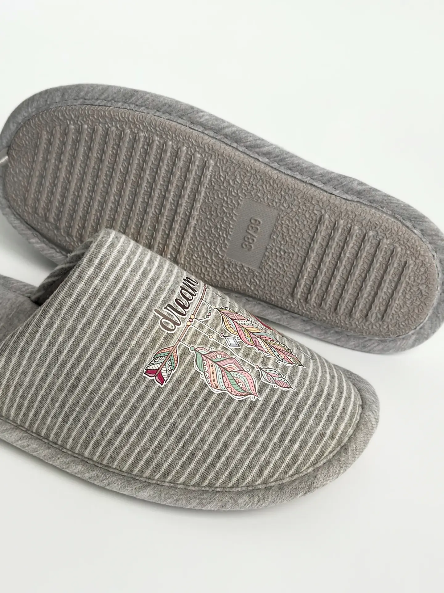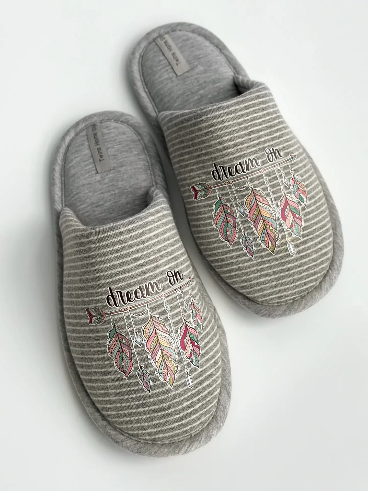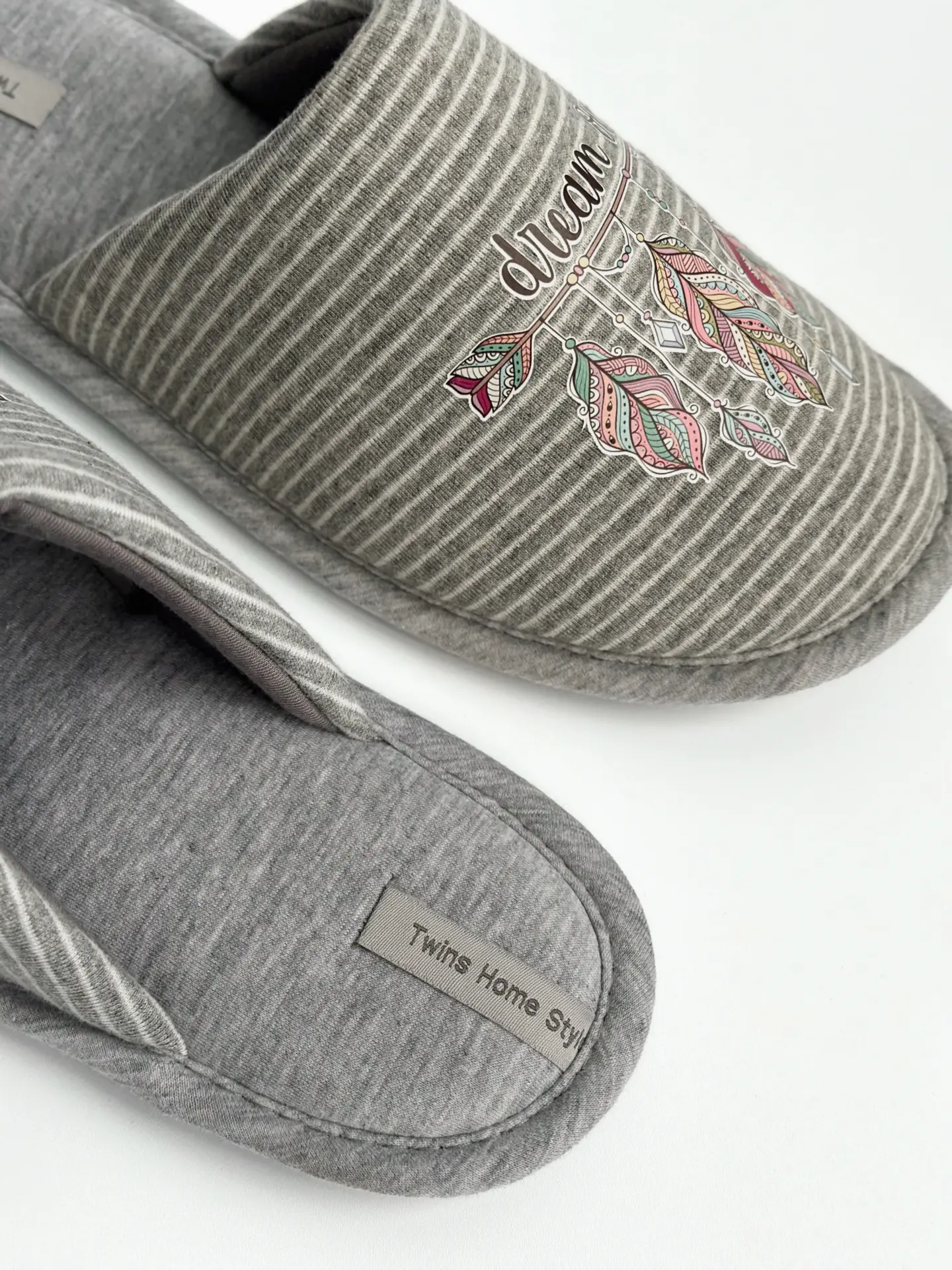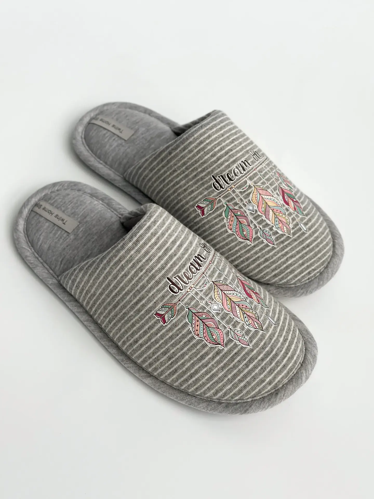 Капці домашні жіночі HS-VL закриті смужка сіра з наліпкою PVC - Twins