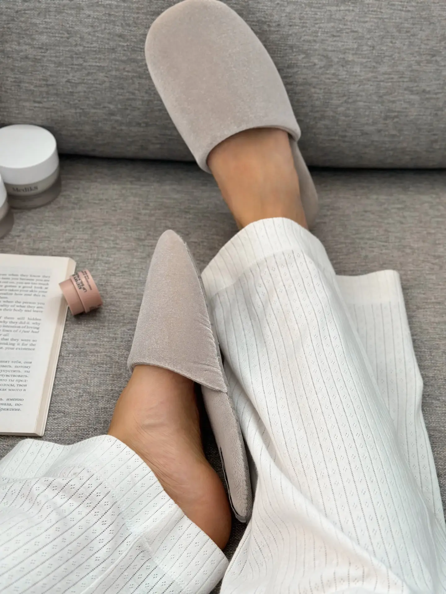 Жіночі велюрові капці для дому поєднують комфорт та елегантний вигляд. М’який велюр приємний до ноги, а легка підошва забезпечує зручність у щоденному використанні. Ідеальний вибір для затишку та тепла вдома.