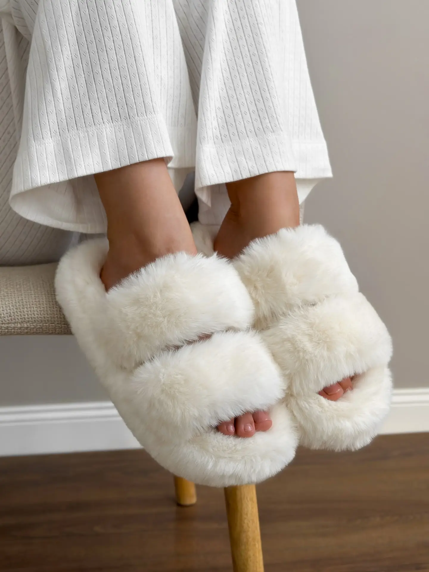 Капці жіночі # хутро молочні =
