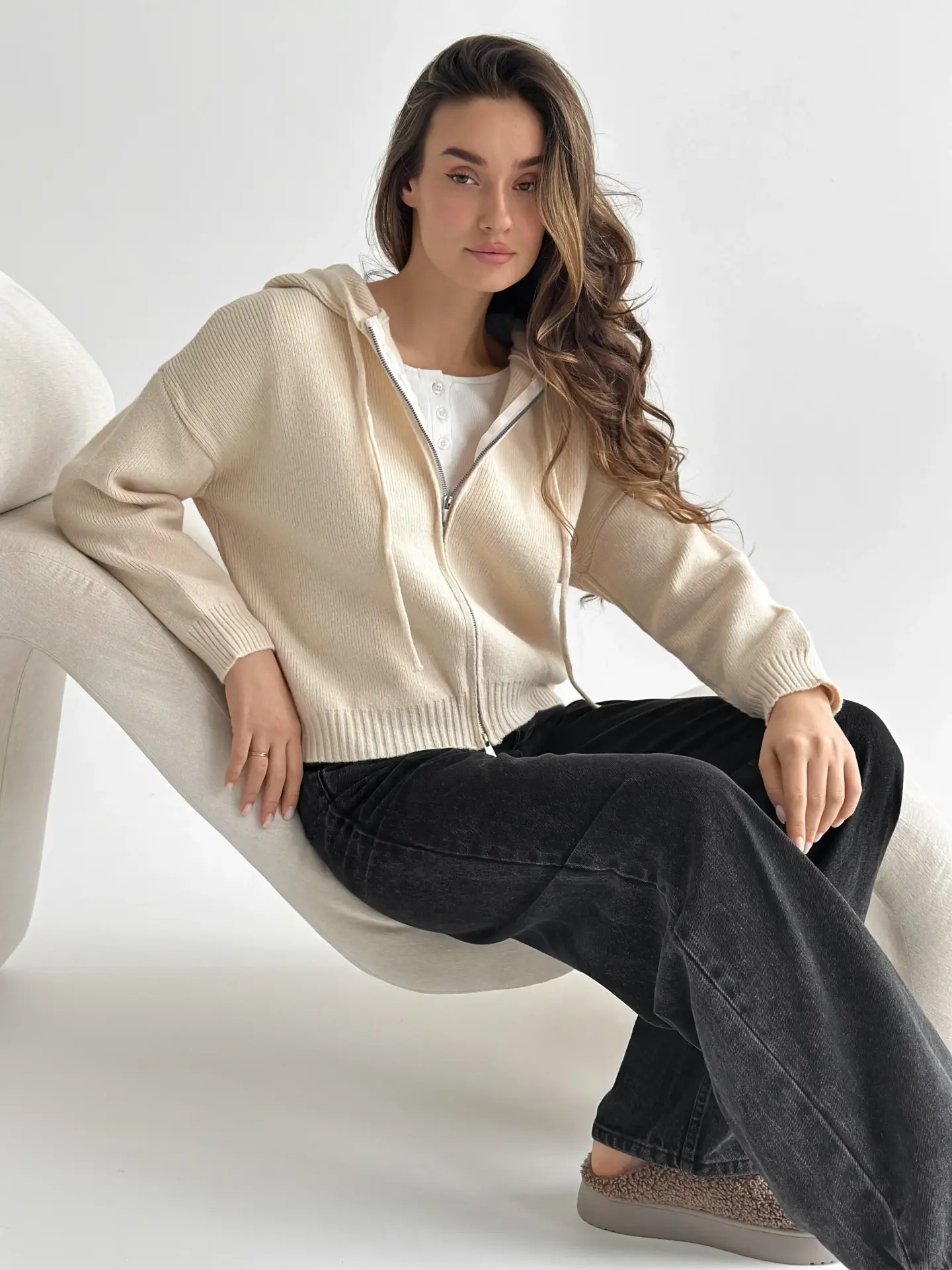 Кардиган на блискавці – м’який, зручний і універсальний. Легко поєднується з будь-яким повсякденним образом, а застібка додає практичності. Ідеальний варіант для щодня.