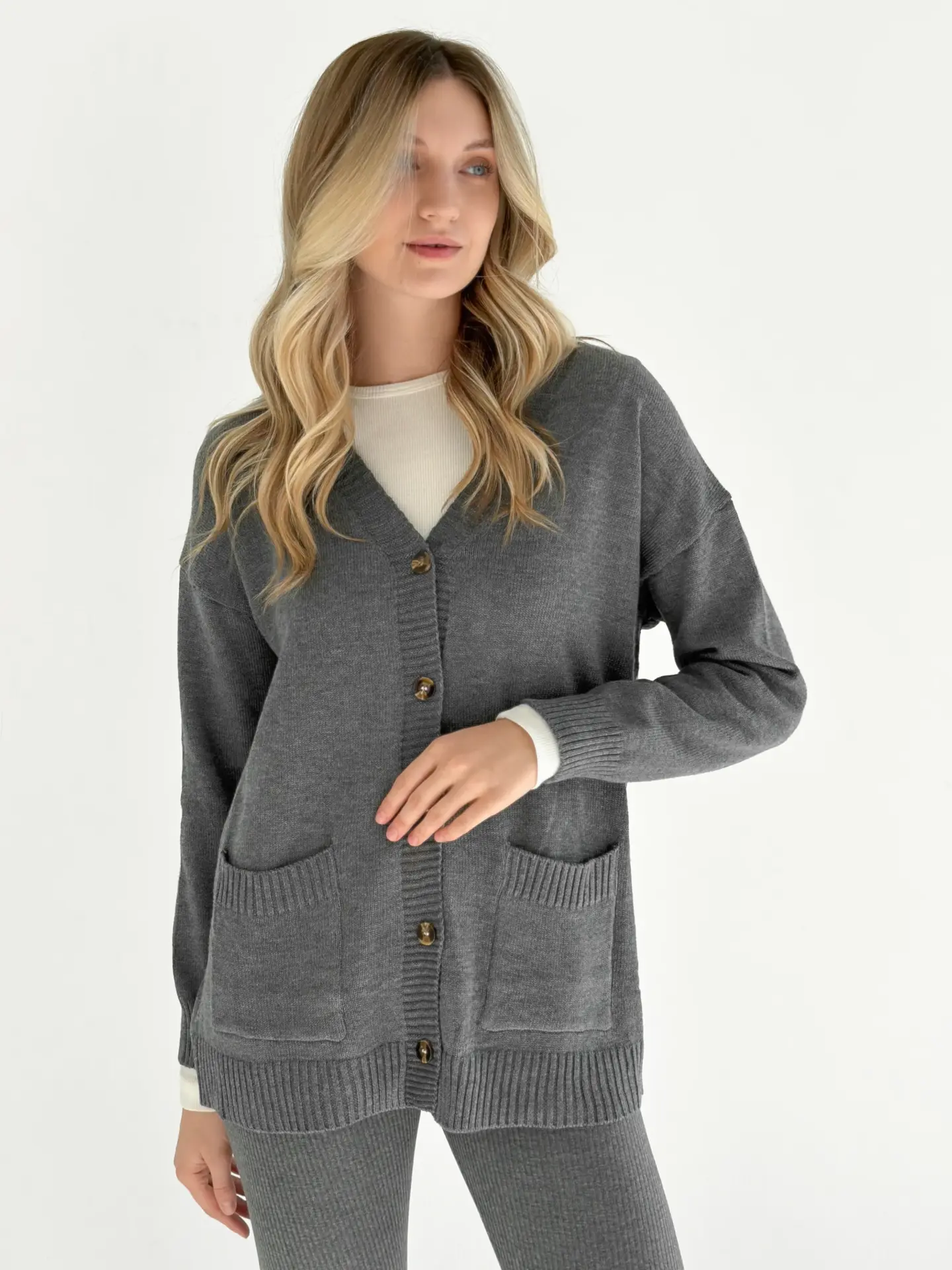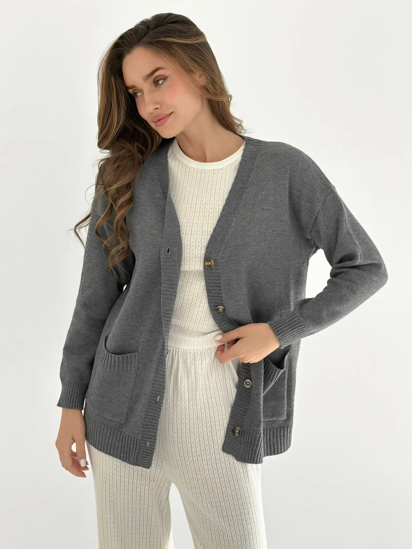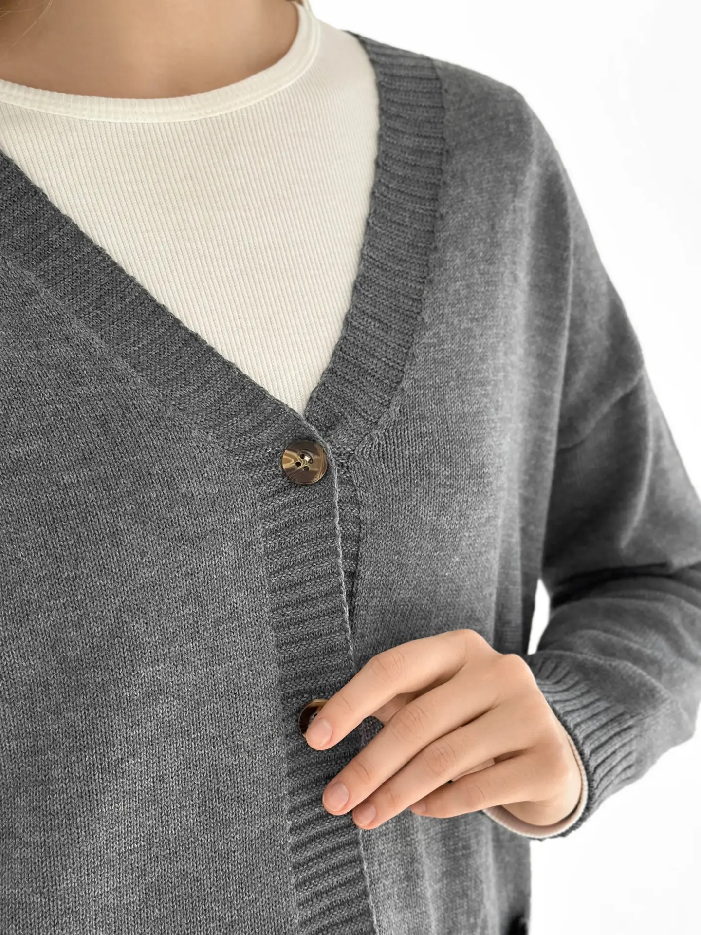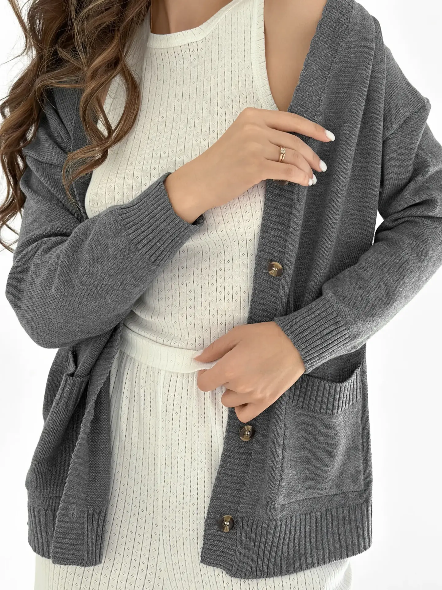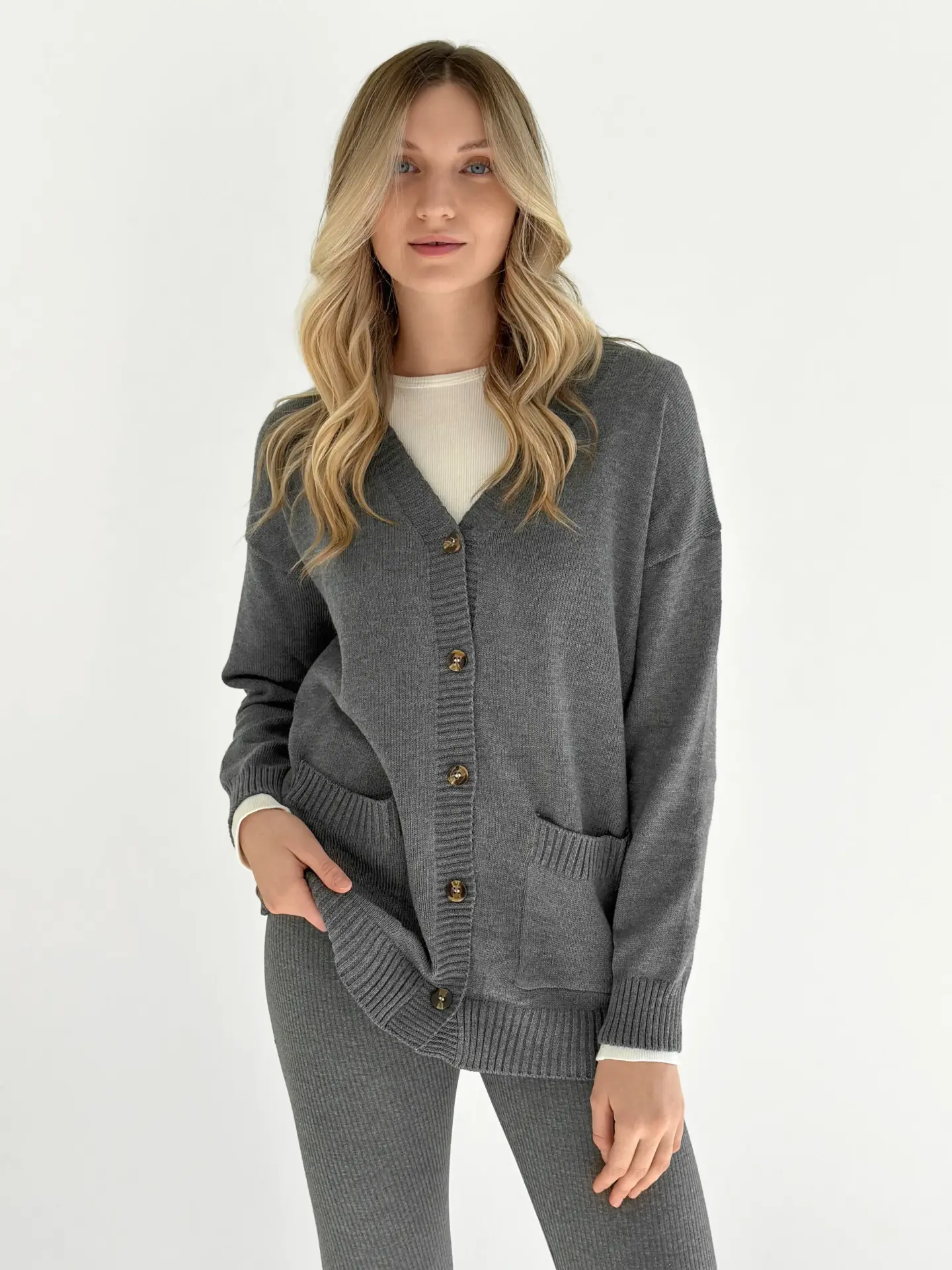 Кардиган в’язаний подовжений на ґудзиках графіт