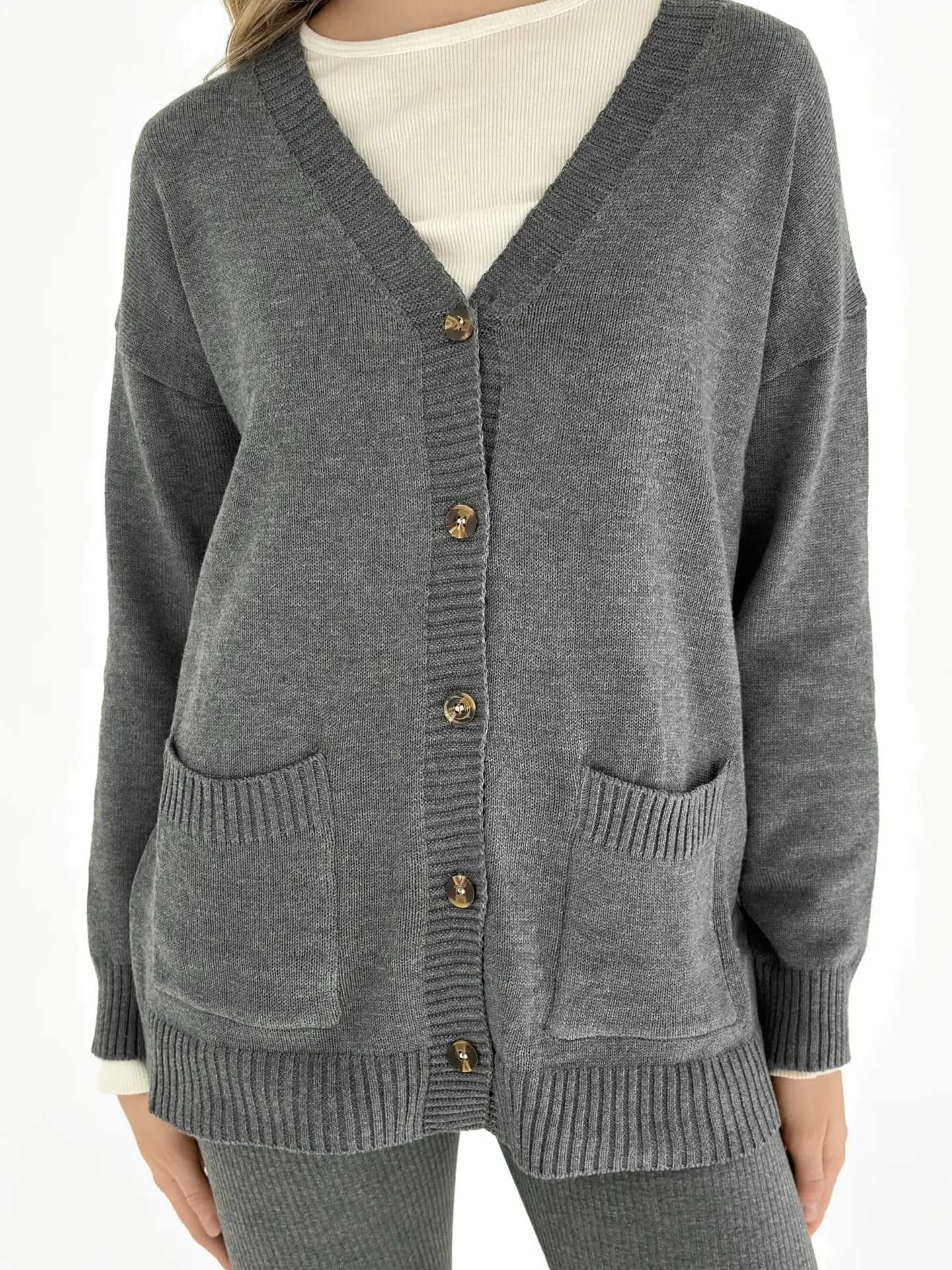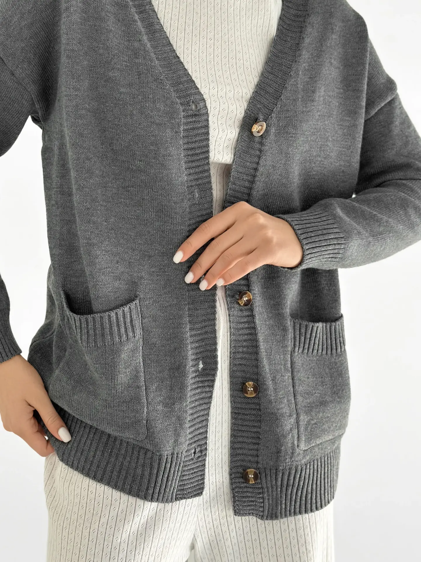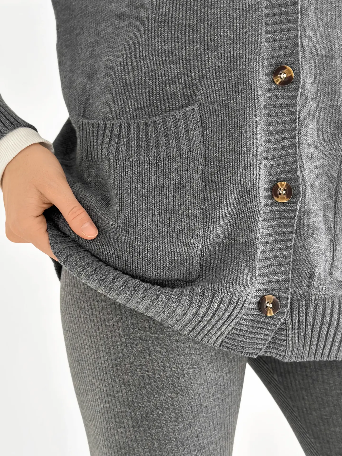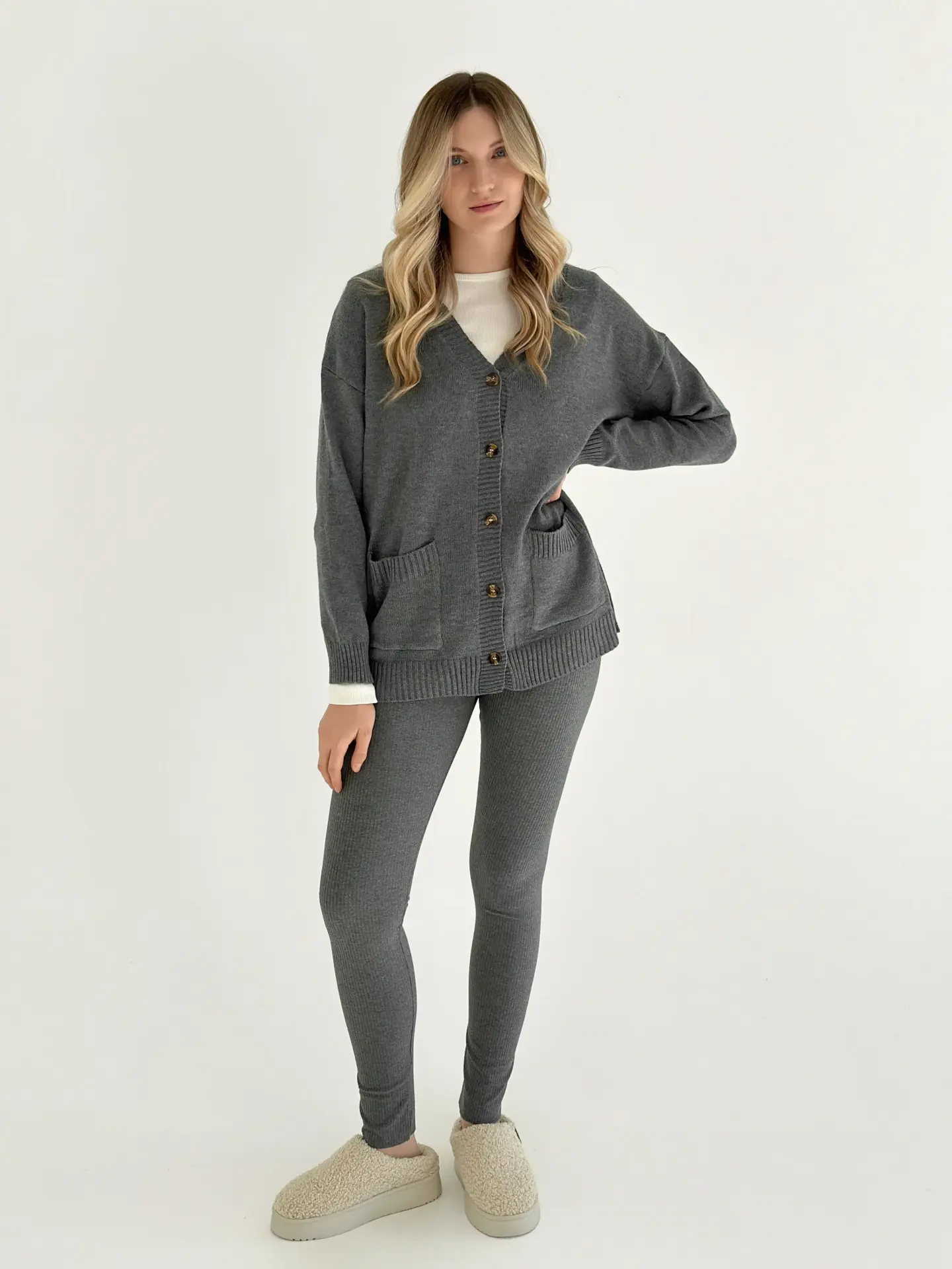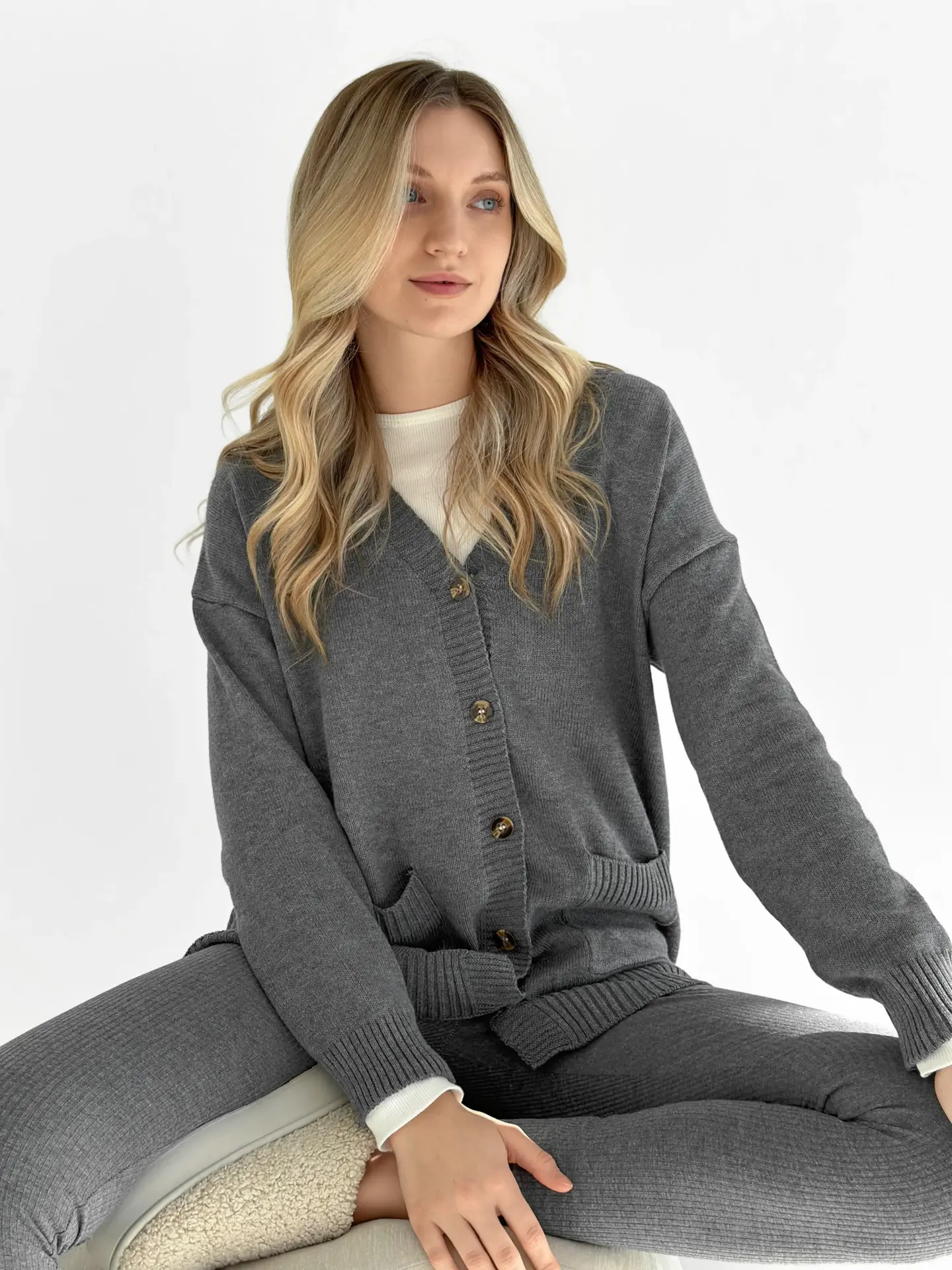 Кардиган в’язаний подовжений на ґудзиках графіт