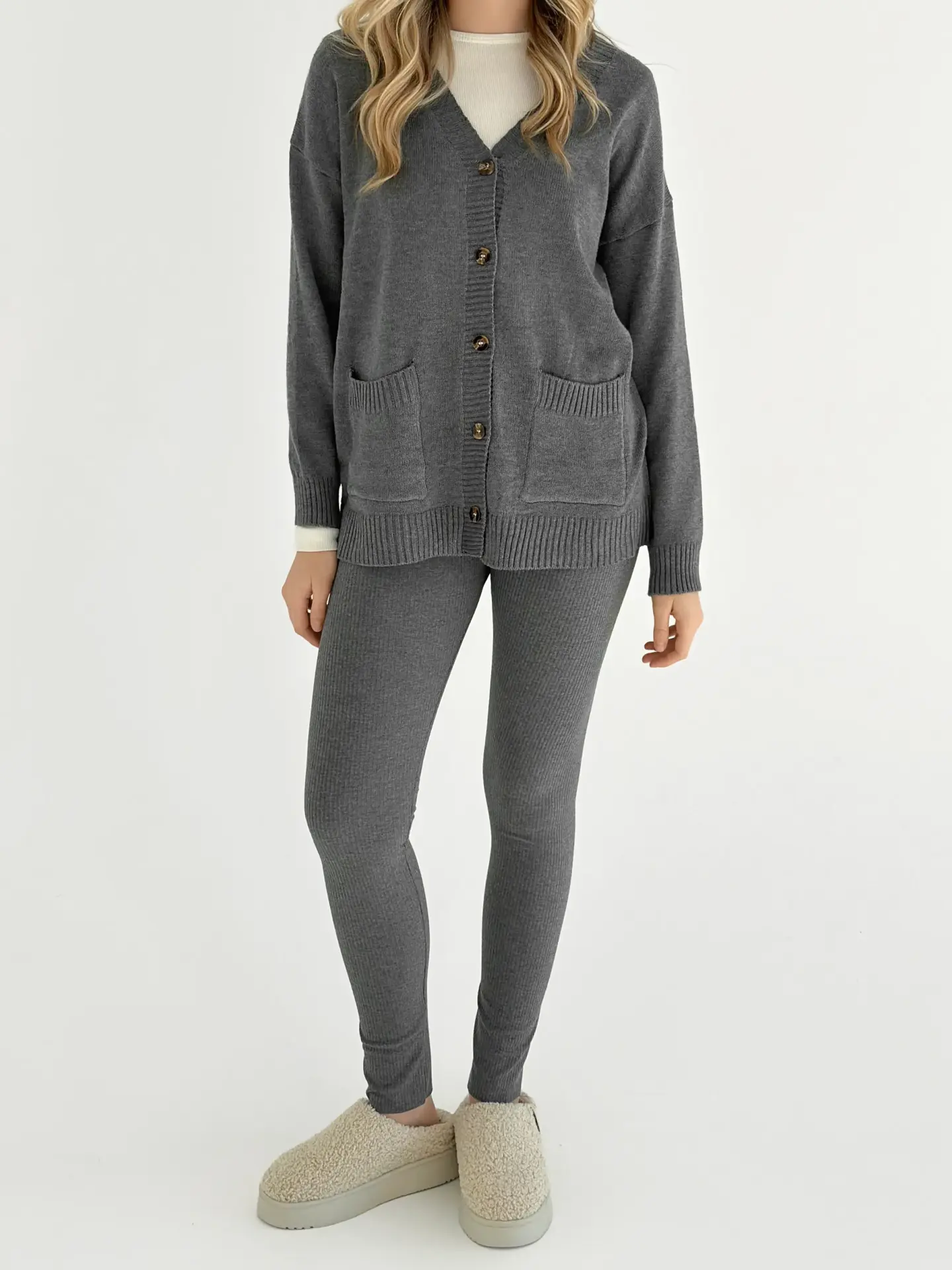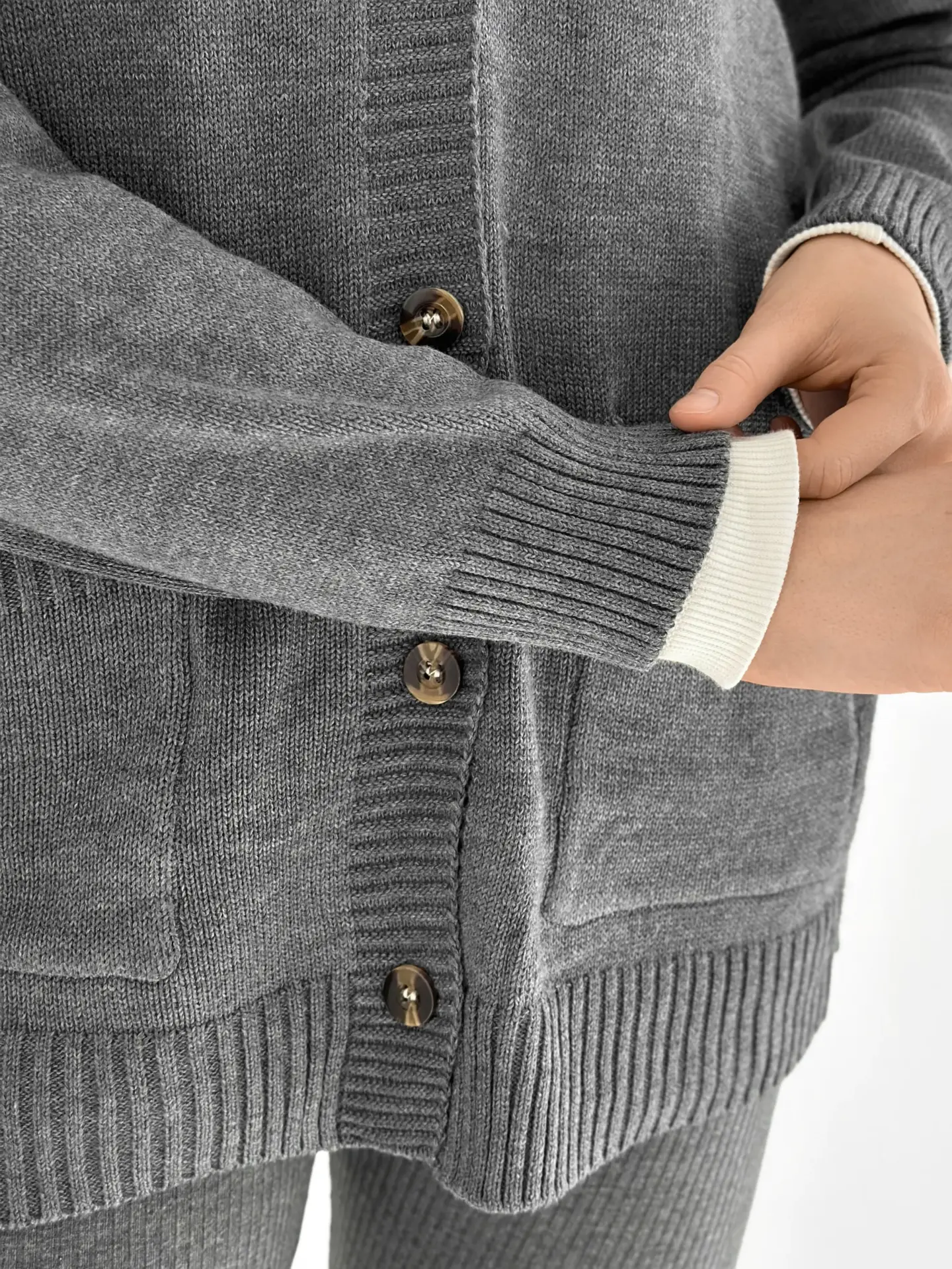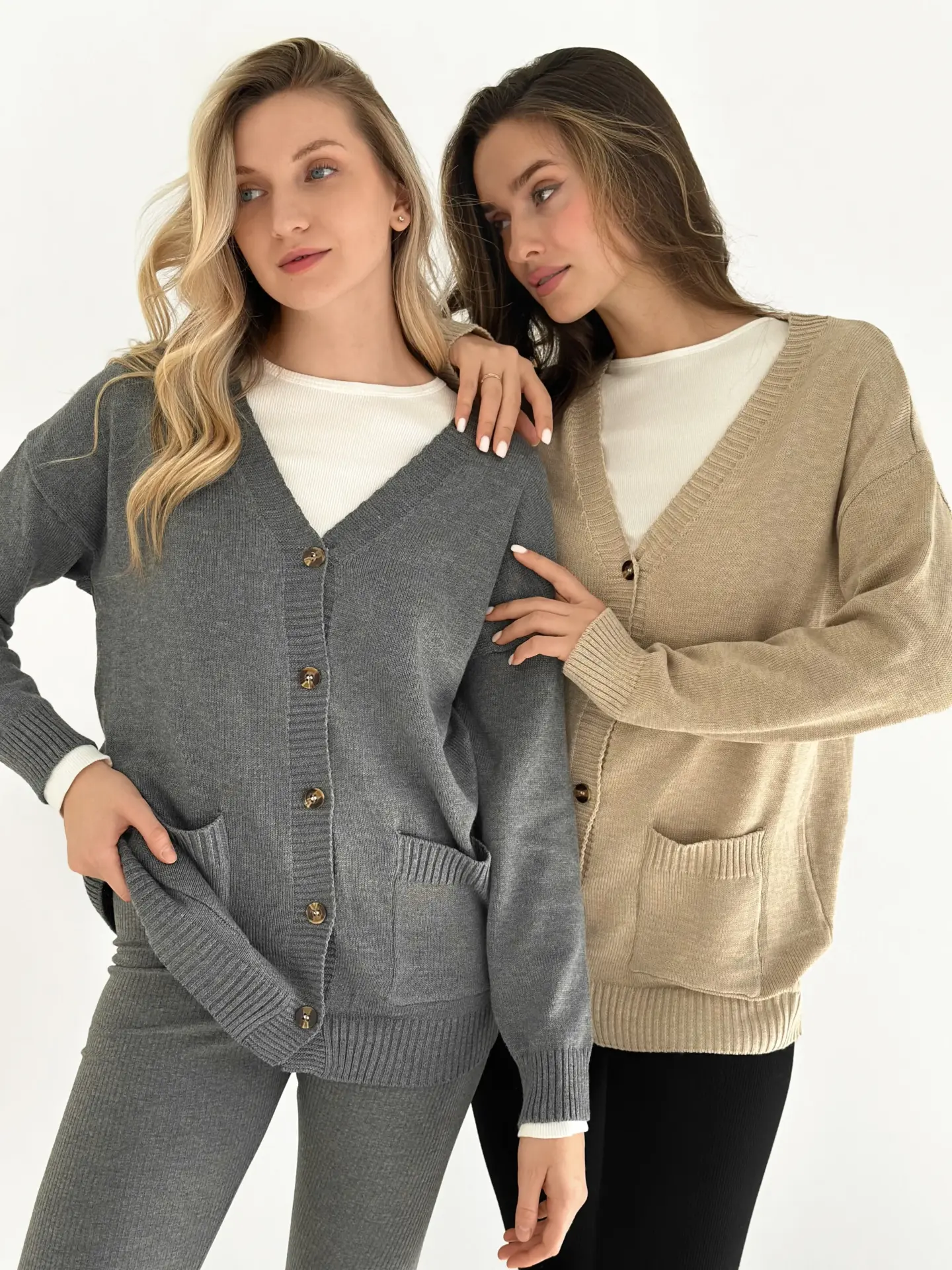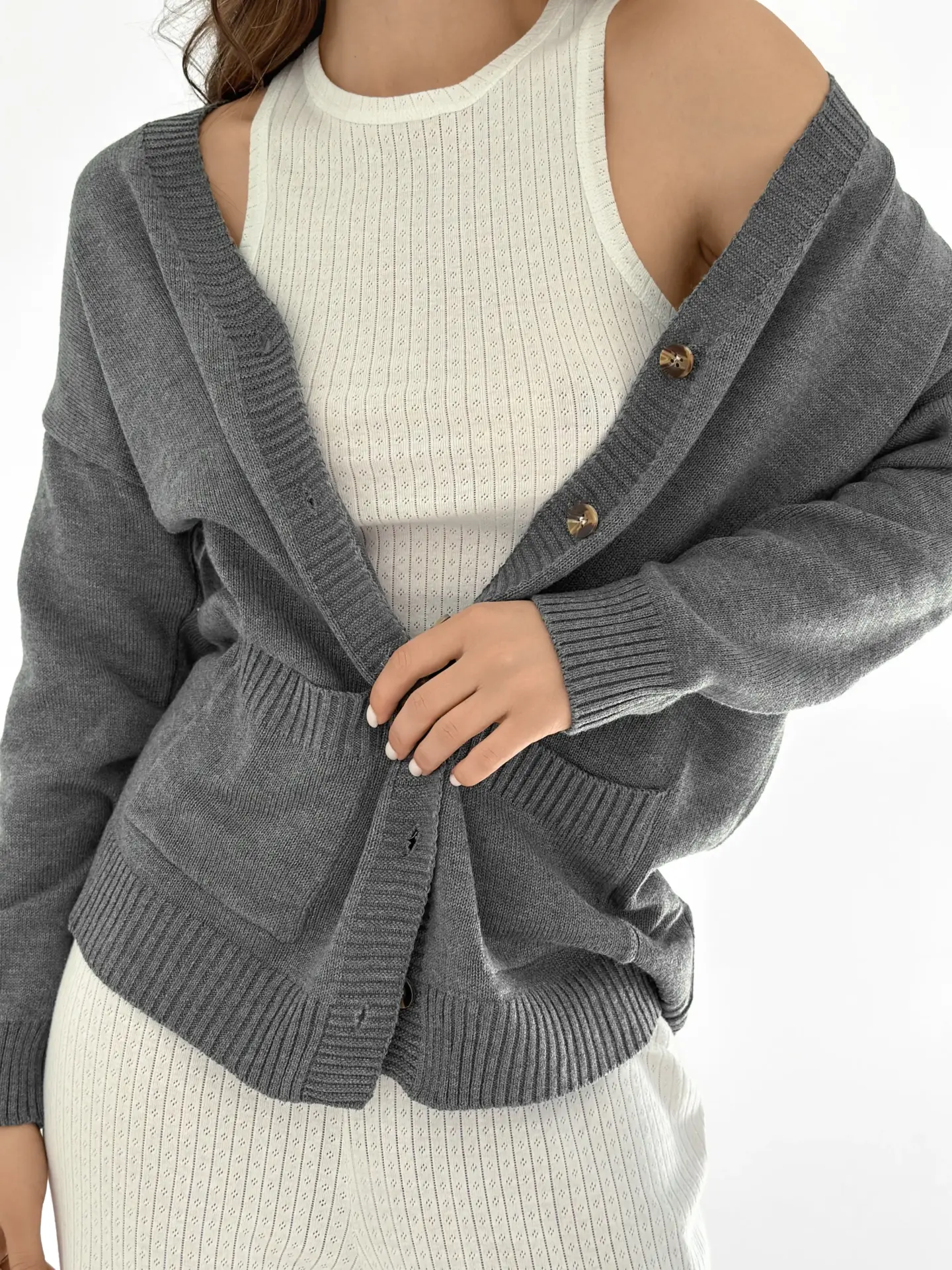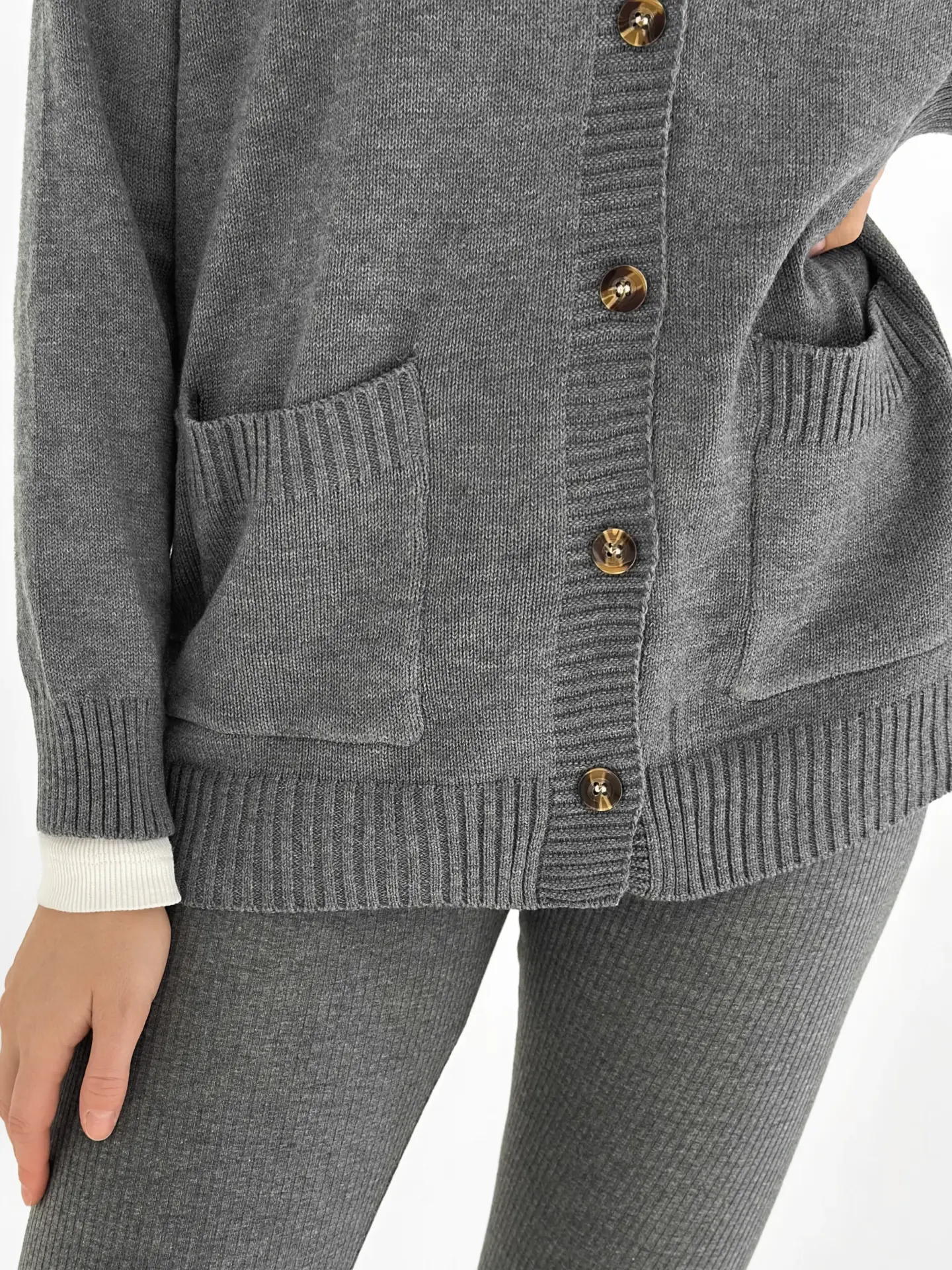 Кардиган в’язаний подовжений на ґудзиках графіт