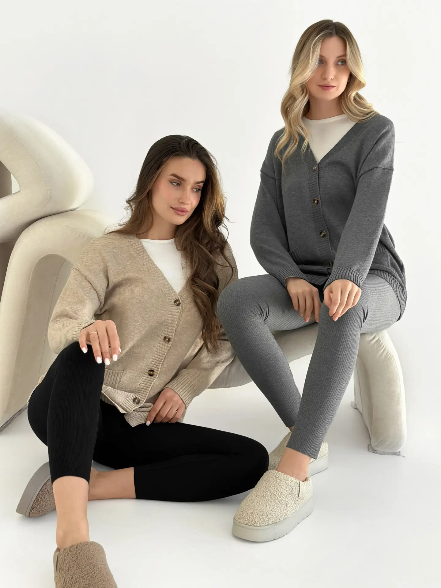 Подовжений в’язаний кардиган на ґудзиках створений для тепла та щоденного комфорту. М’яка пряжа приємно огортає, а лаконічний силует робить модель універсальною для будь-яких образів. Ідеальний вибір для прохолодних днів, прогулянок і затишних домашніх моментів.