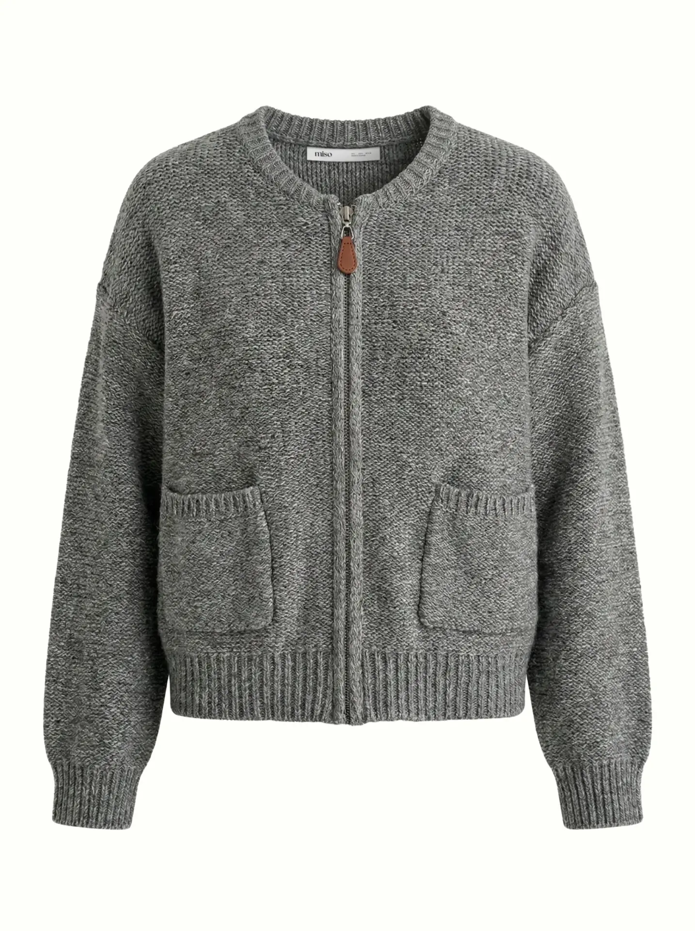 Кардиган на блискавці сірого кольору — м’який, зручний і універсальний. Легко поєднується з будь-яким повсякденним образом, а застібка додає практичності. Ідеальний варіант для щодня.