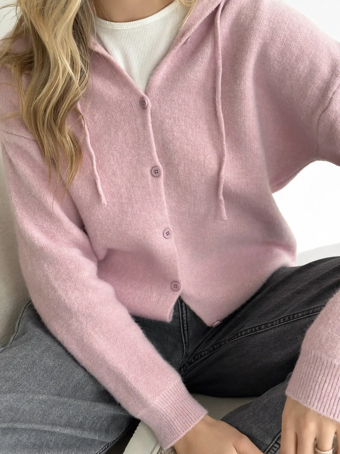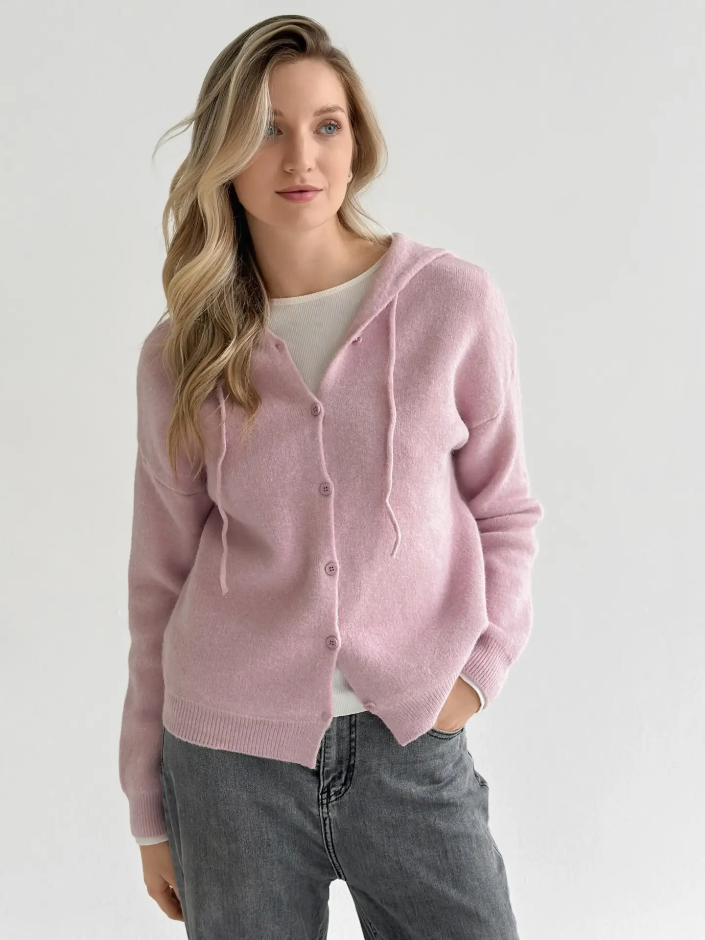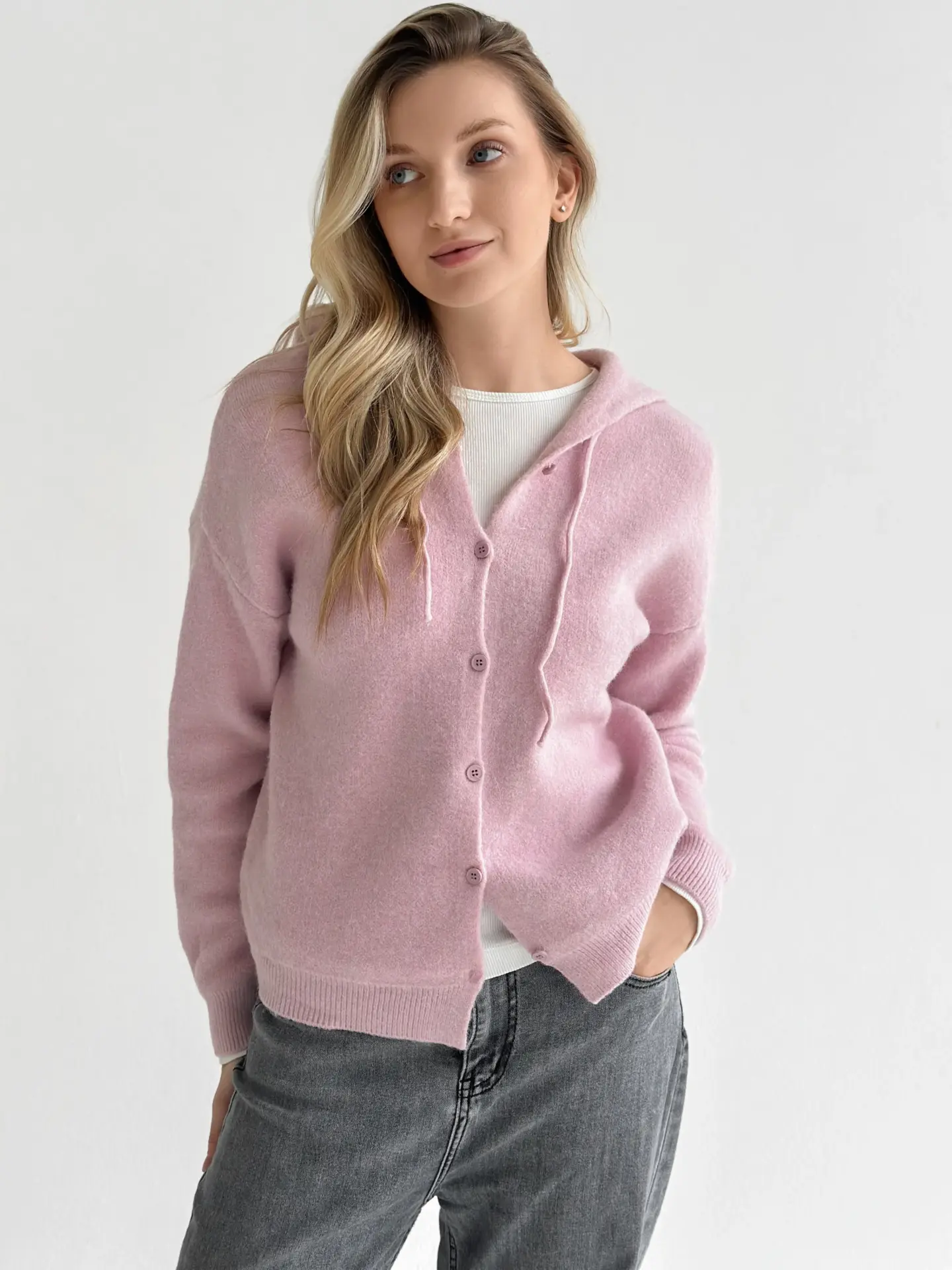 М’який, теплий та зручний кардиган, доповнений капюшоном і класичними ґудзиками. Приємний до тіла, гарно тримає форму та зігріває в прохолодну погоду. Легко поєднується з базовими речами й додає образу сучасної затишності.