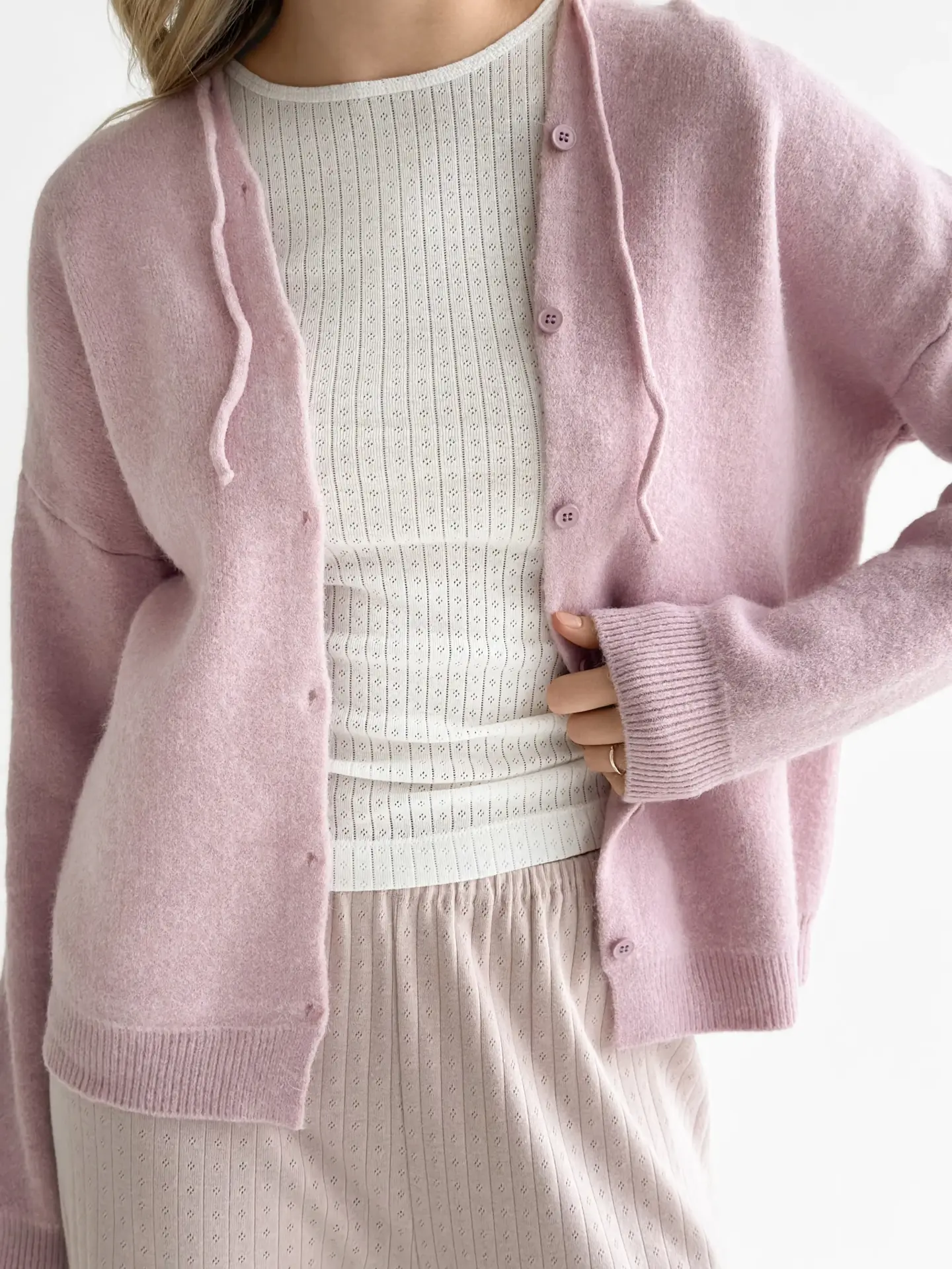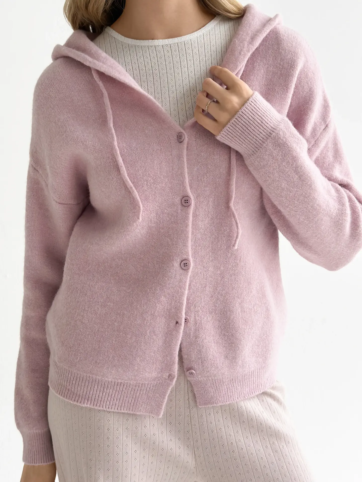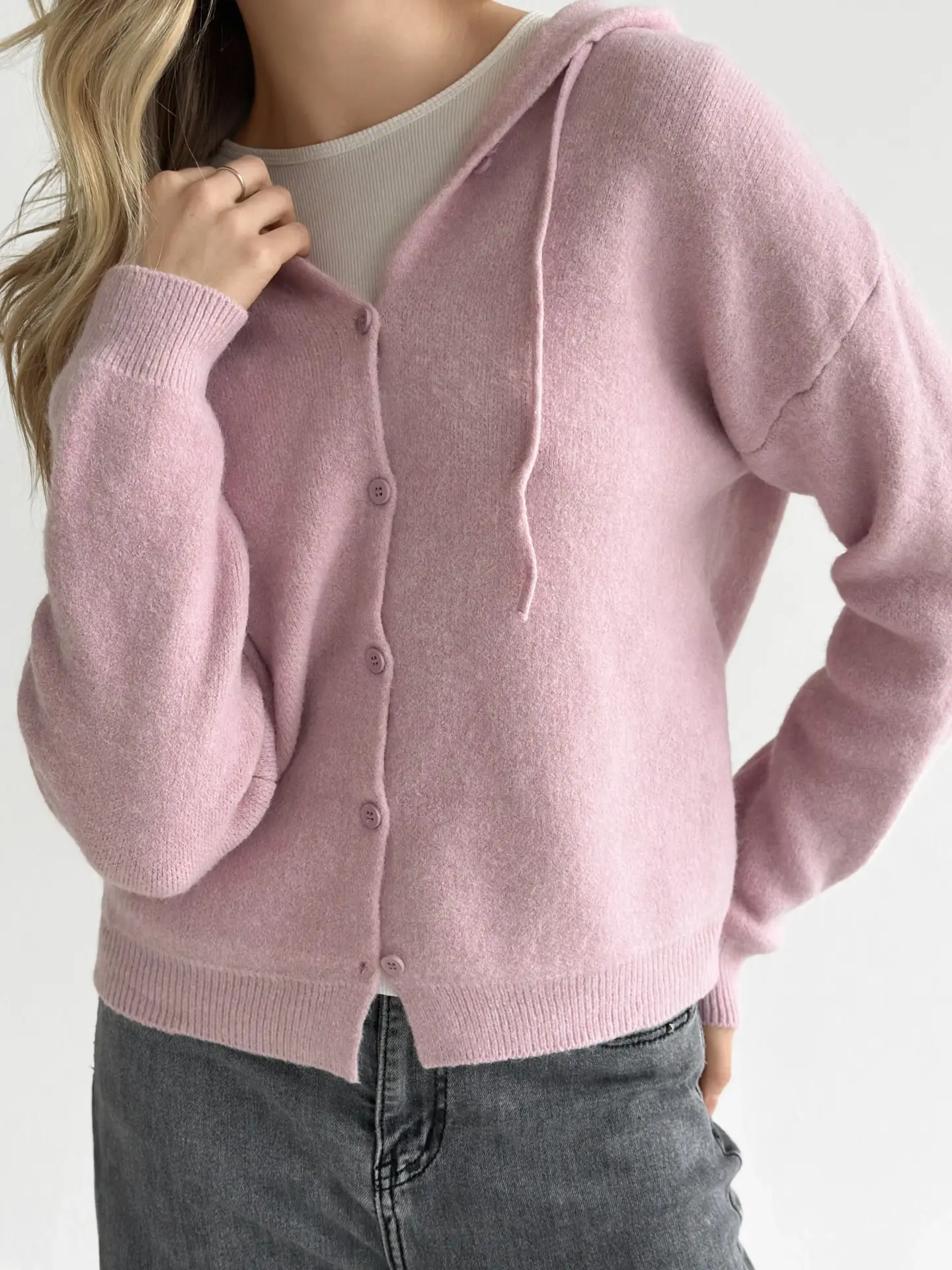 М’який, теплий та зручний кардиган, доповнений капюшоном і класичними ґудзиками. Приємний до тіла, гарно тримає форму та зігріває в прохолодну погоду. Легко поєднується з базовими речами й додає образу сучасної затишності.