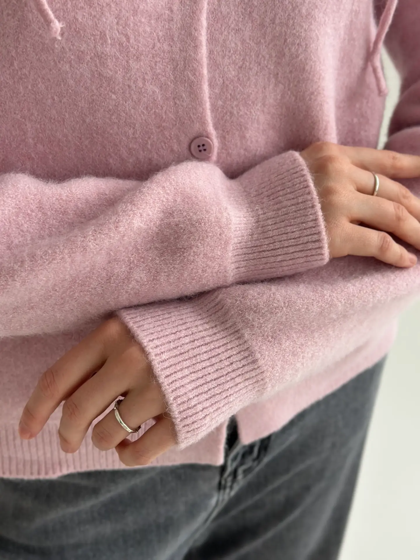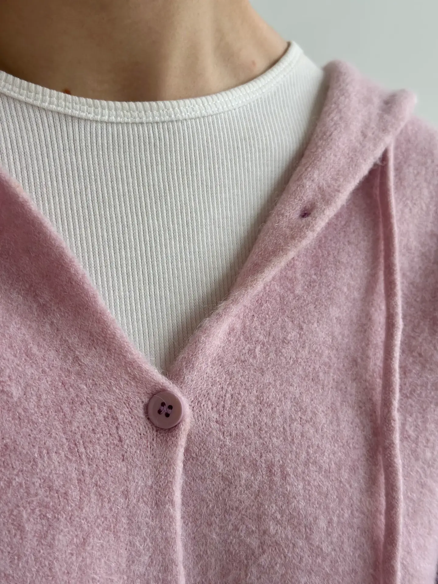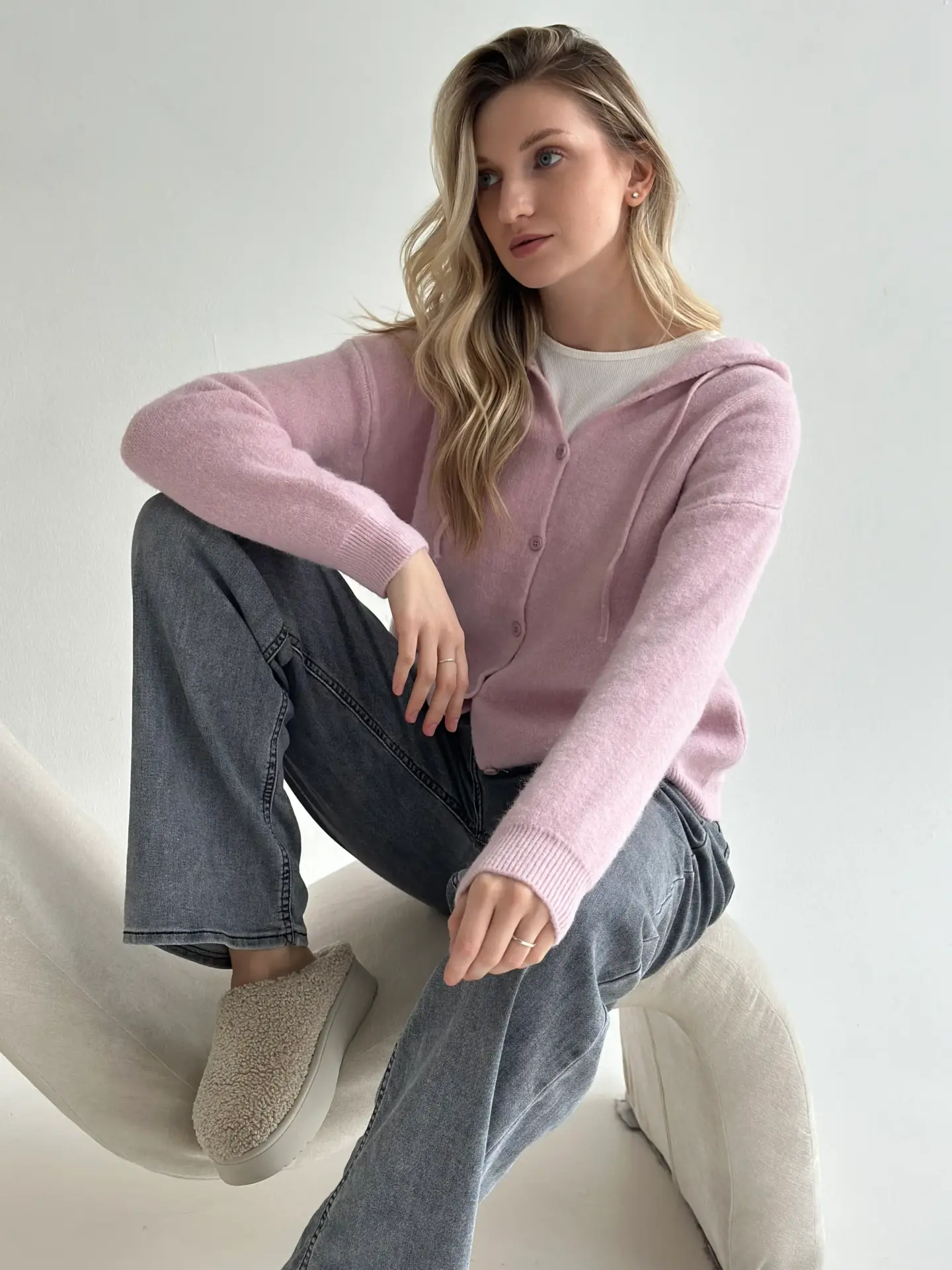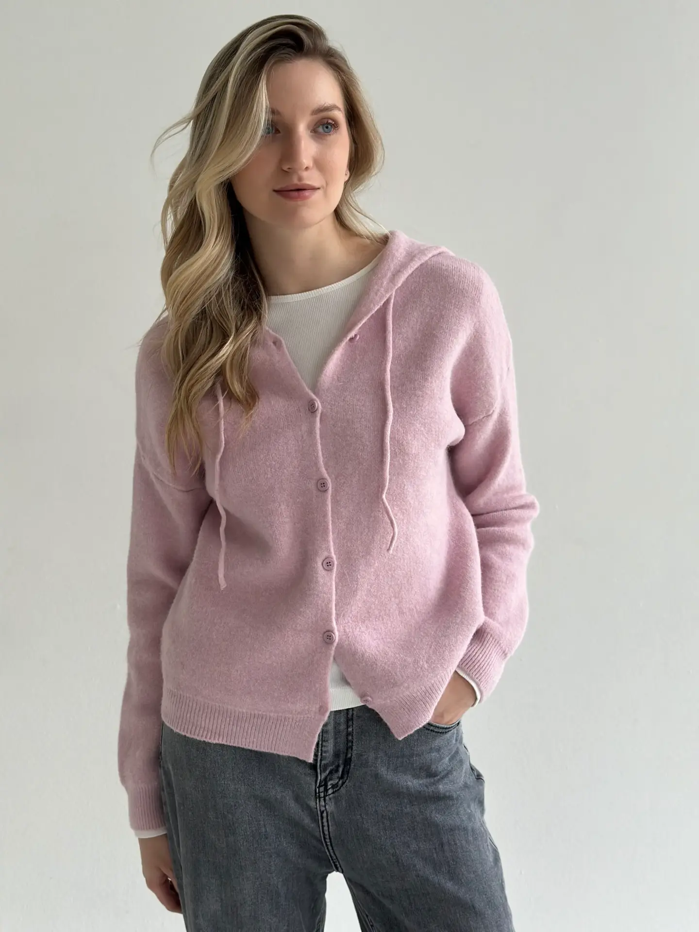 Кардиган вовняний з капюшоном на ґудзиках рожевий