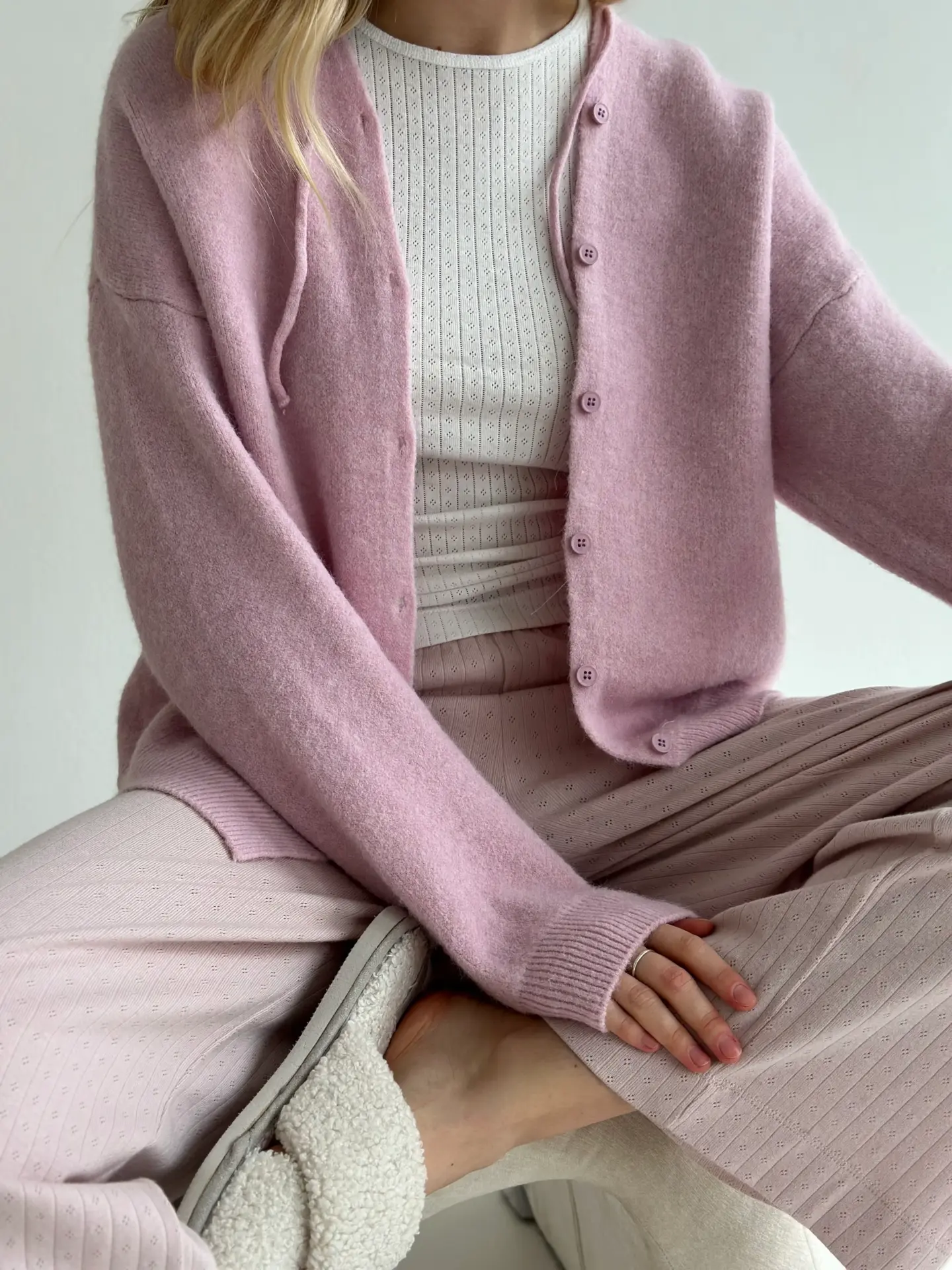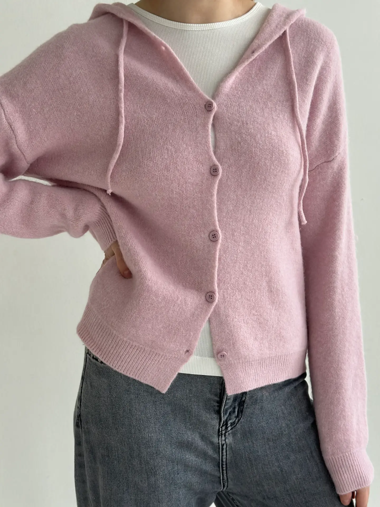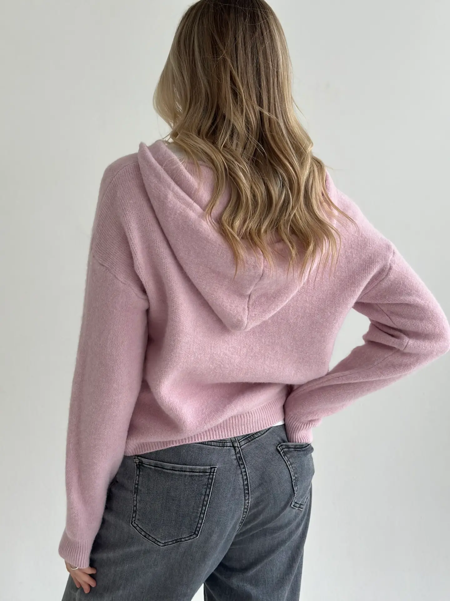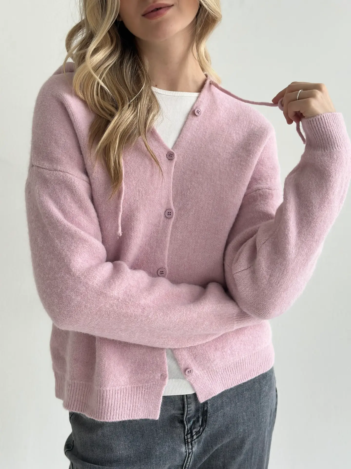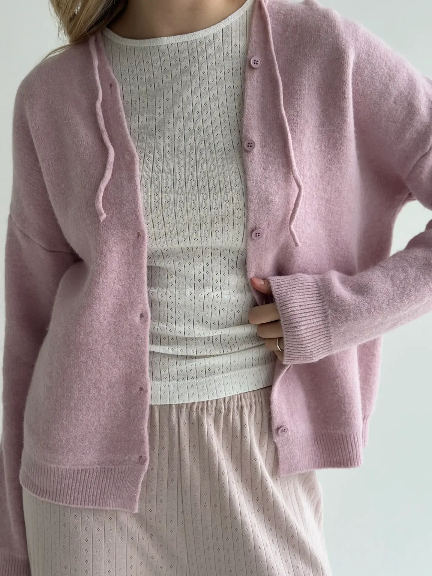 Кардиган вовняний з капюшоном на ґудзиках рожевий