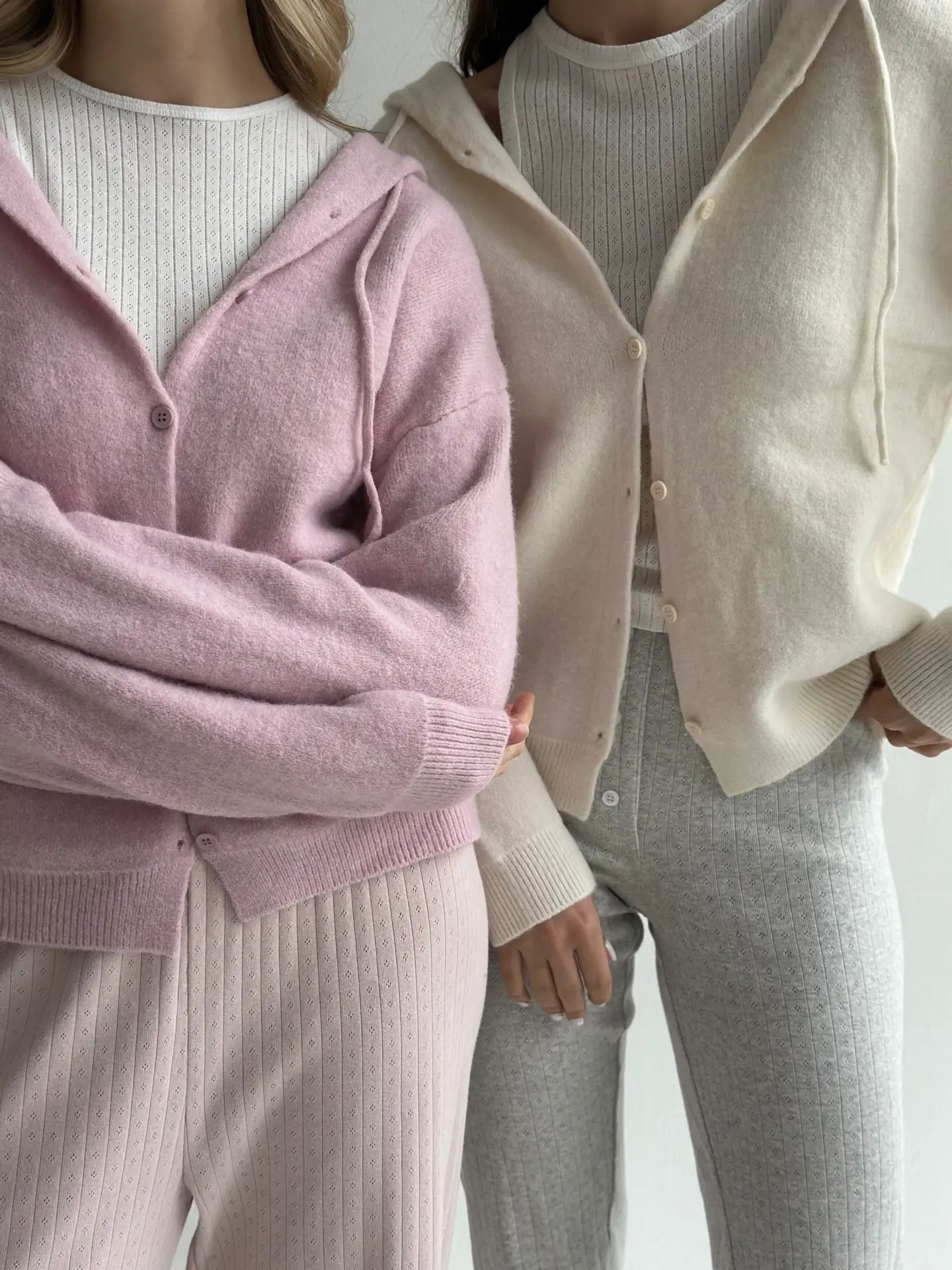М’який, теплий та зручний кардиган із вовни, доповнений капюшоном і класичними ґудзиками. Приємний до тіла, гарно тримає форму та зігріває в прохолодну погоду. Легко поєднується з базовими речами й додає образу сучасної затишності.