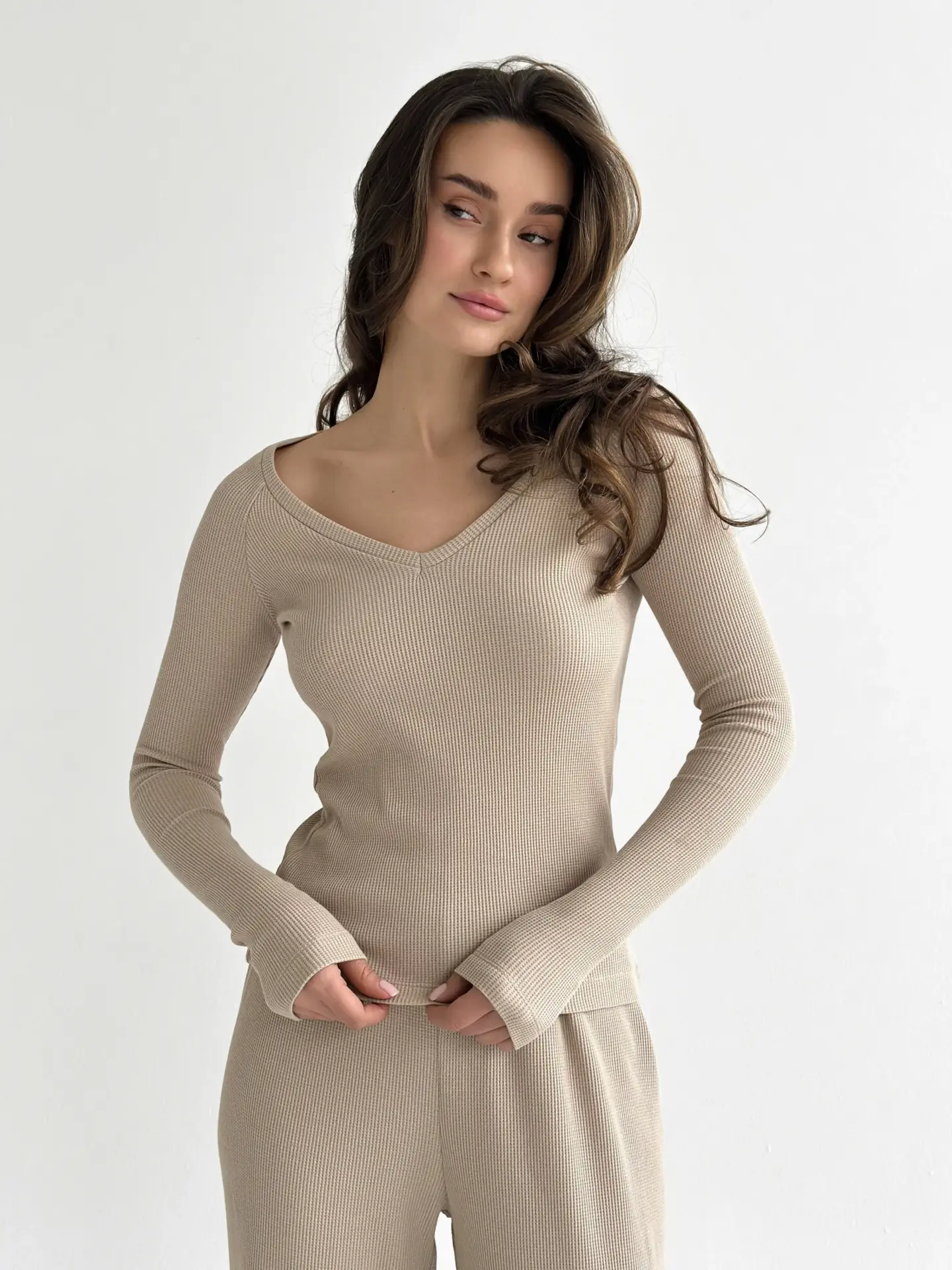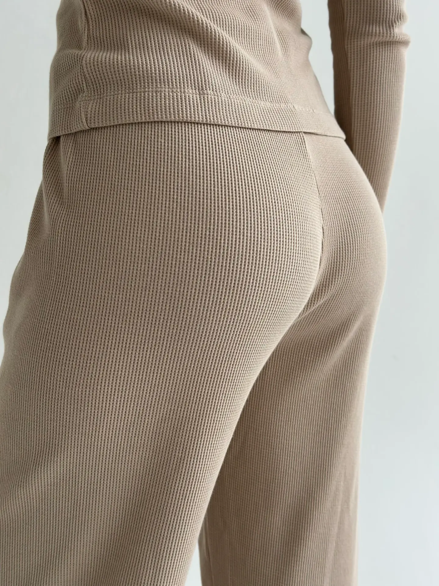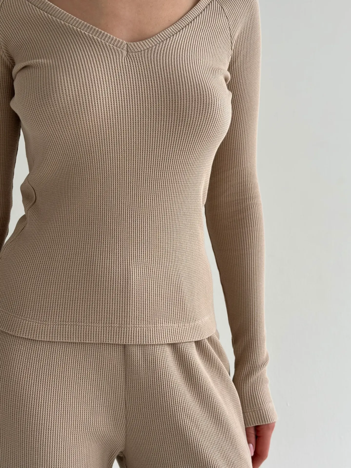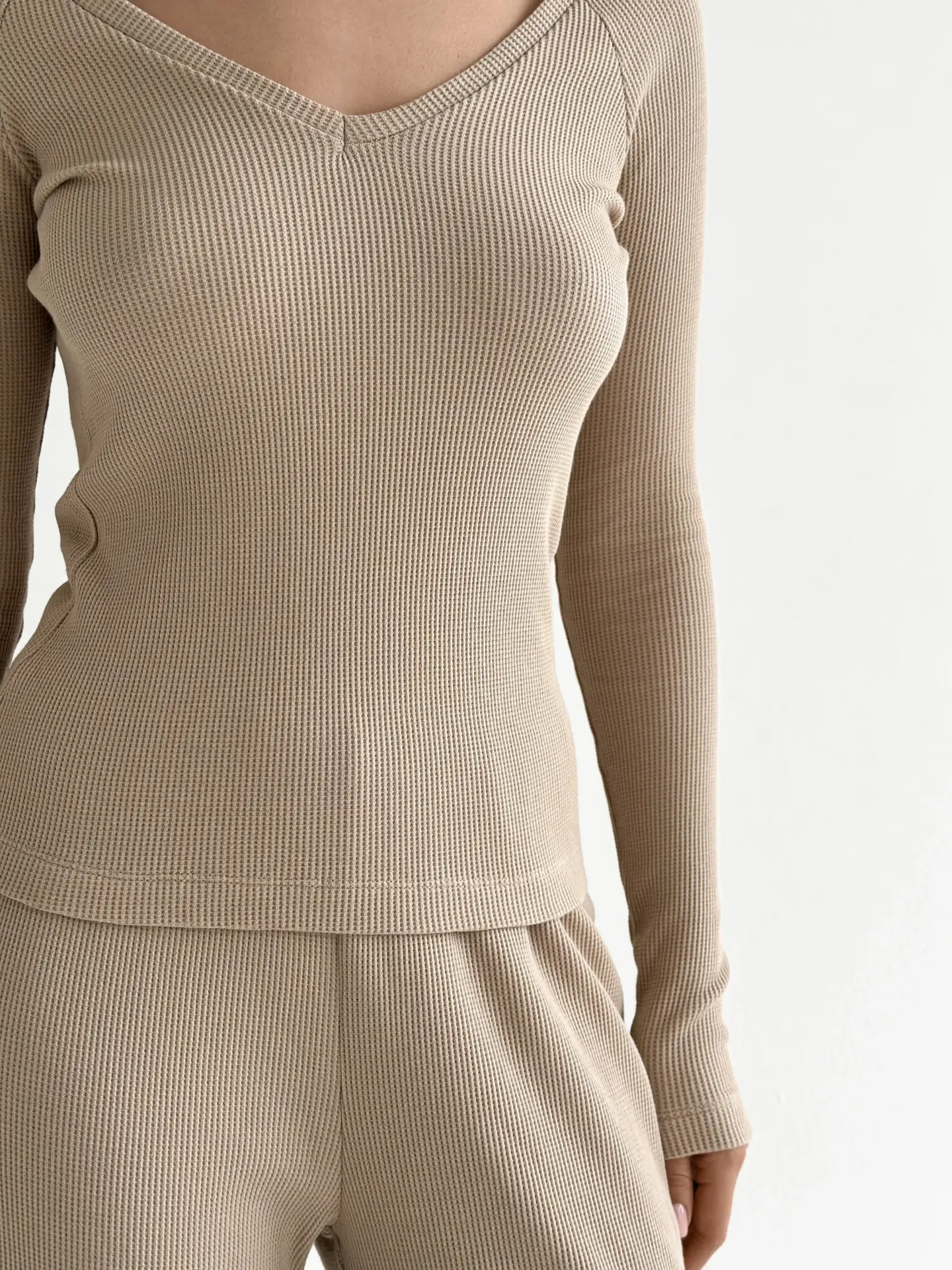 Комплект лонгслів реглан та штани трикотаж вафельний бежевий