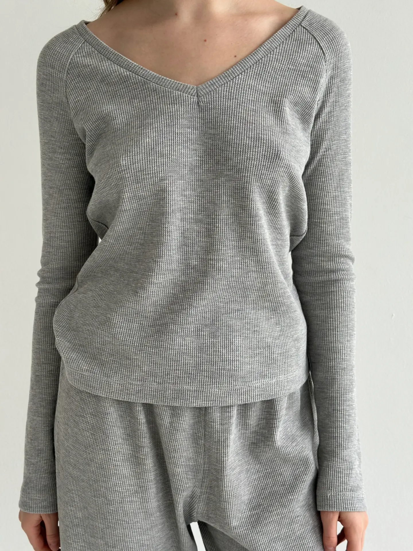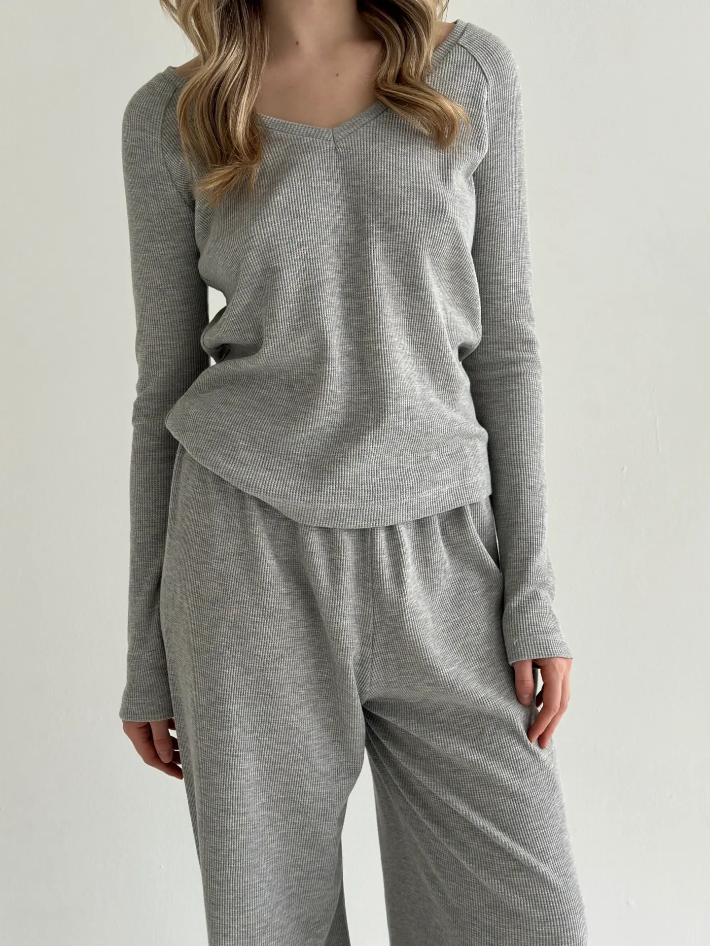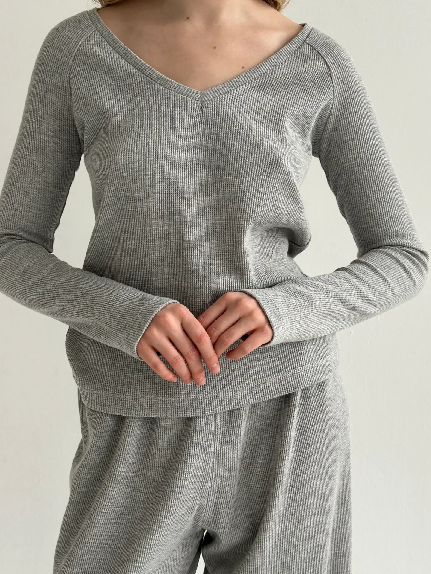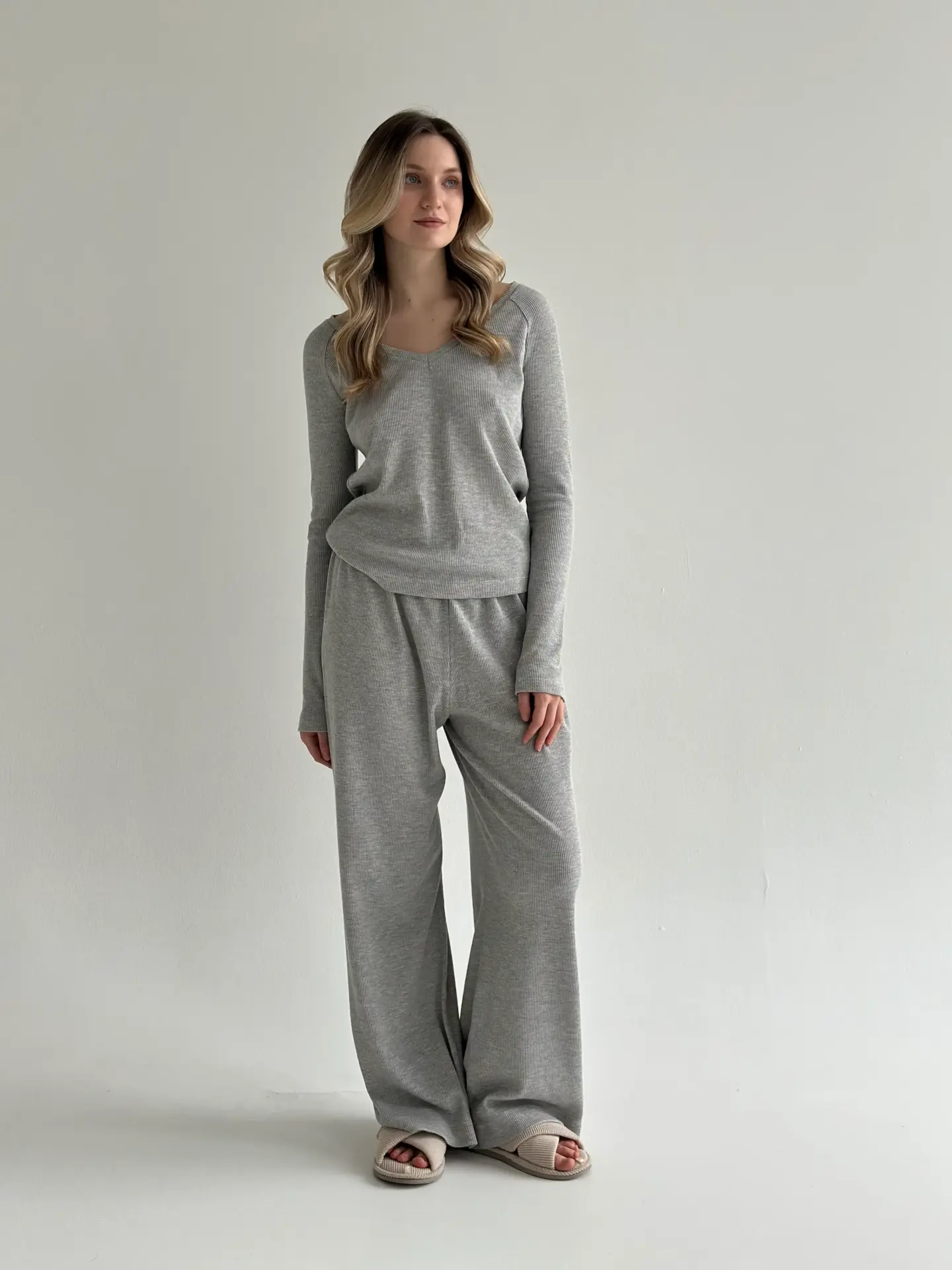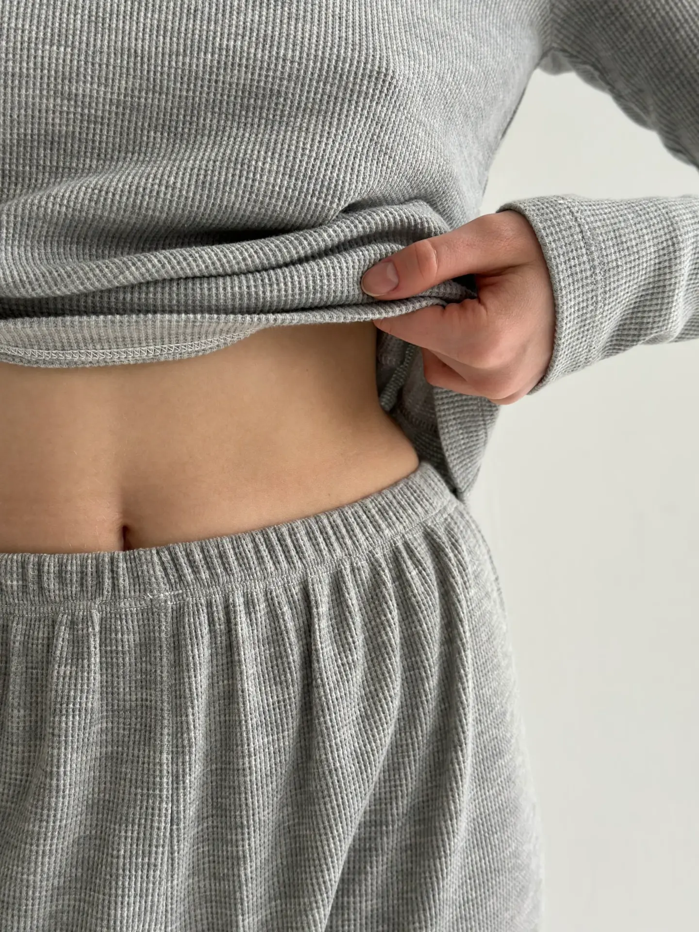 Комплект лонгслів реглан та штани трикотаж вафельний сірий