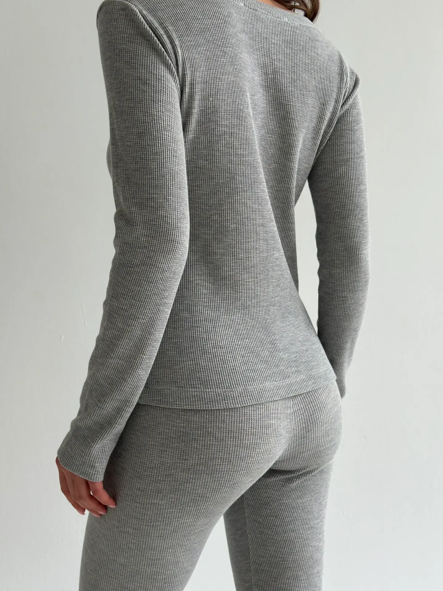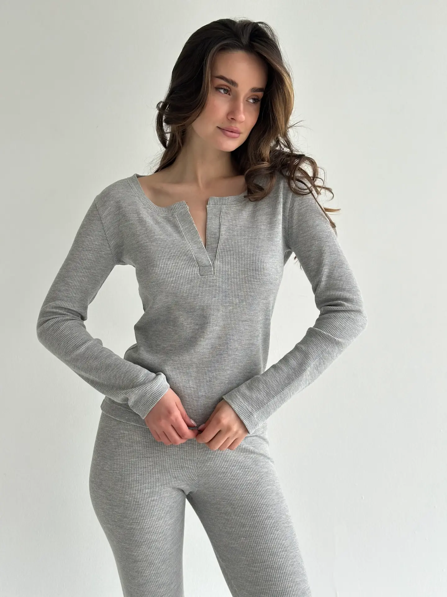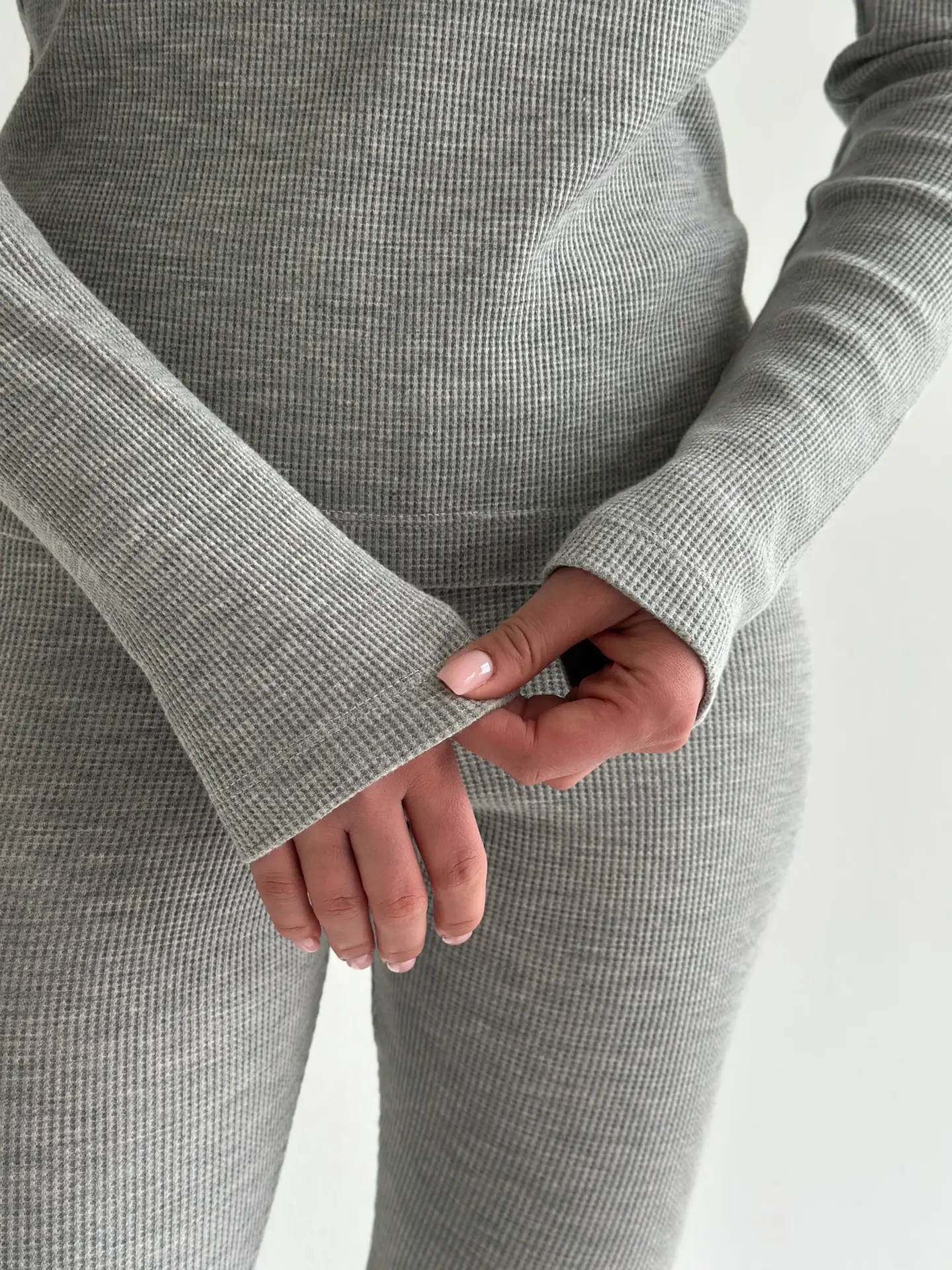 Комплект лонгслів зі стійкою та лосини трикотаж вафельний сірий