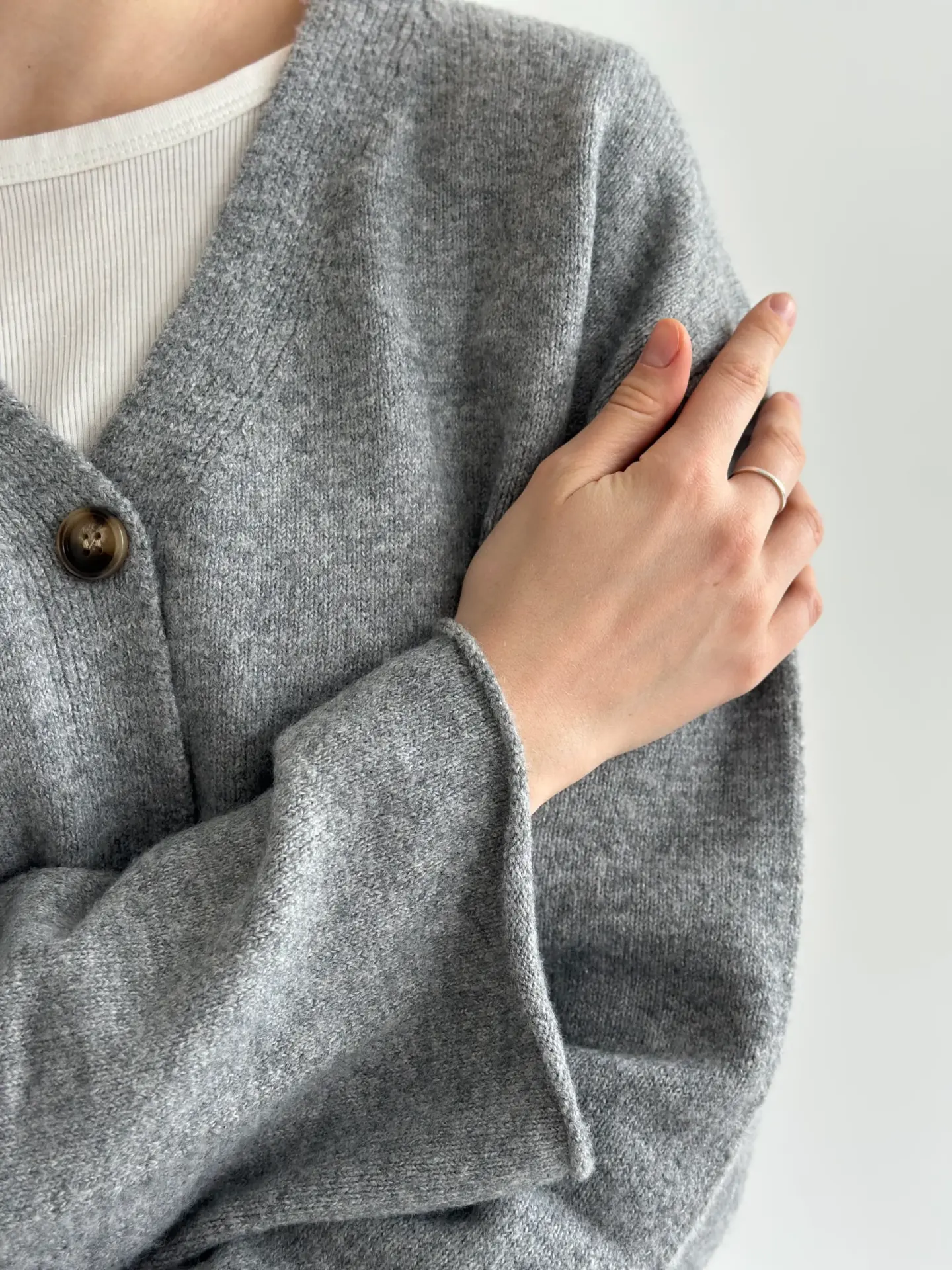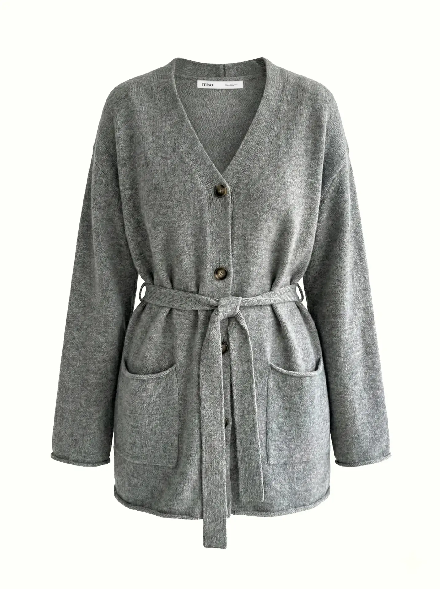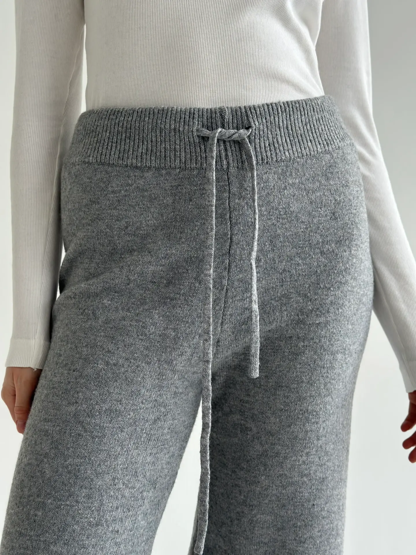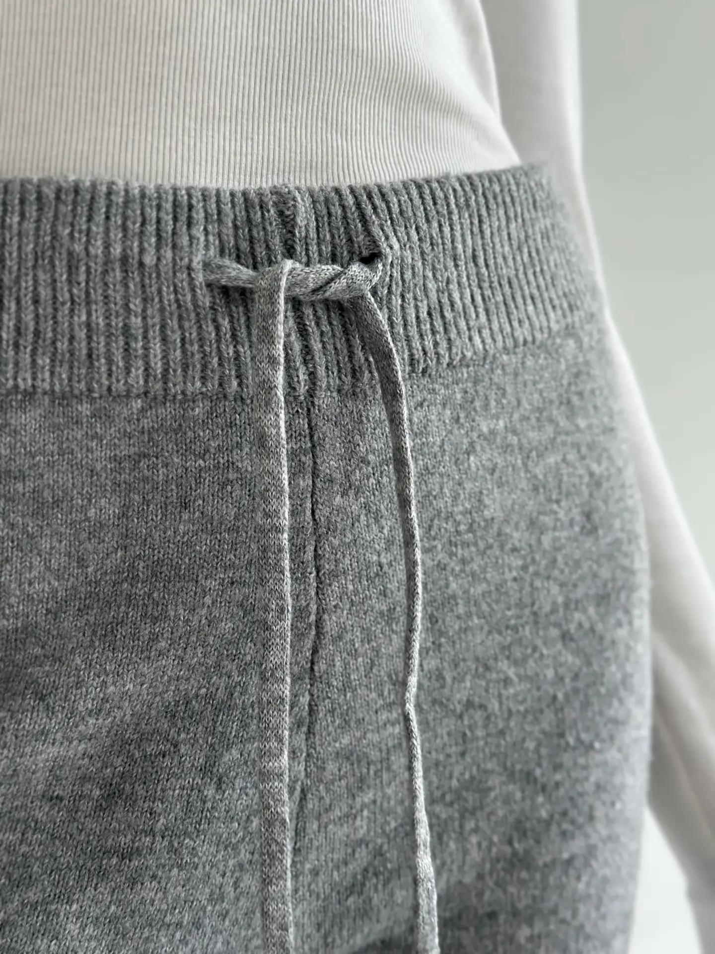 Комплект в’язаний кардиган з поясом та штани сірий, onesize