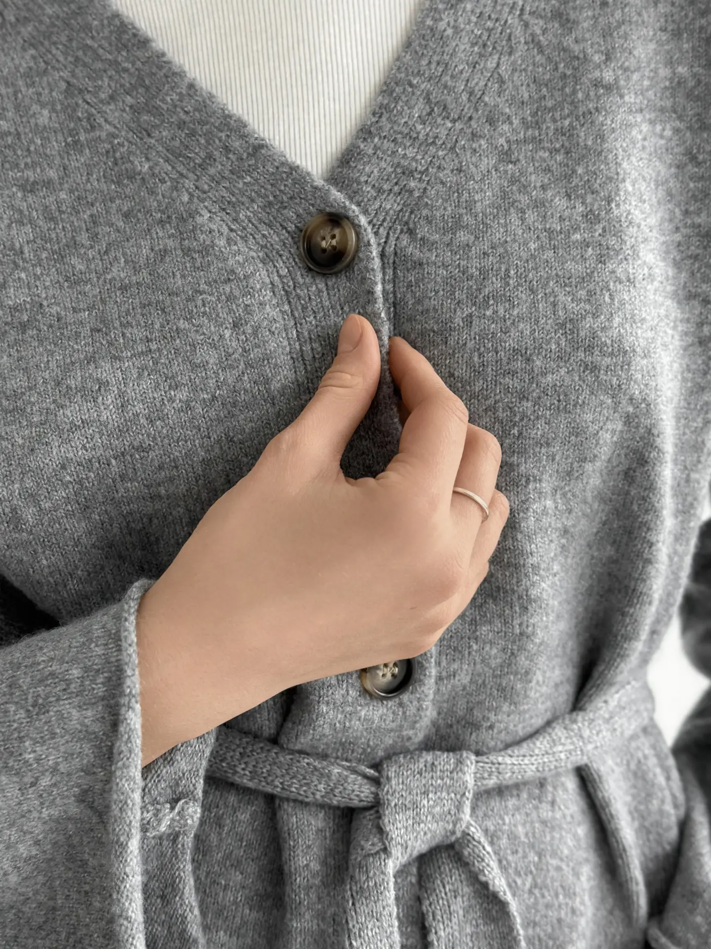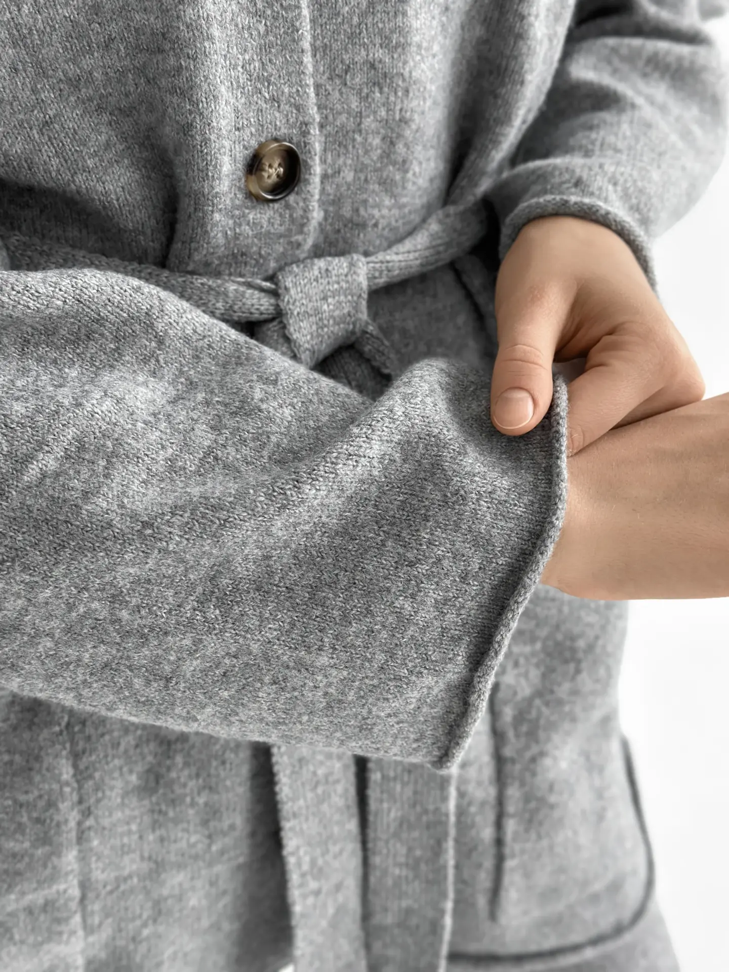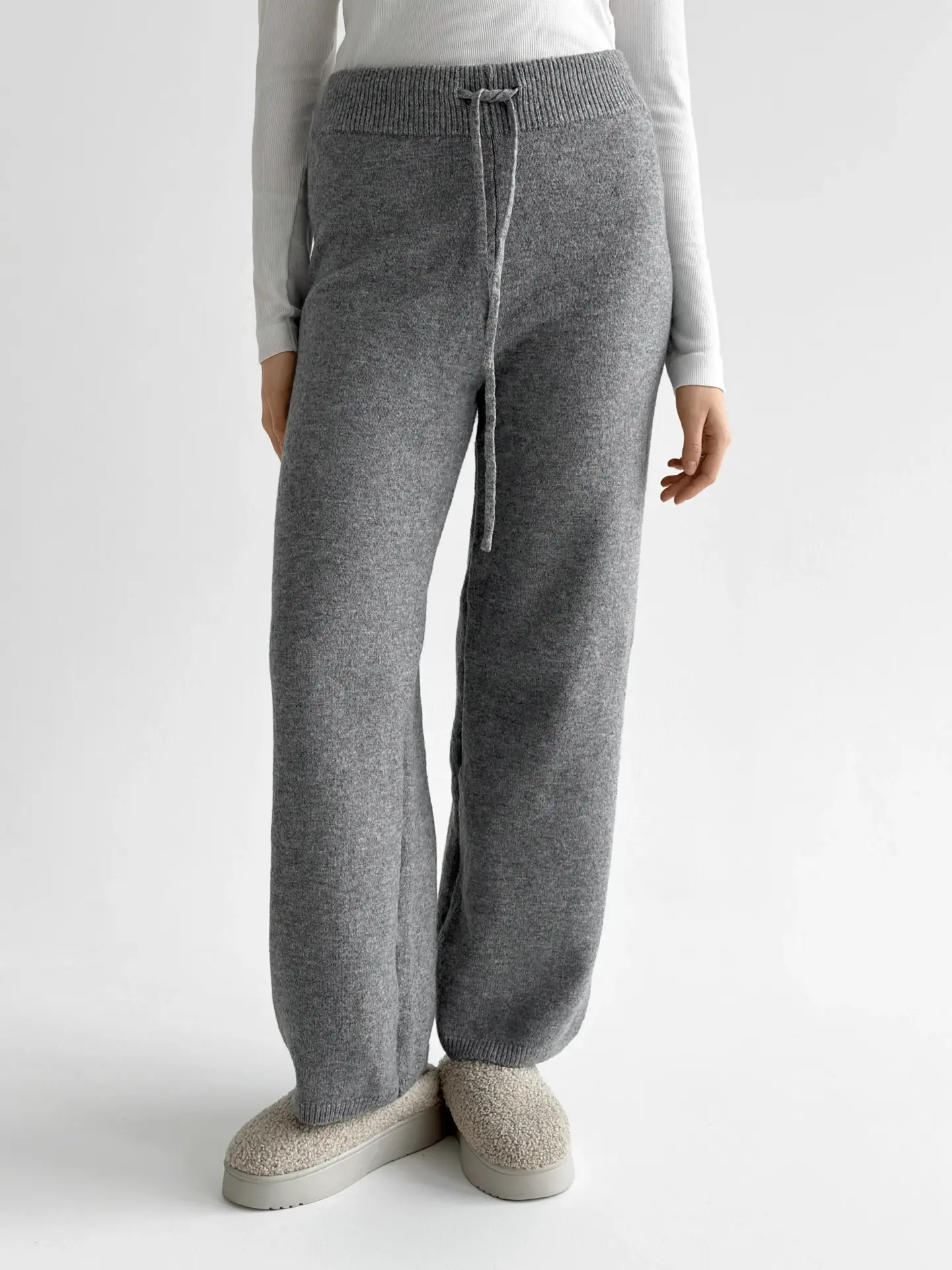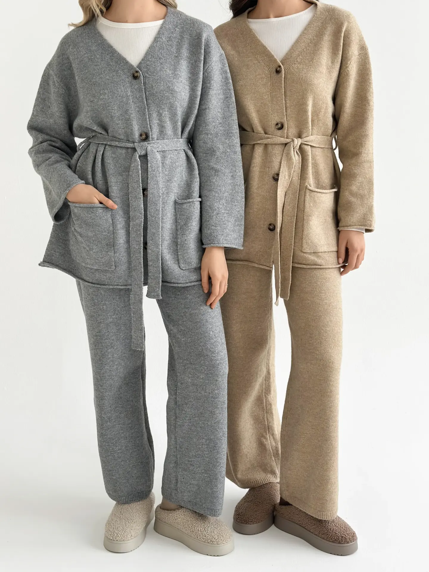 В’язаний комплект із кардигана з поясом та штанів виглядає стильно й невимушено. М’яка текстура приємна до тіла, а силует створює відчуття затишку без зайвої строгості. Чудовий варіант для спокійних повсякденних образів.