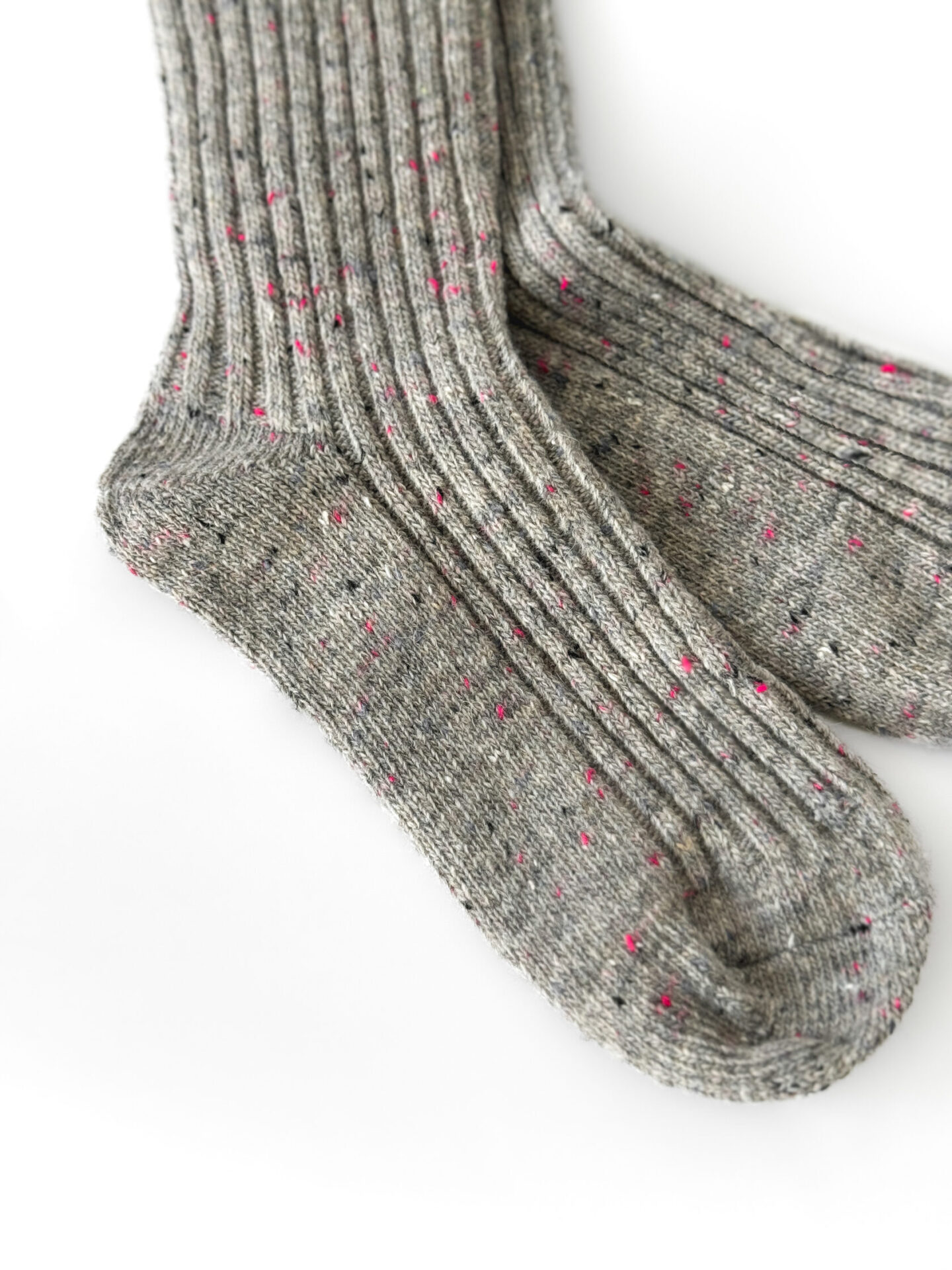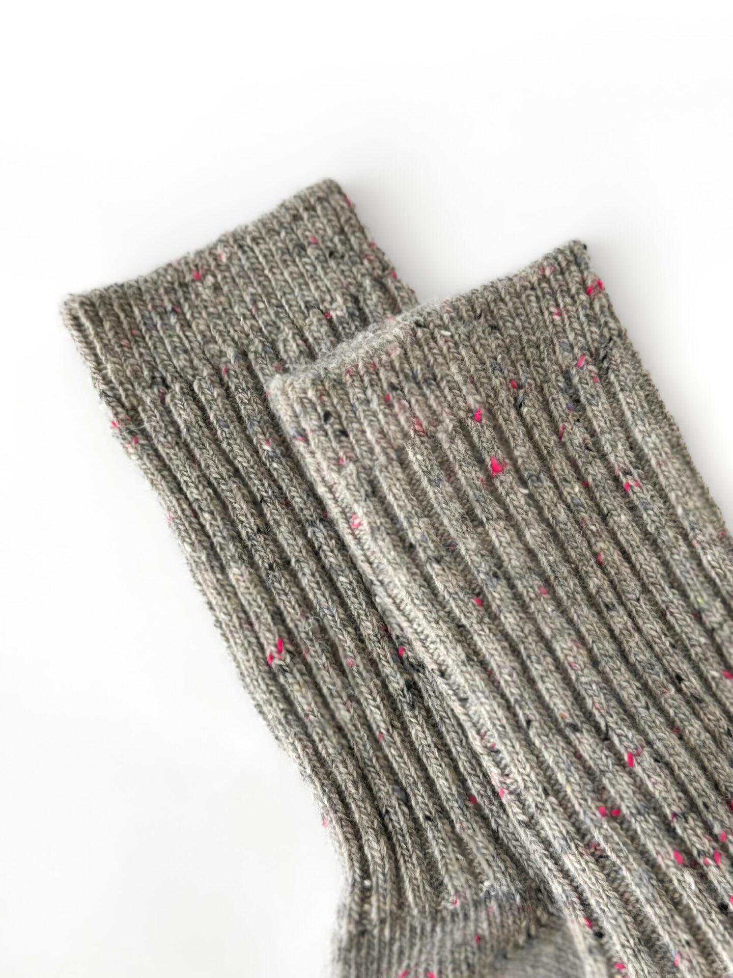 Стандартні вовняні шкарпетки в меланжевому кольорі дарують тепло та комфорт у прохолодну погоду. М’який матеріал приємний до тіла й добре утримує тепло. Ідеальні для щоденного носіння та домашнього затишку.
