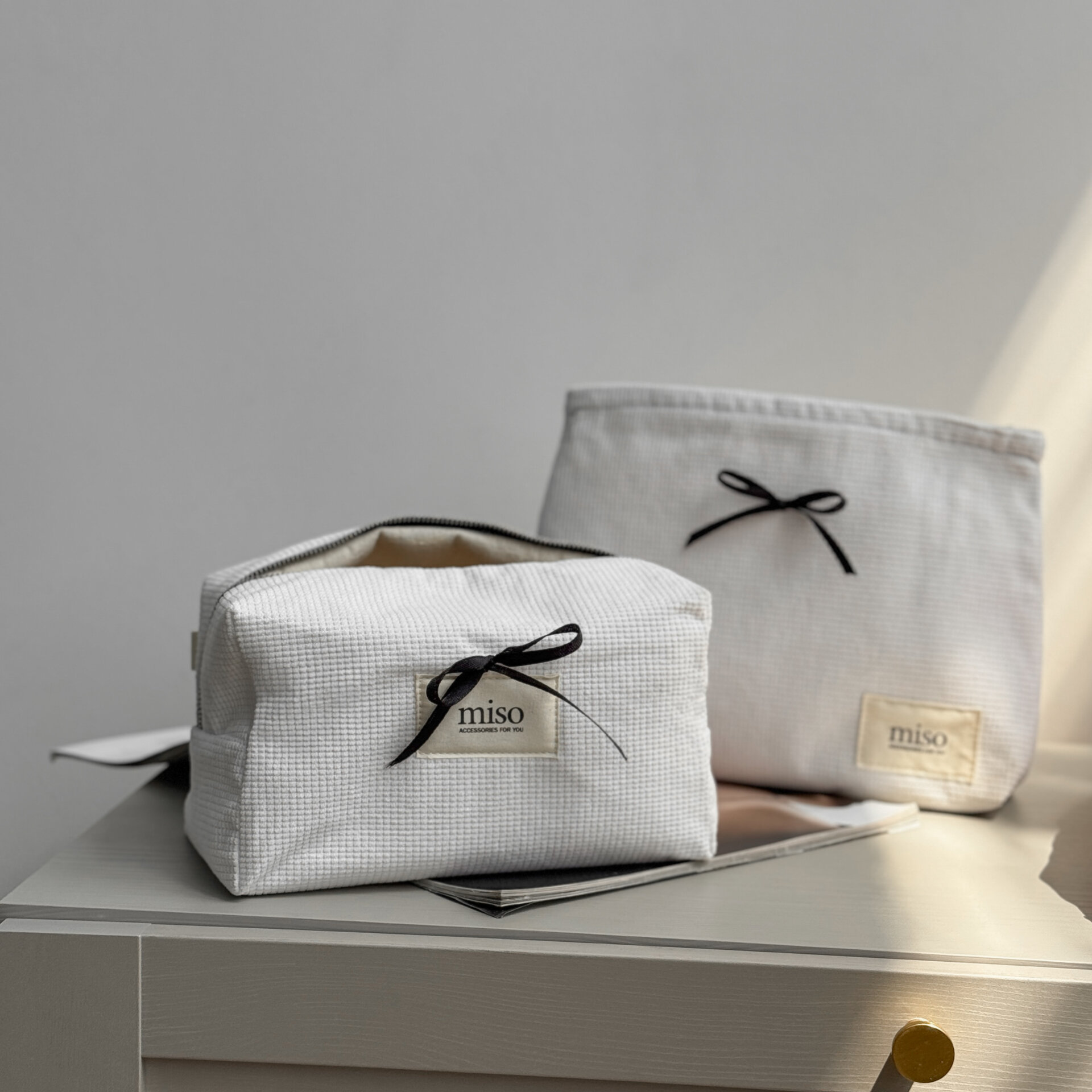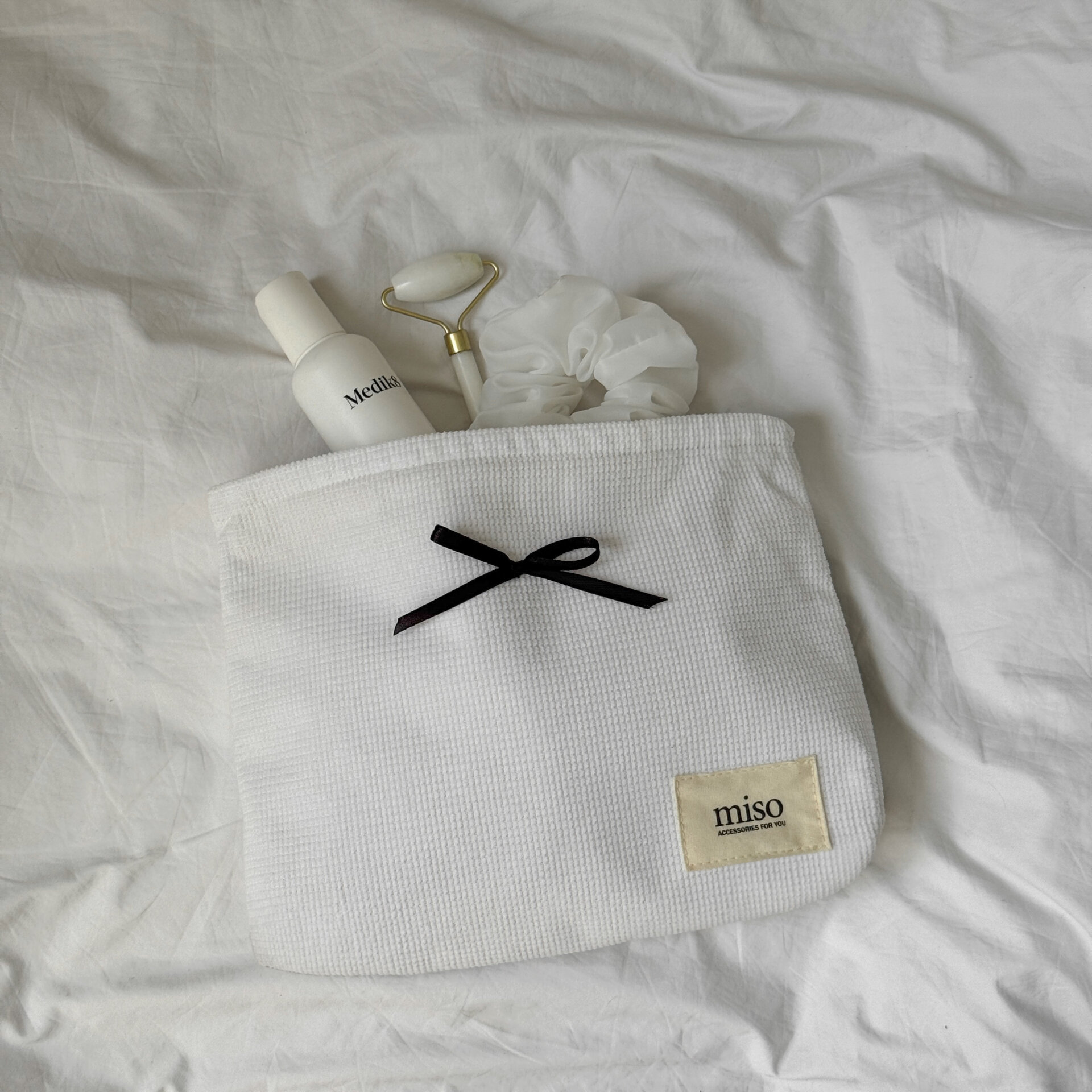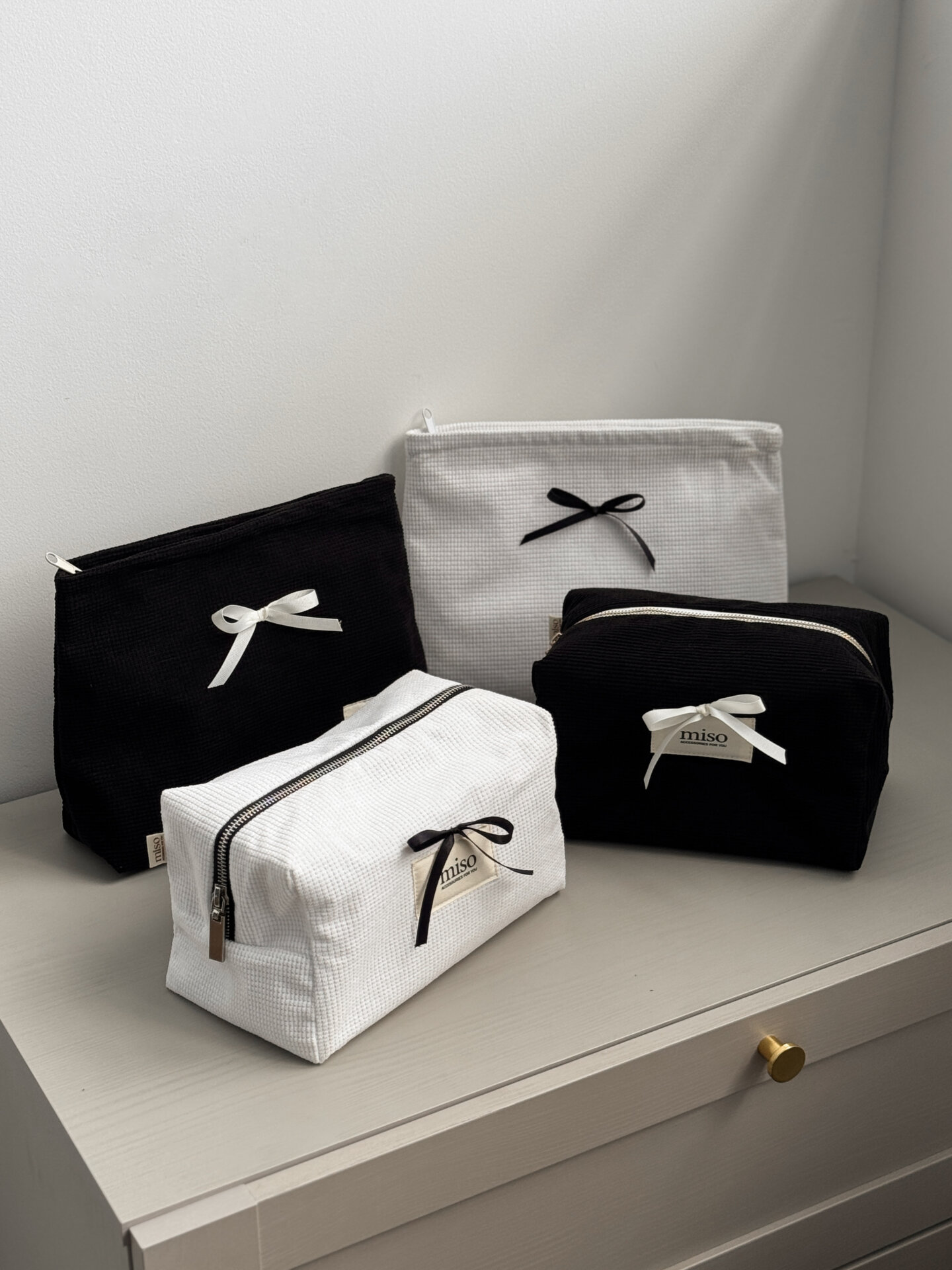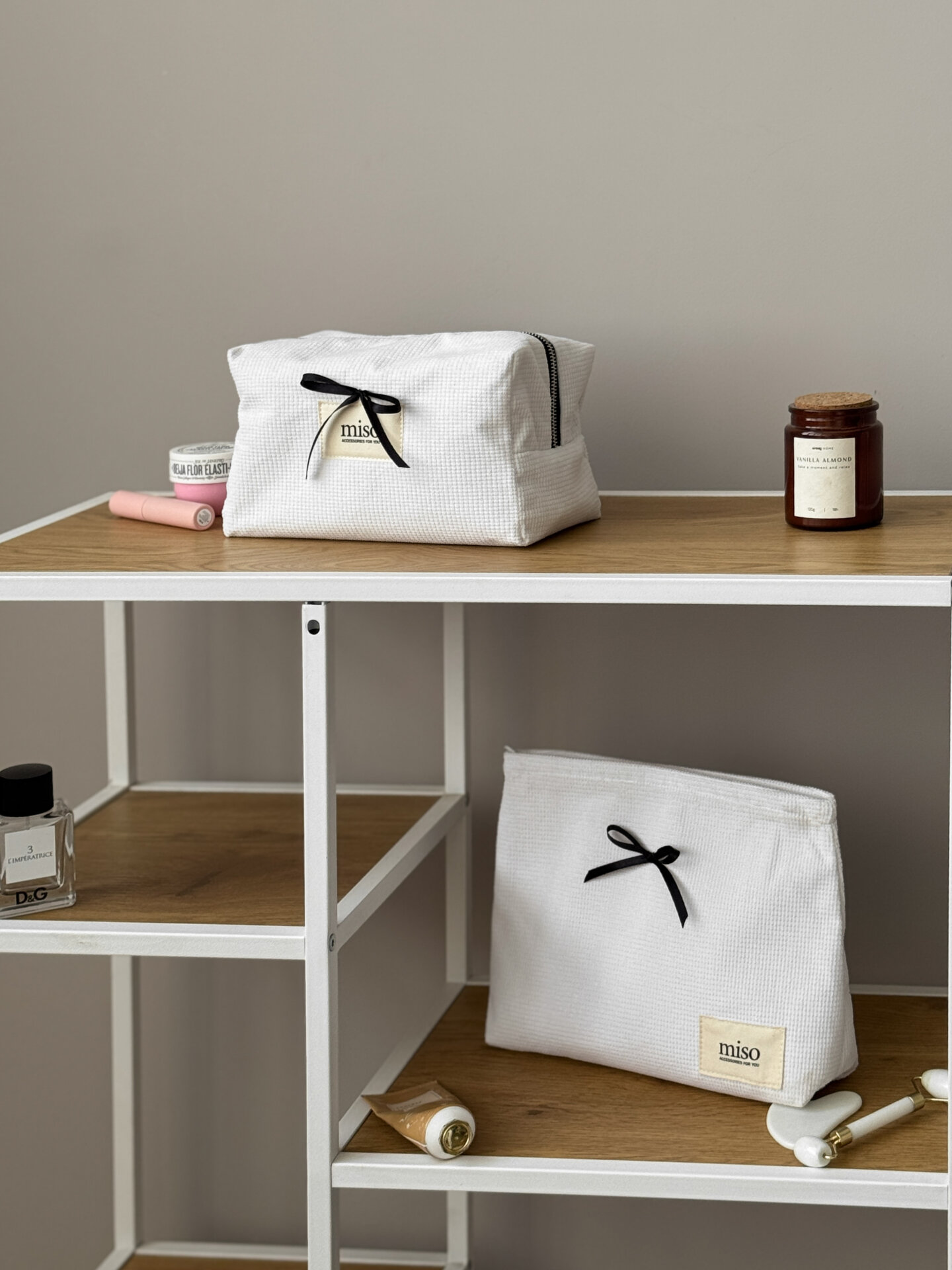 Косметичка біла середній трикутник вельвет декор чорний бантик