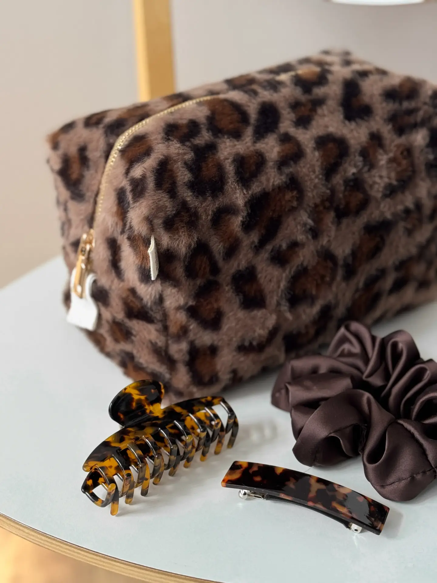 Косметичка хутро Лео коричнева середній квадрат - Twins