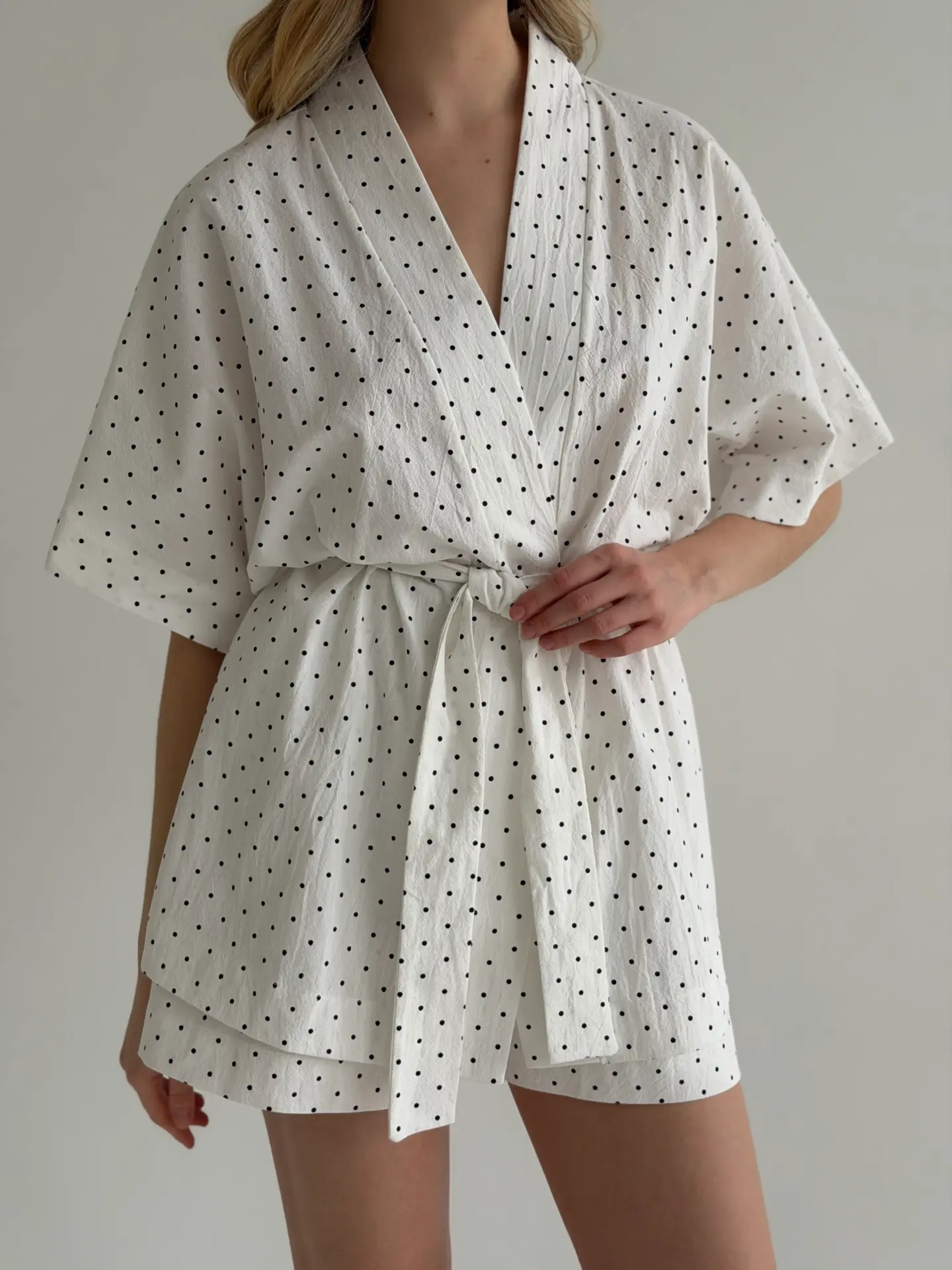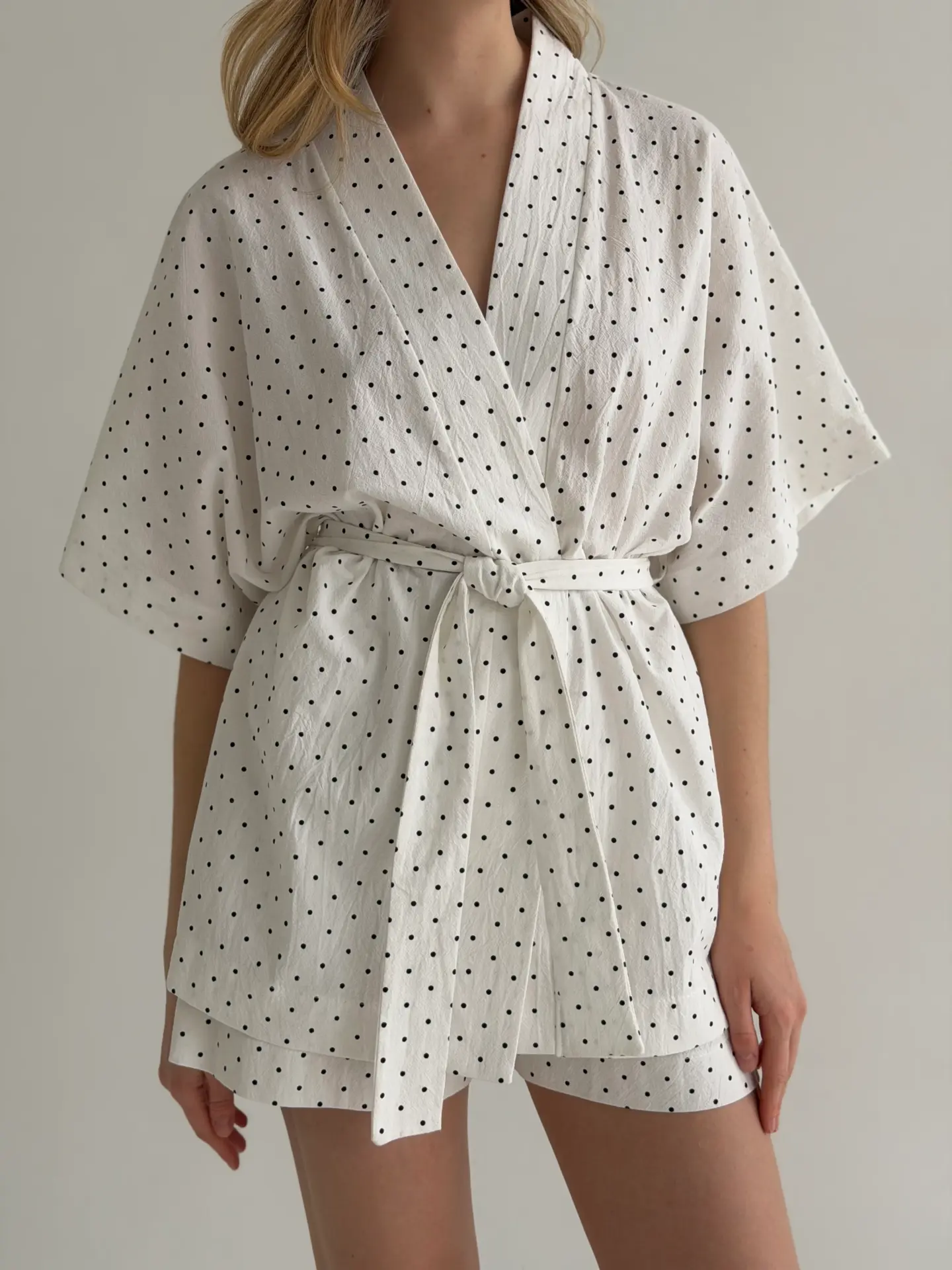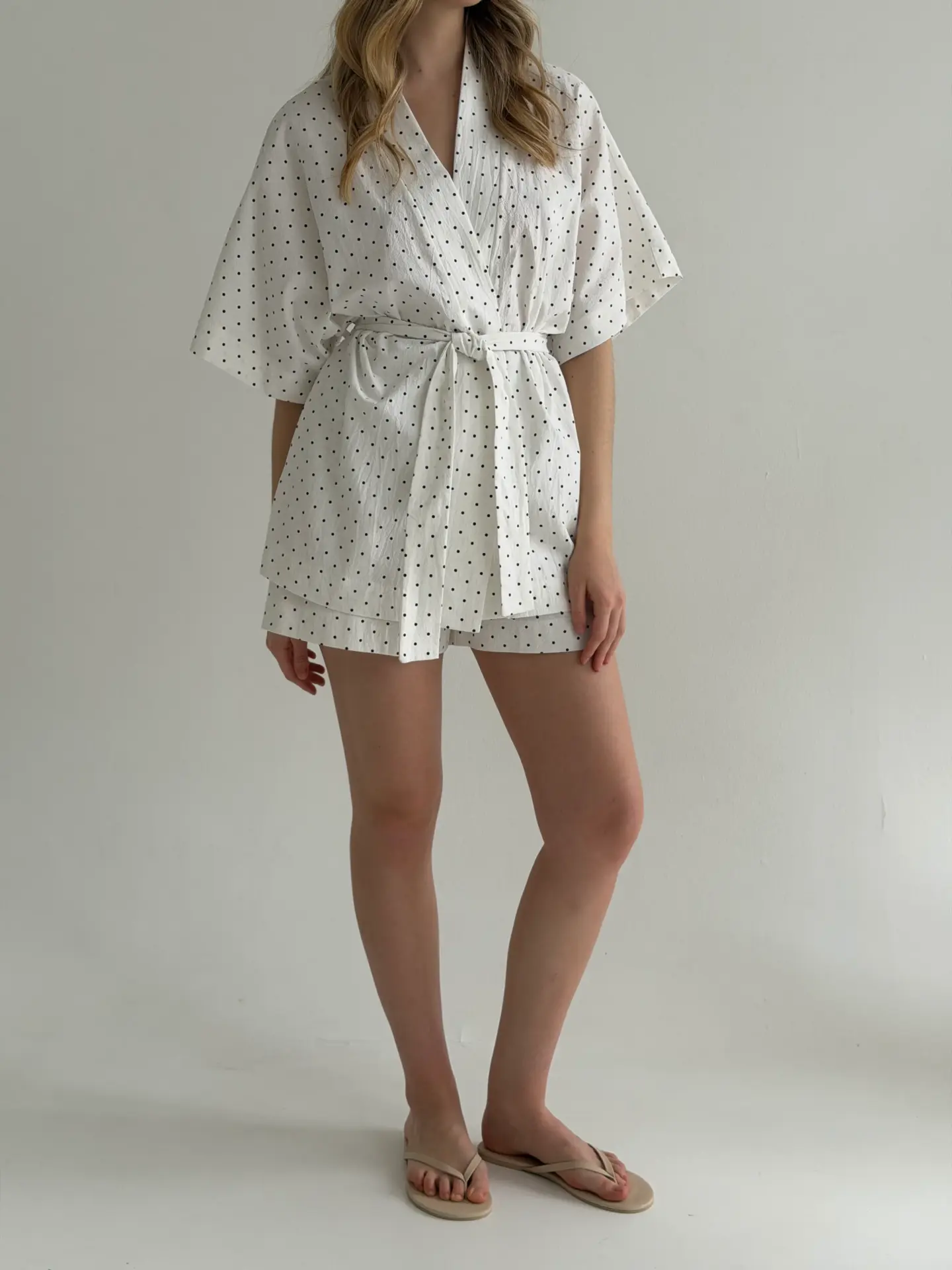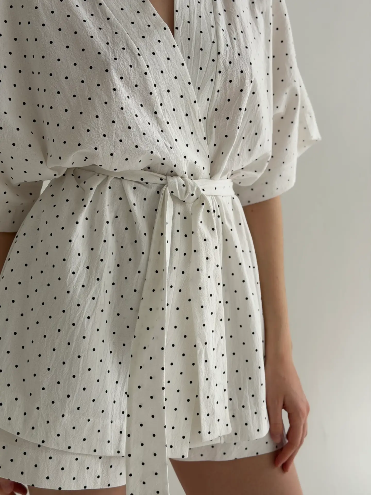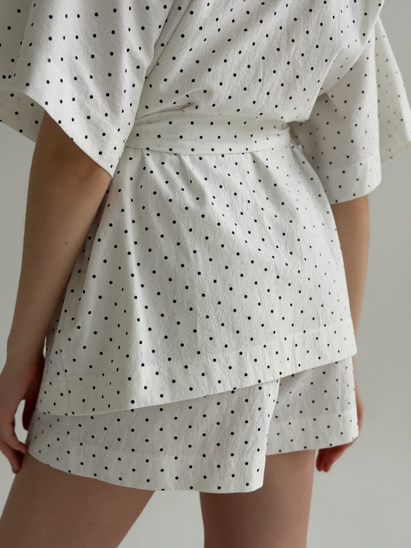 Костюм Кімоно та шорти бавовна варена "горох чорний на білому" - Twins