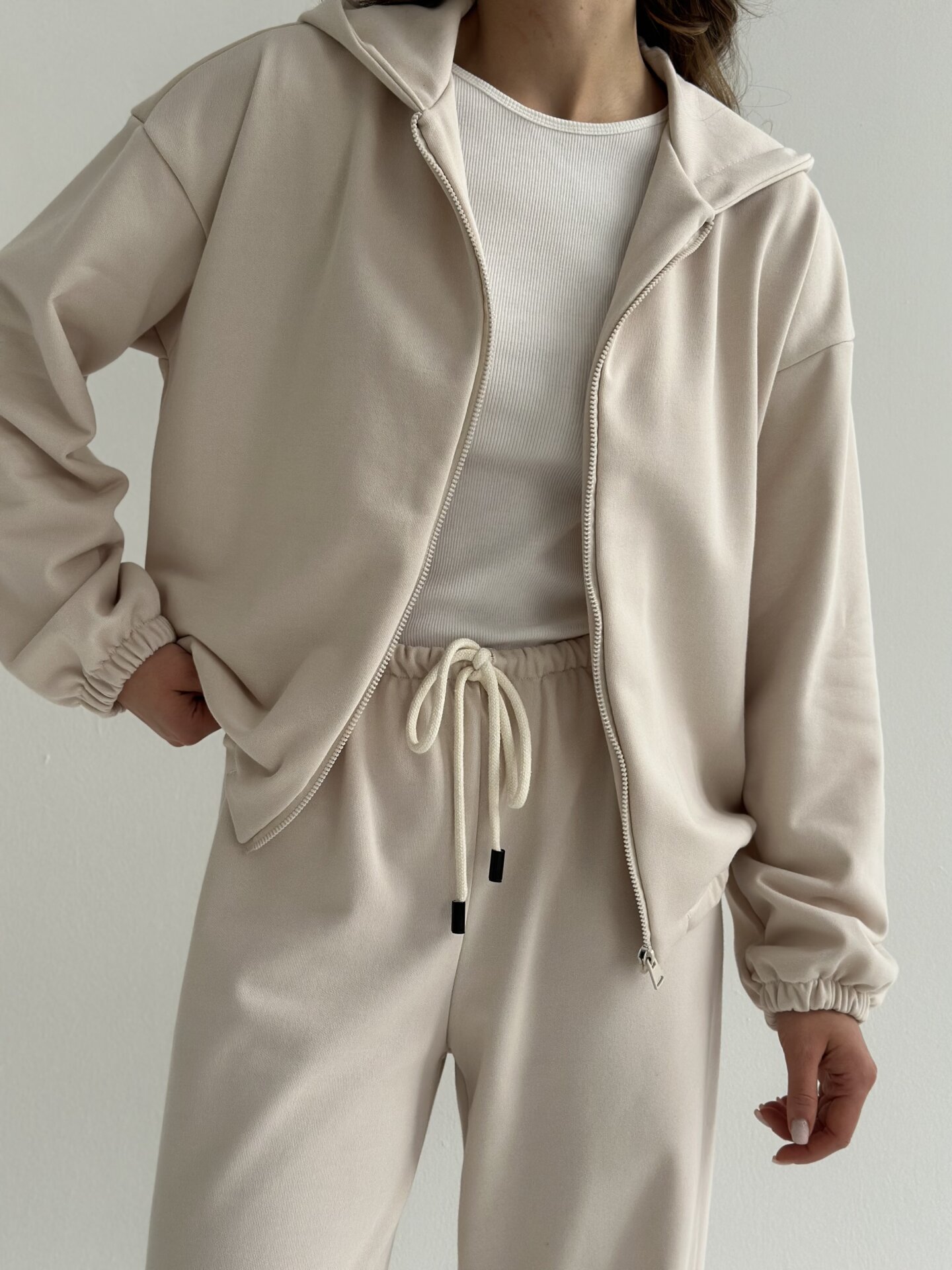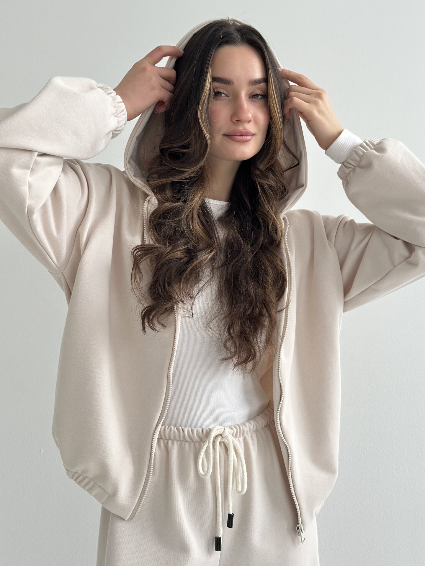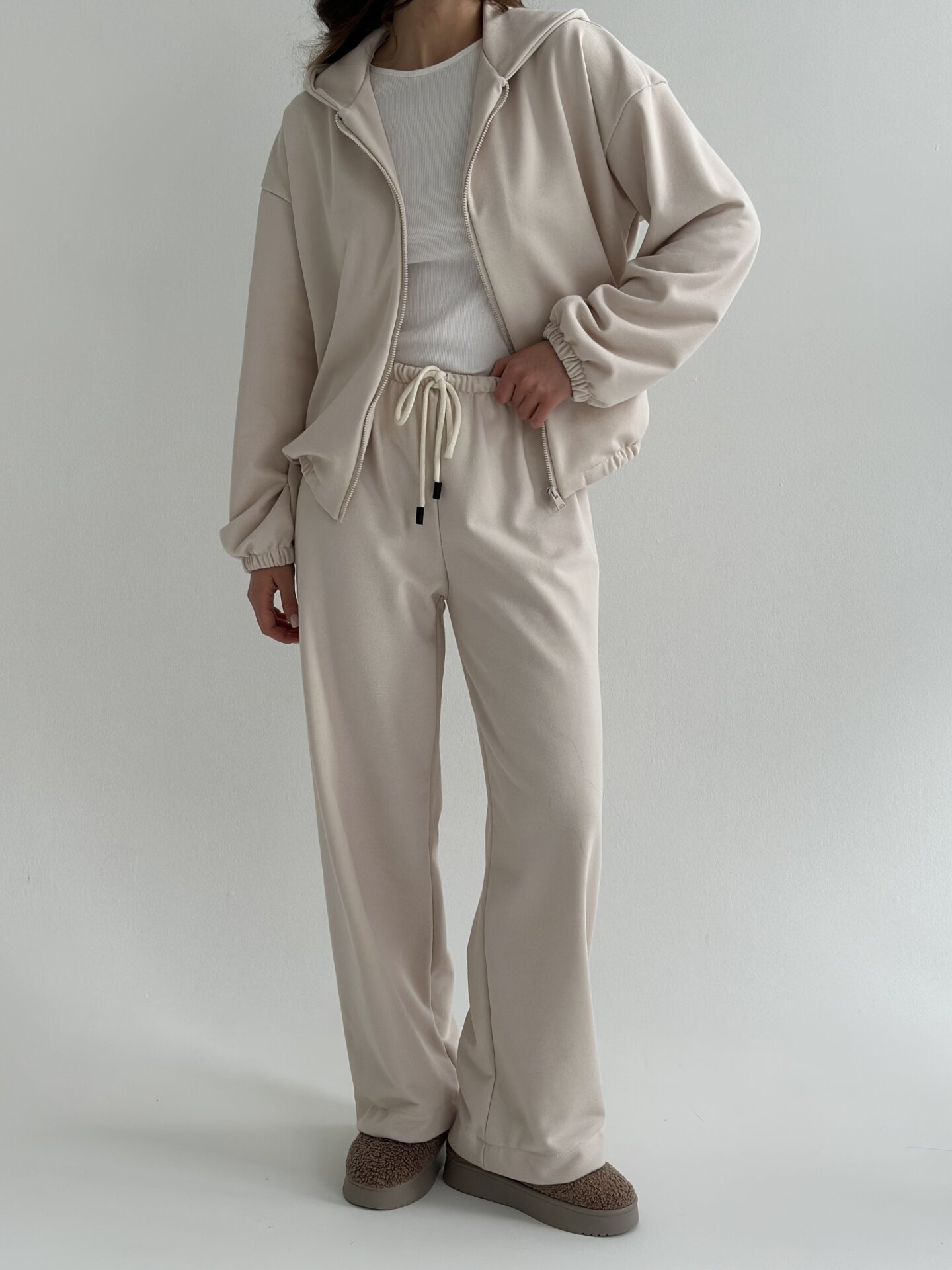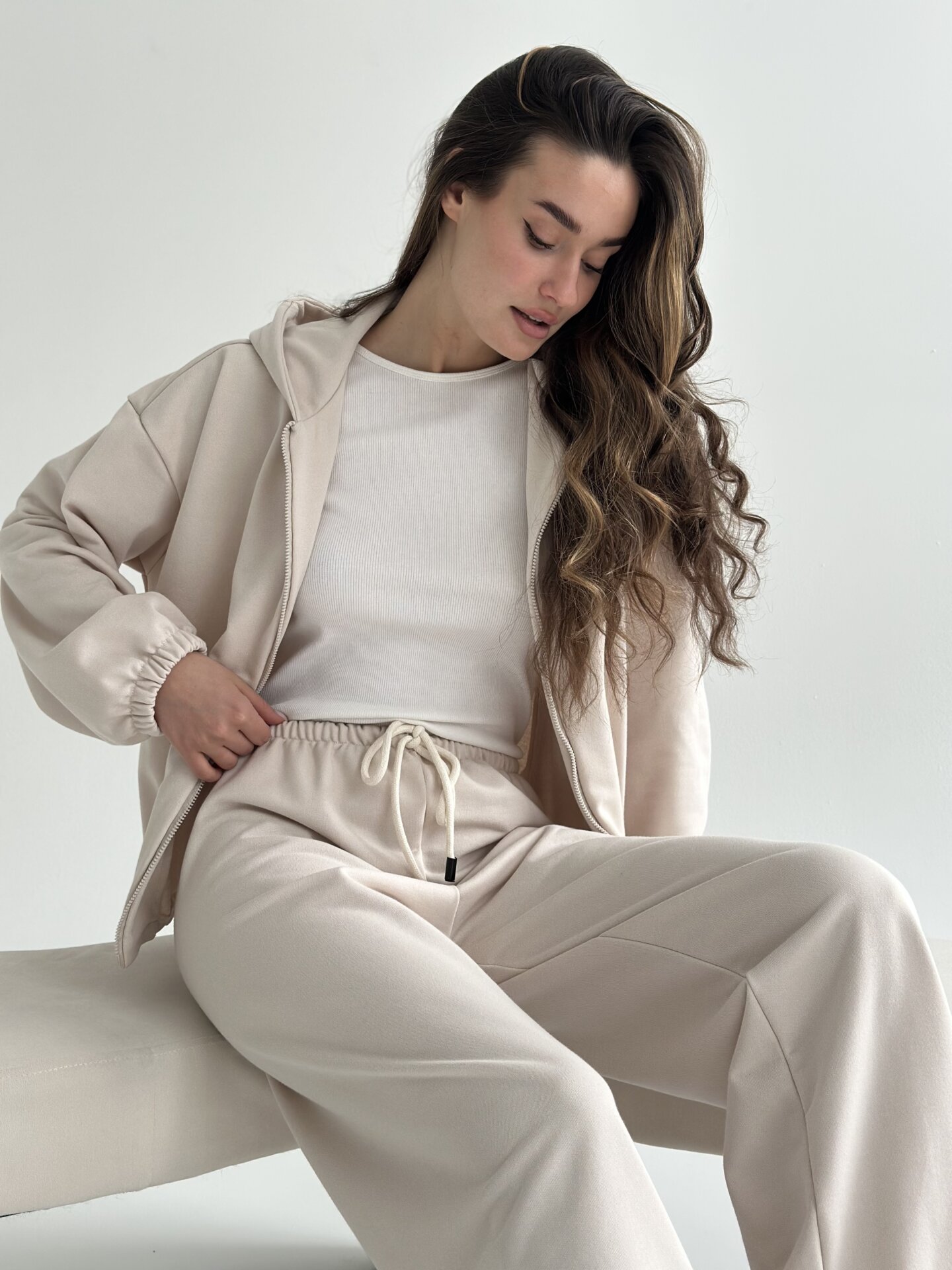 Костюм із кофти та штанів із полар-флісу створений для тепла й затишку у прохолодну пору. М’який та приємний на дотик матеріал забезпечує комфорт у носінні. Ідеально підходить для дому та відпочинку.