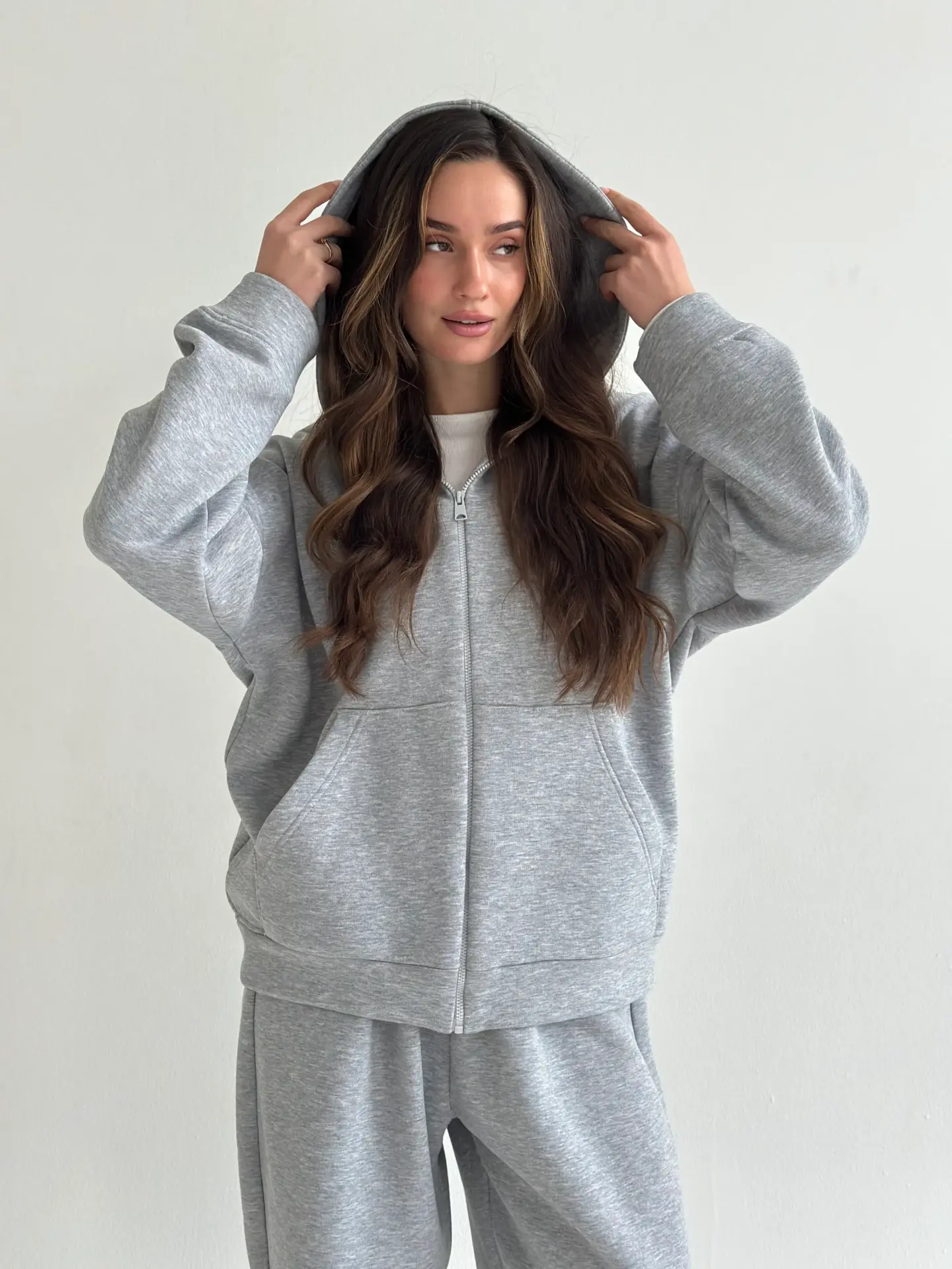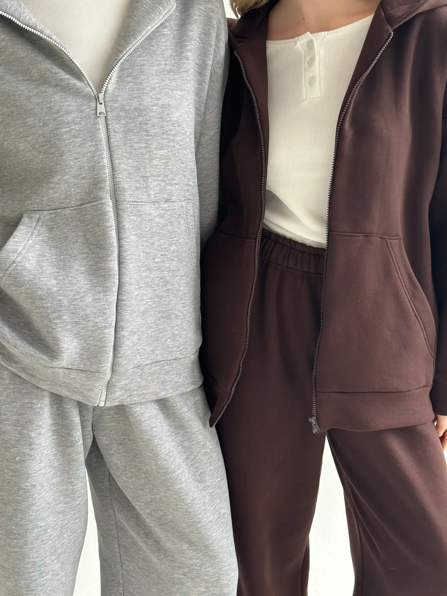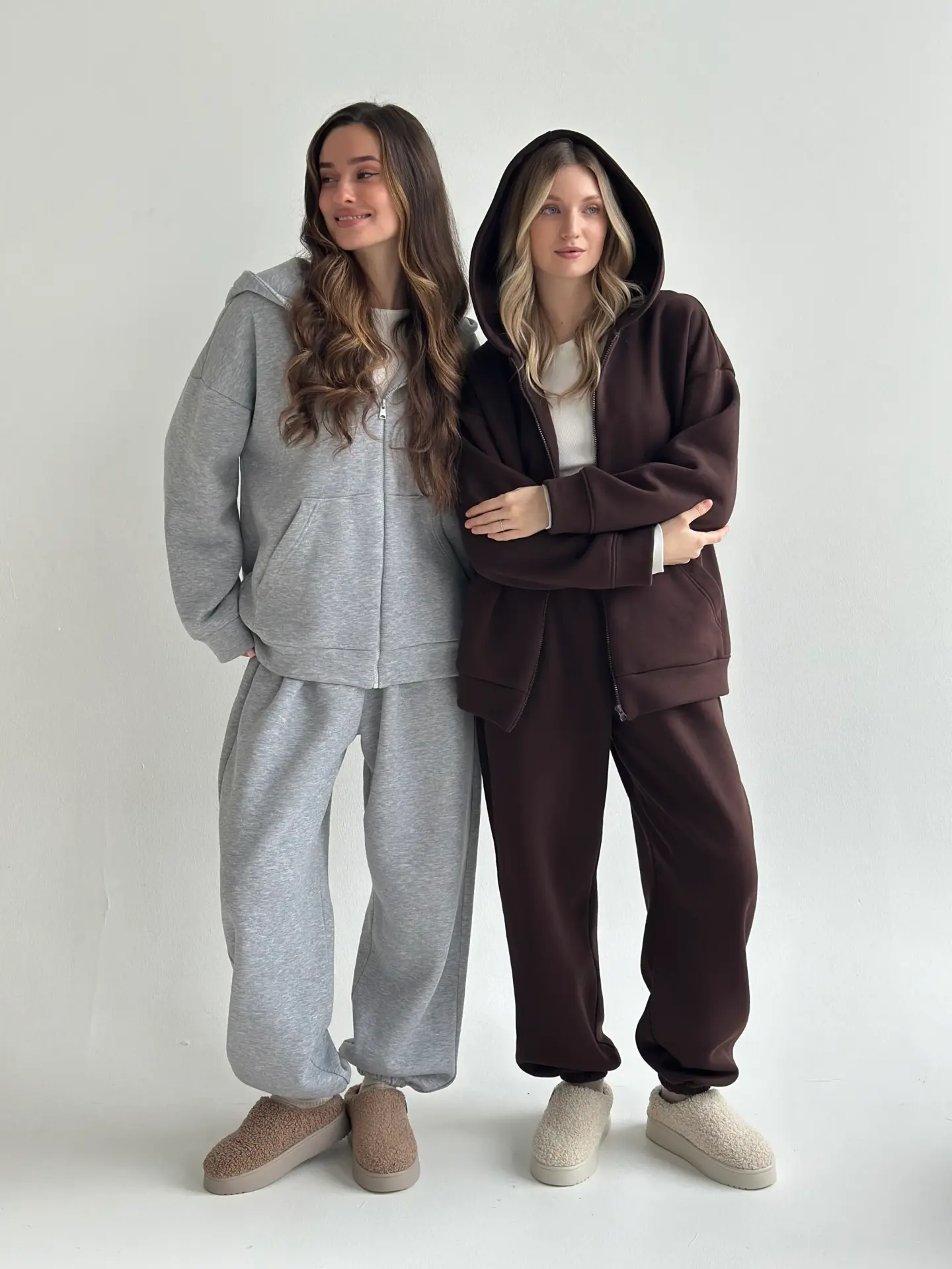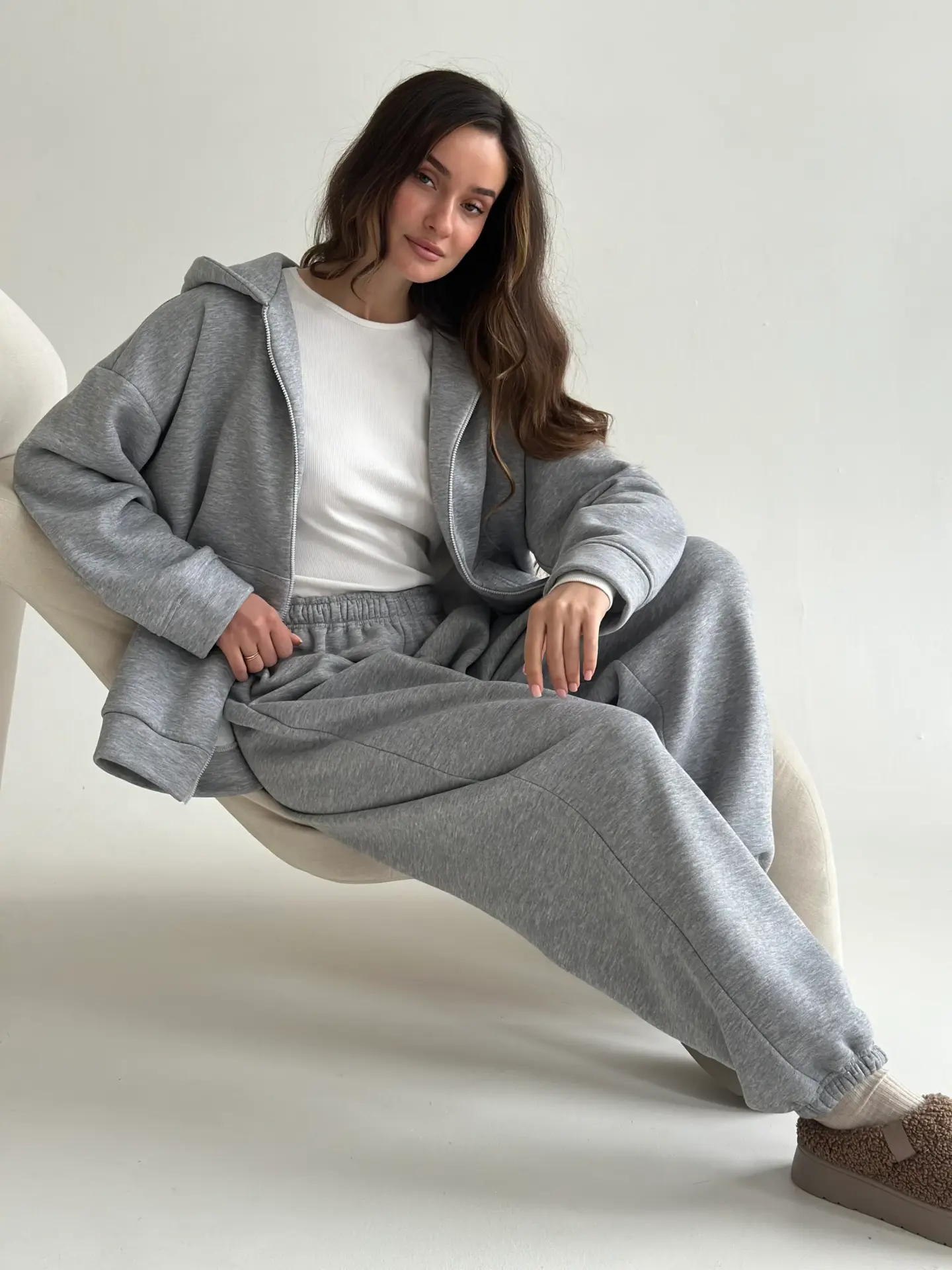 Костюм із утепленої трикотажної 3-нитки, що складається з кофти та штанів. М’який, комфортний і приємний до тіла, забезпечує затишок у щоденному носінні. Лаконічний дизайн робить комплект універсальним для будь-якого образу.